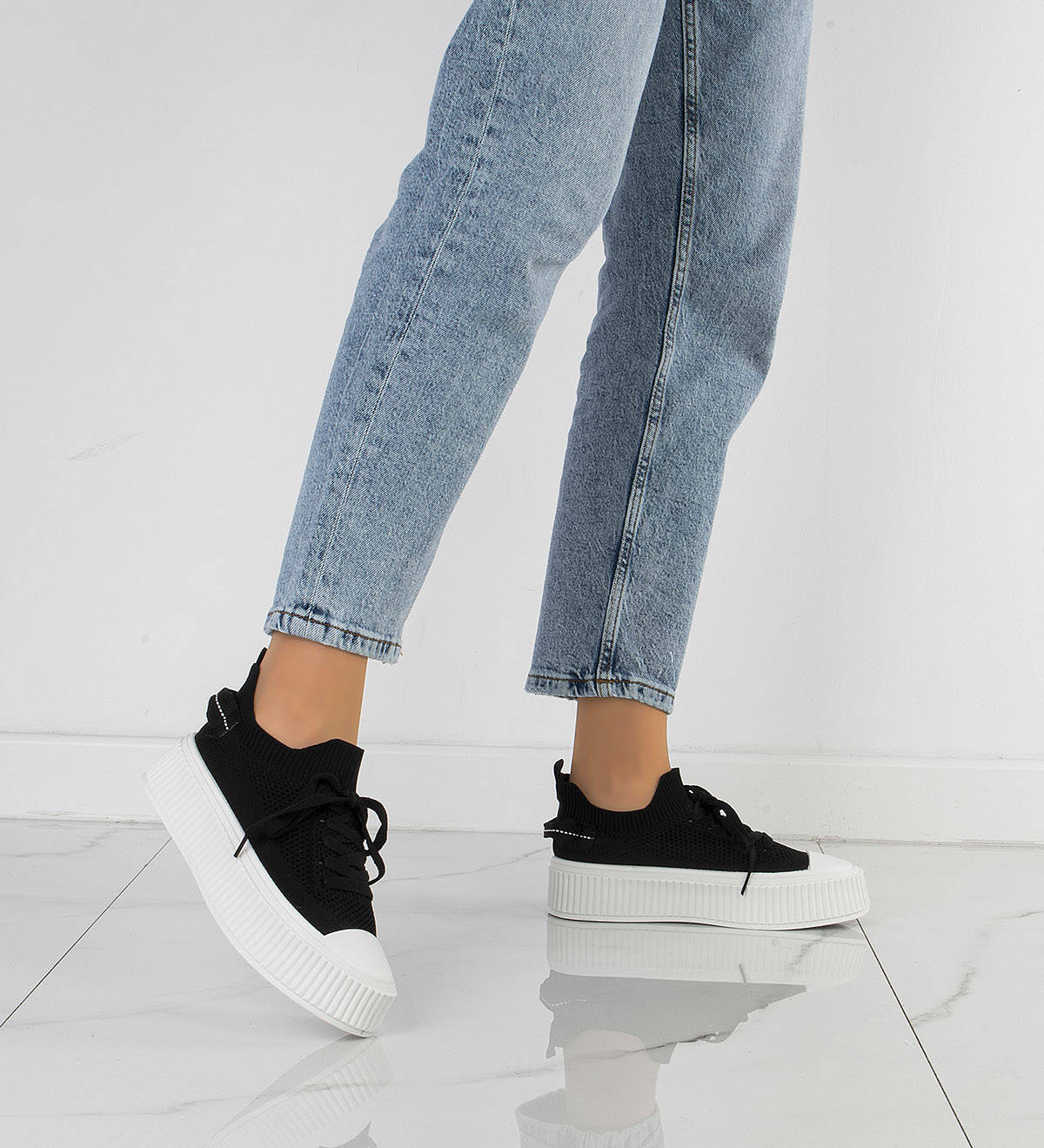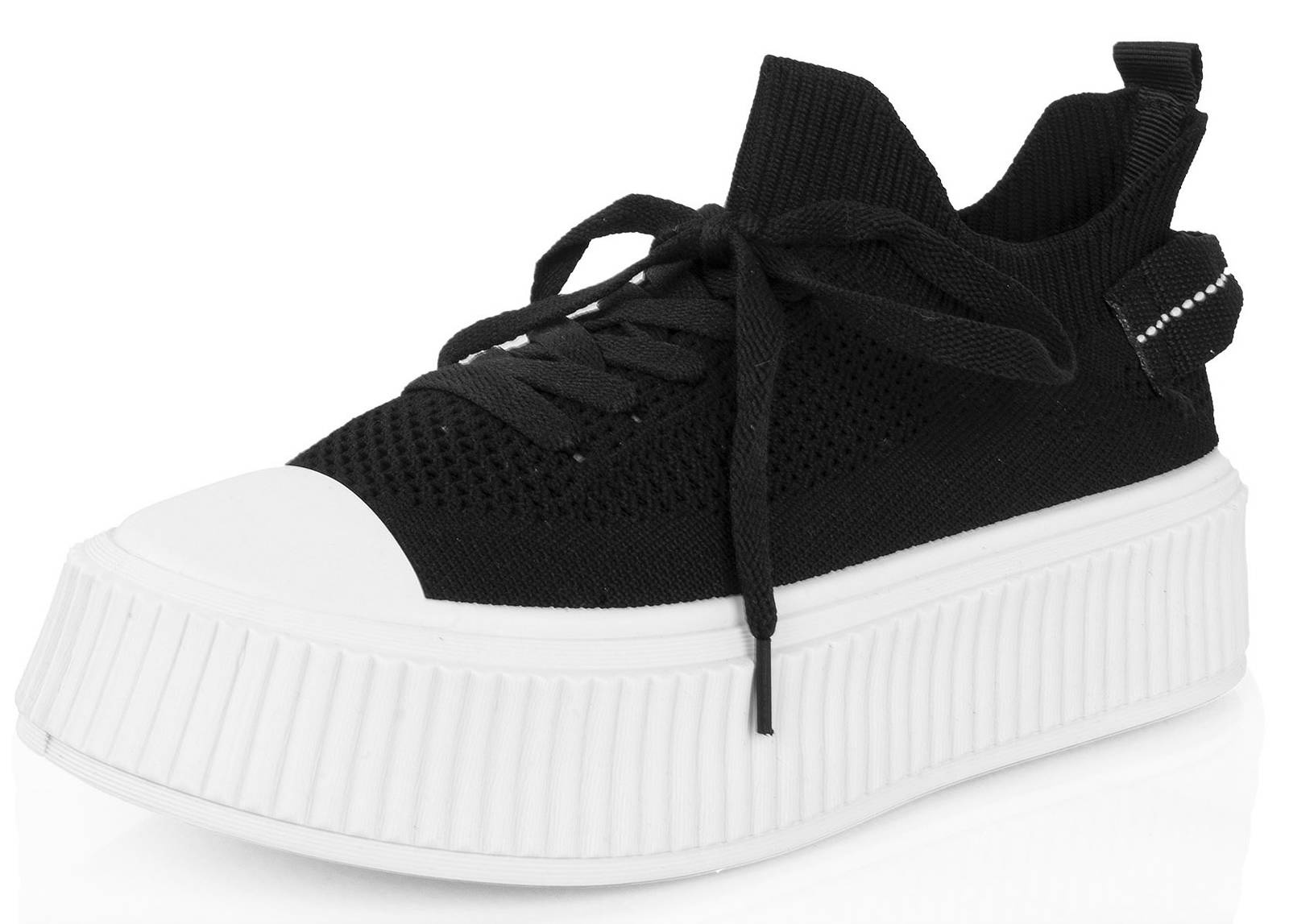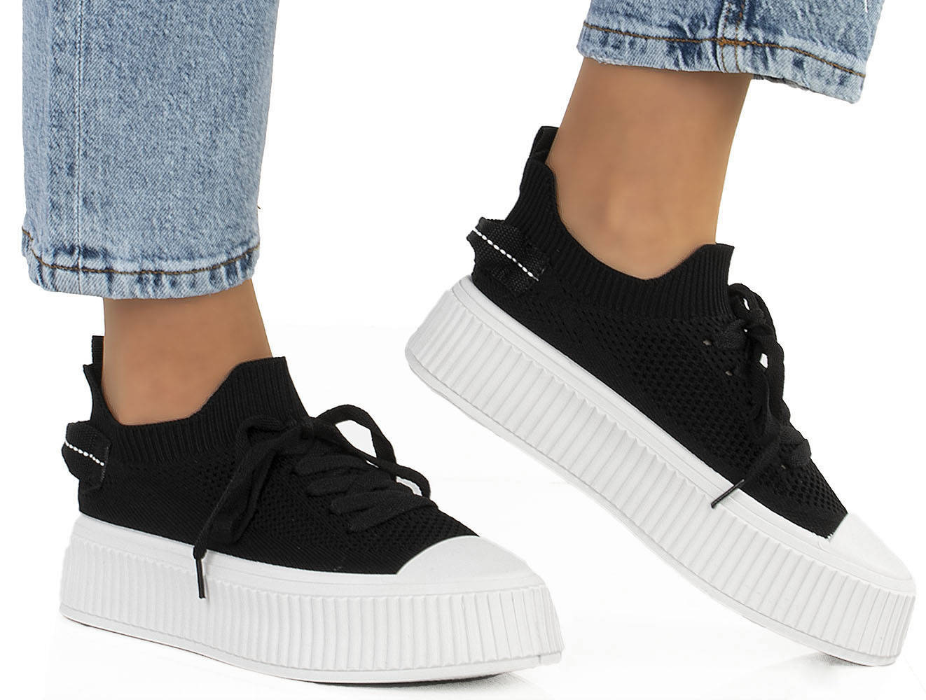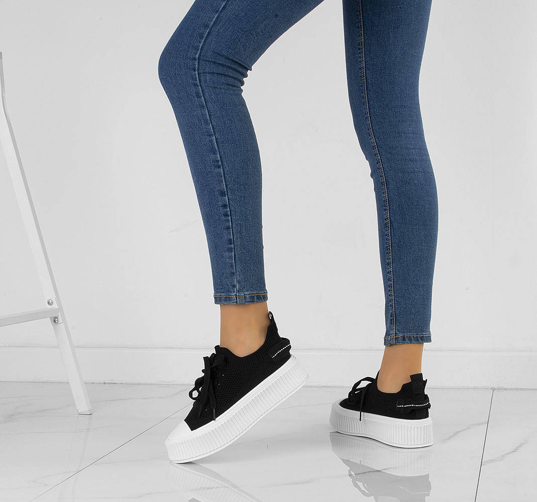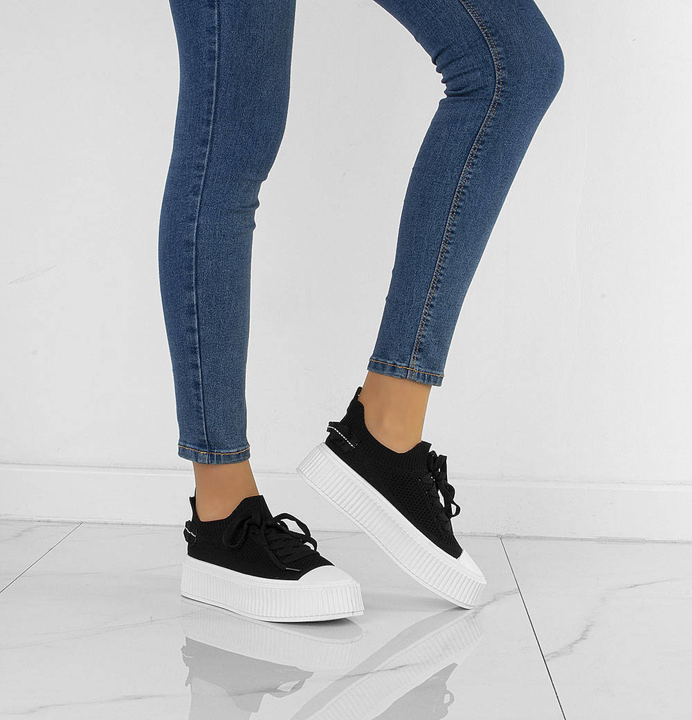 Najmodniejszy model butów tej wiosny - trampki na grubej podeszwie. Wykonane z wysokiej jakości miękkiej prążkowanej tkaniny. Model ze sznurowaną cholewką. Na wygodnej, grubszej podeszwie typu platforma.