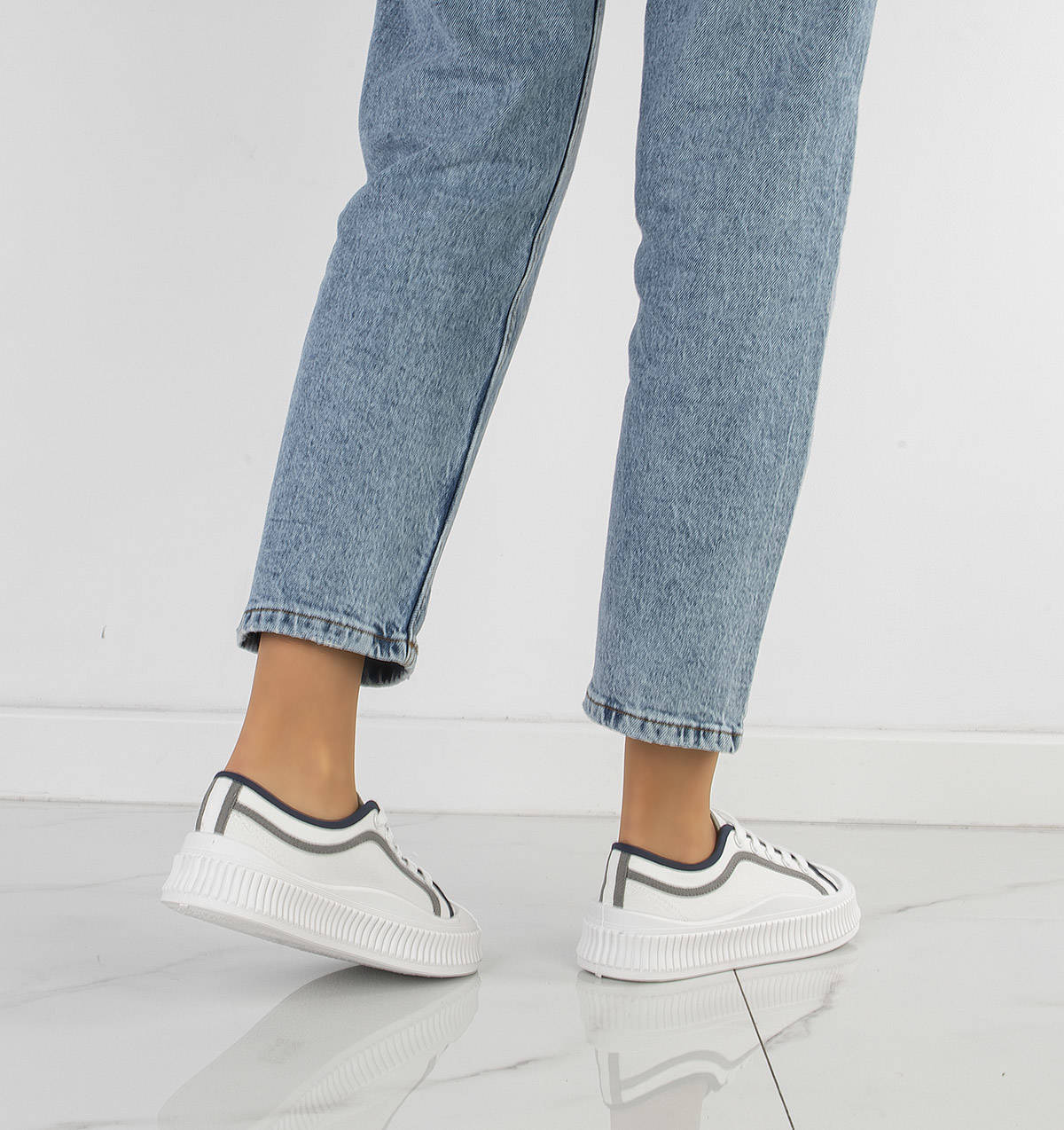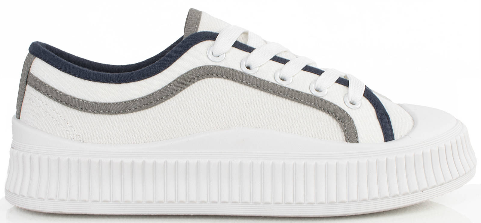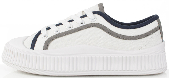 Najmodniejszy model butów tej wiosny - trampki na grubej podeszwie. Wykonane z wysokiej jakości miękkiej tkaniny. Model ze sznurowaną cholewką. Na wygodnej, grubszej podeszwie typu platforma.