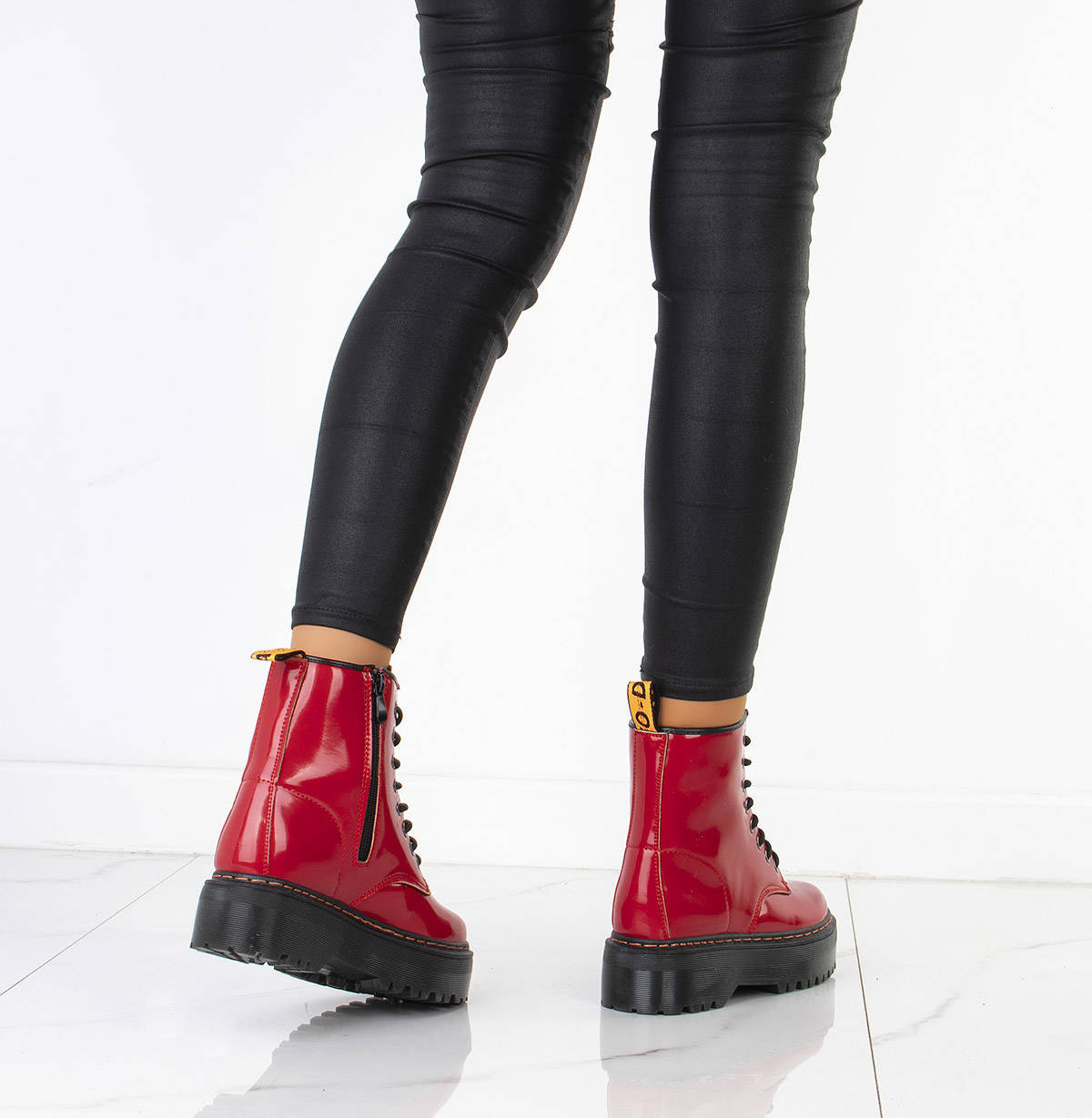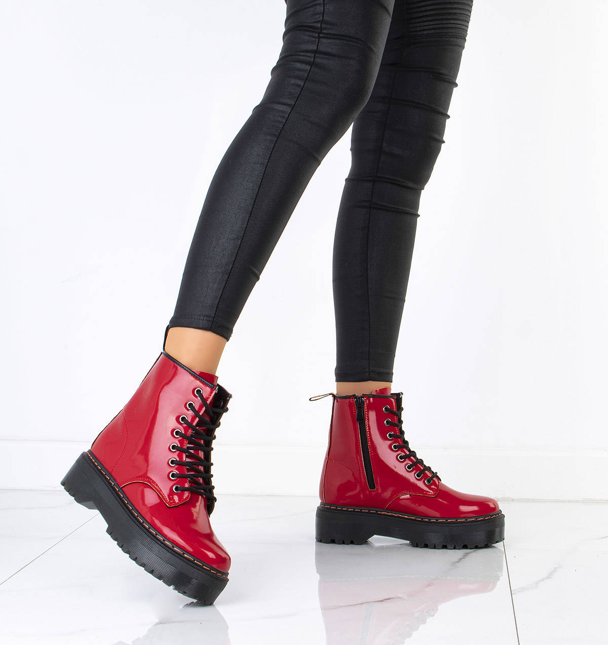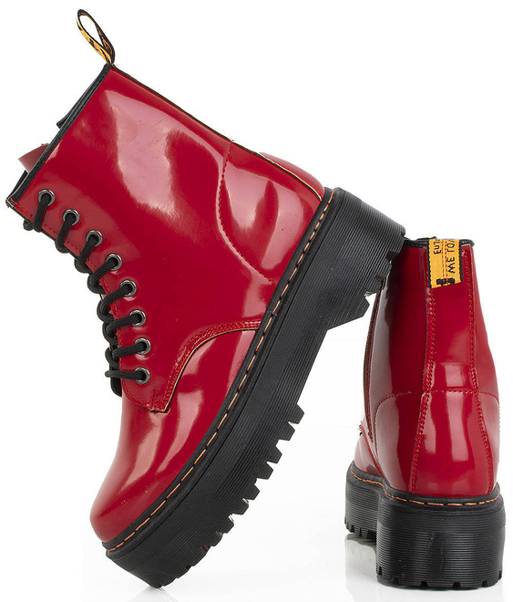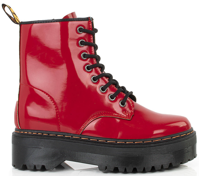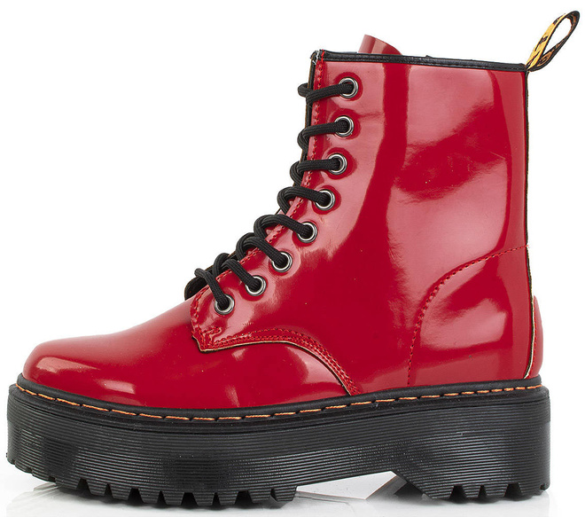 Stylowe workery wykonane ze skóry ekologicznej lakierowanej. Botki są sznurowane, dodatkowo posiadają zapięcie na suwak. Gruba podeszwa, antypoślizgowa 4-centymetrowa platforma. Wygodne i praktyczne nie tylko dla osób, które chcą dodać kilka centymetrów do swojego wzrostu.