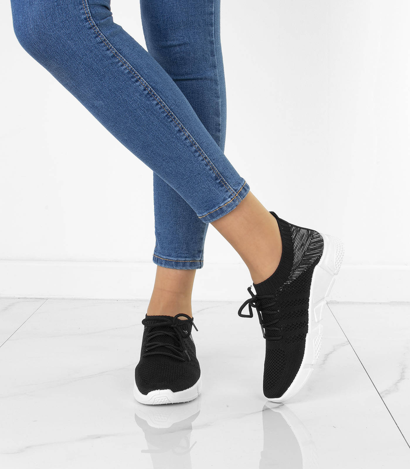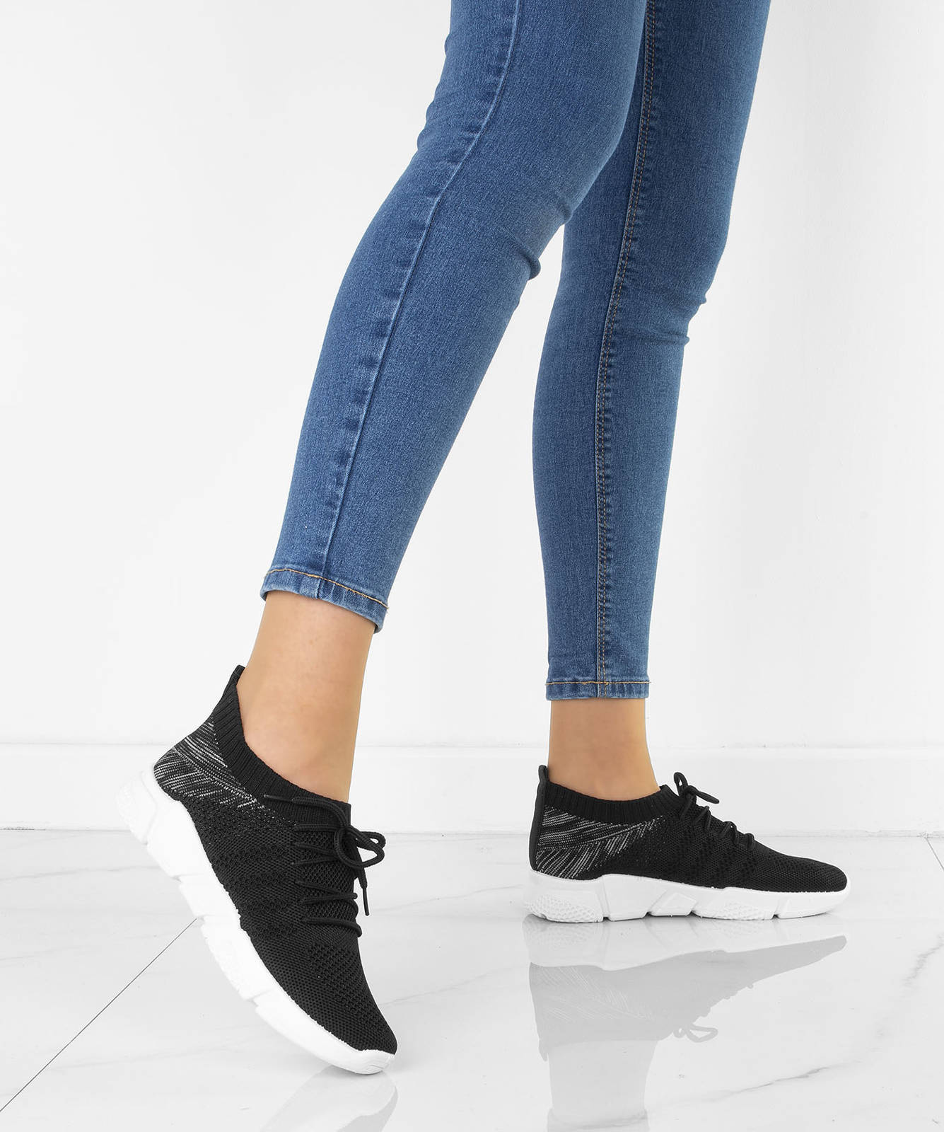 CZARNE BUTY SPORTOWE SNEAKERSY WSUWANE