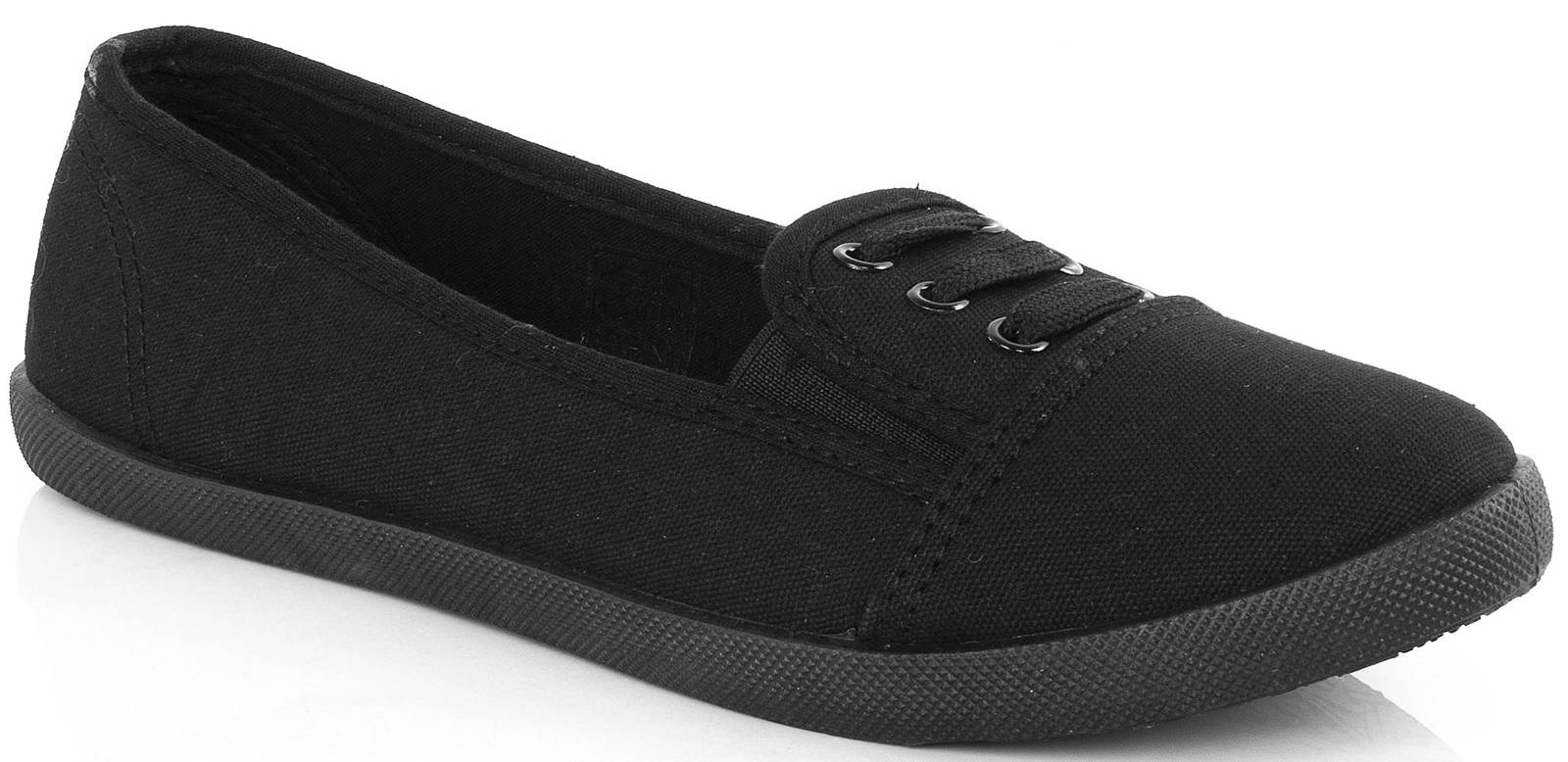 • Klasyczne wykrojone tenisówki wykonane z materiału tkaninowego, podeszwa z tworzywa gumowego. Model lekki i wygodny, posiada dodatkowo sznurowanie co zapewnia utrzymywanie obuwia na stopie.