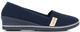 Uniwersalny model tenisówek z materiału tkaninowego na gumowej podwyższonej podeszwie typu koturn. Obuwie dopasowuje się do stopy podczas chodzenia.