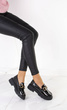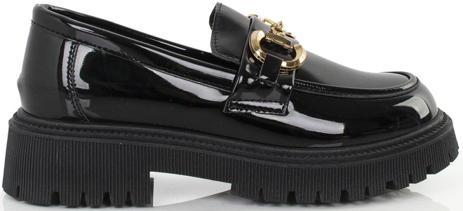 Klasyczne damskie mokasyny wykonane z wysokiej jakości skóry ekologicznej lakierowanej. Modny model zdobi złoty łańcuszek. Półbuty na wygodnej, profilowanej platformie. Obuwie lekkie i wygodne, najmodniejszy fason tego wiosennego sezonu!