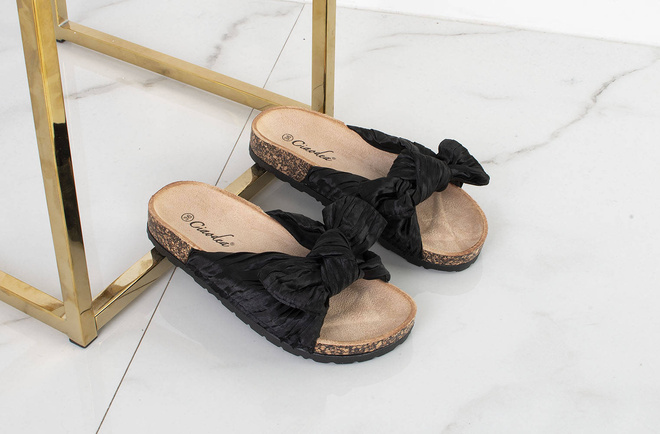 Klasyczne klapki wykonane z połączenia tworzywa typu korek oraz materiału tkaninowego. Wkładka profilowana utrzymuje stope stabilnie podczas chodzenia.Idealne na lato