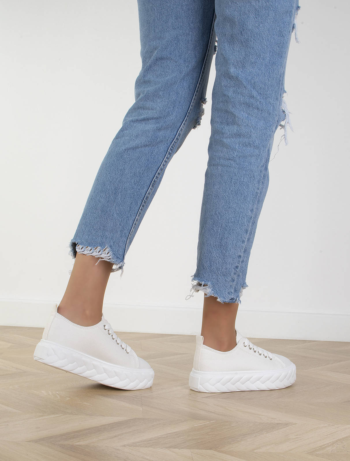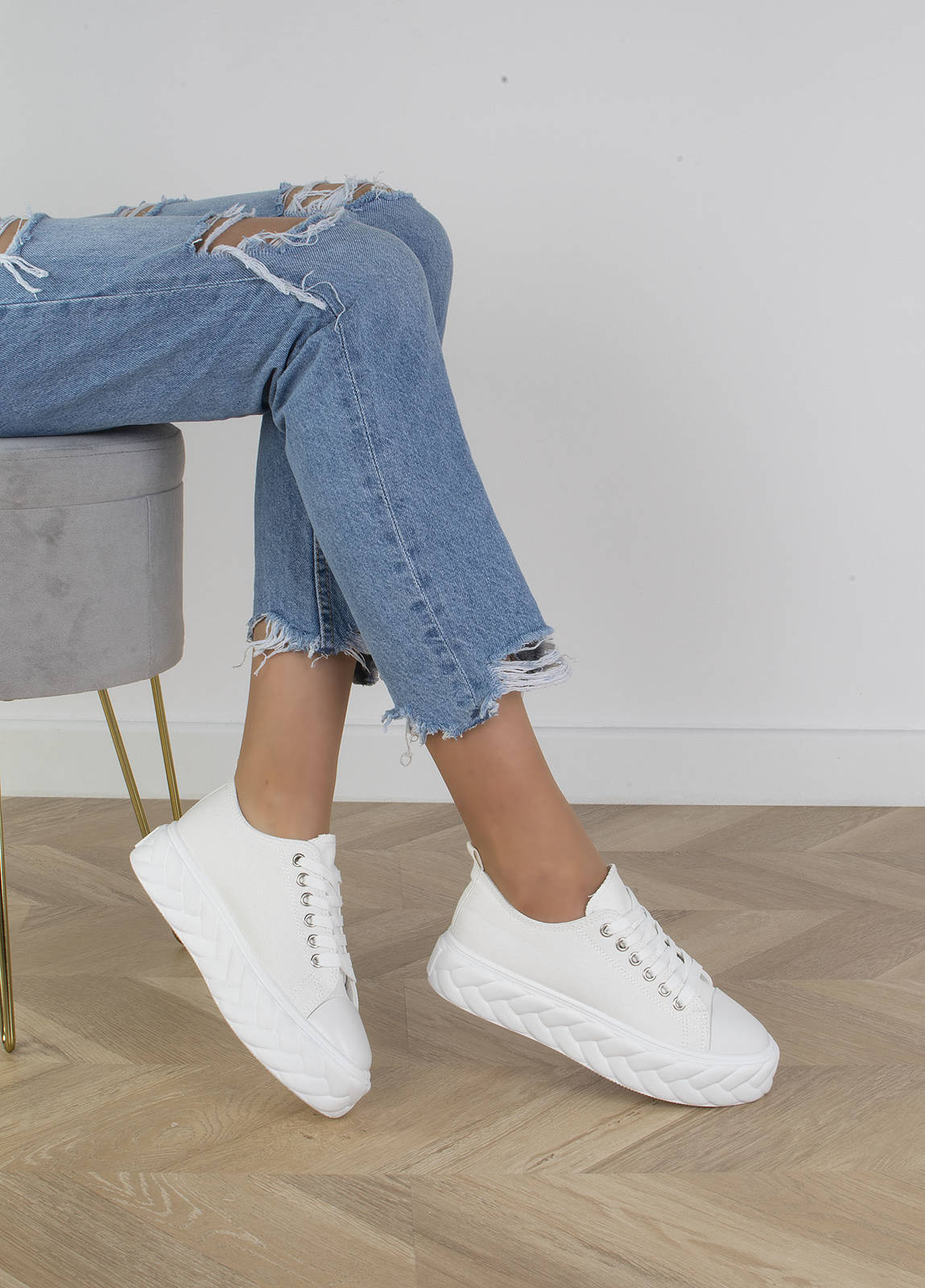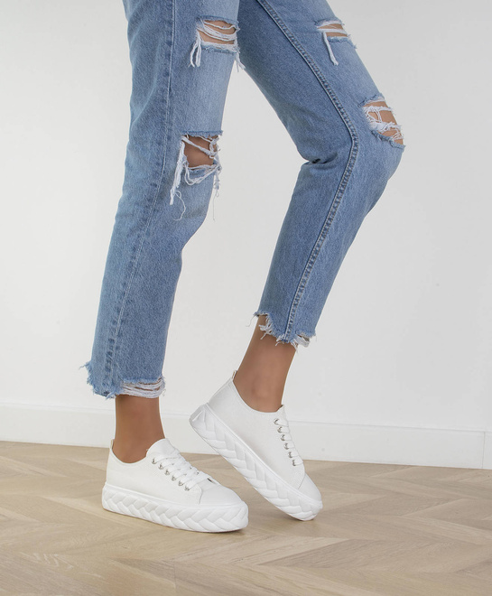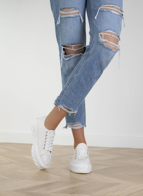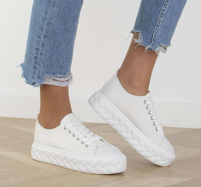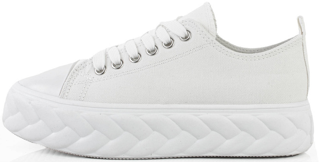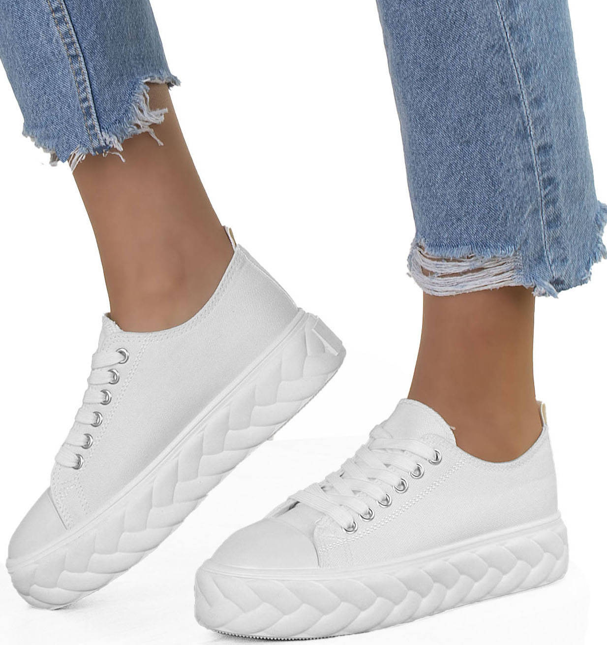 Jeśli szukasz butów, które są komfortowe i modne, to nasze trampki na platformie będą idealnym wyborem. Wykonane z trwałej ekoskóry, są starannie uszyte i wyposażone w sznurowadła, aby zapewnić Ci wygodę i stabilność. Wewnętrzna wkładka z tkaniny zapewnia dodatkowy komfort i oddychalność. Grupa podeszwa zapewnia dodatkową amortyzację i wygodę, dzięki czemu będziesz czuć się pewnie i wygodnie w każdej sytuacji. Te trampki są idealnym wyborem dla kobiet, które szukają wspaniałych butów, które są zarówno modne, jak i wygodne.