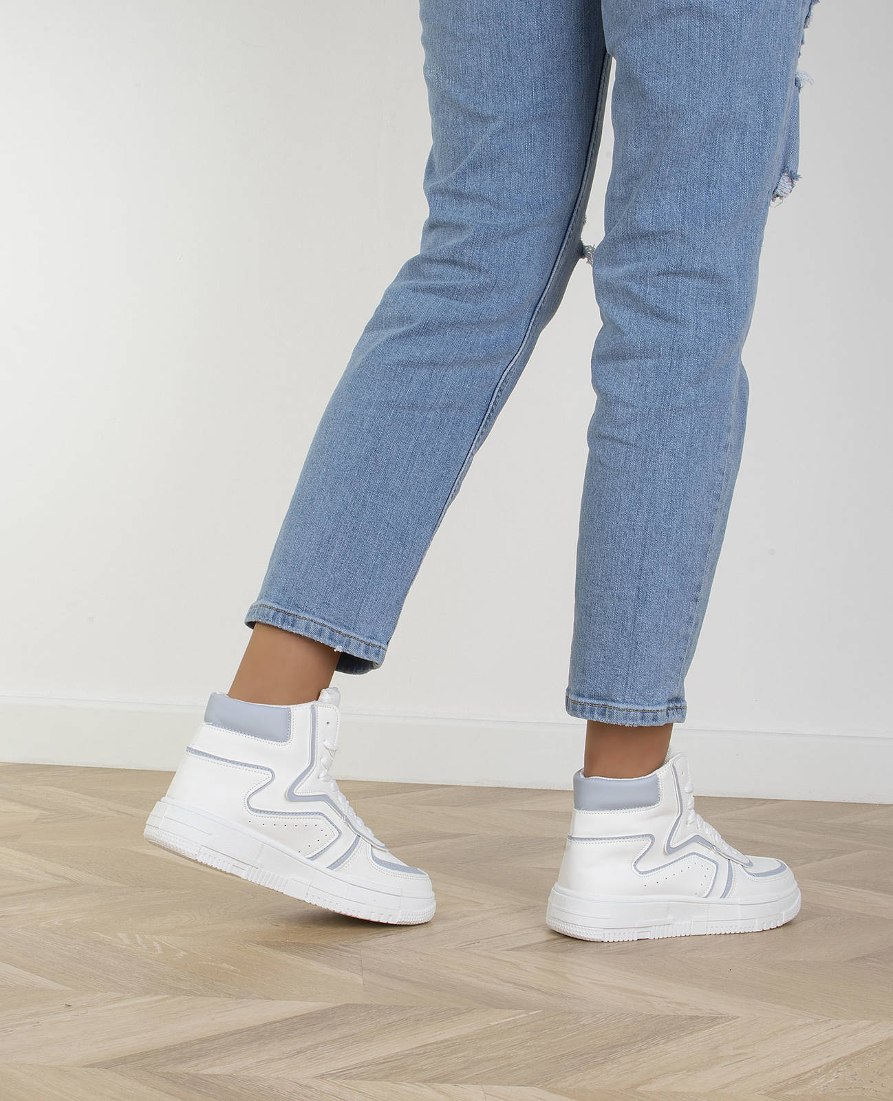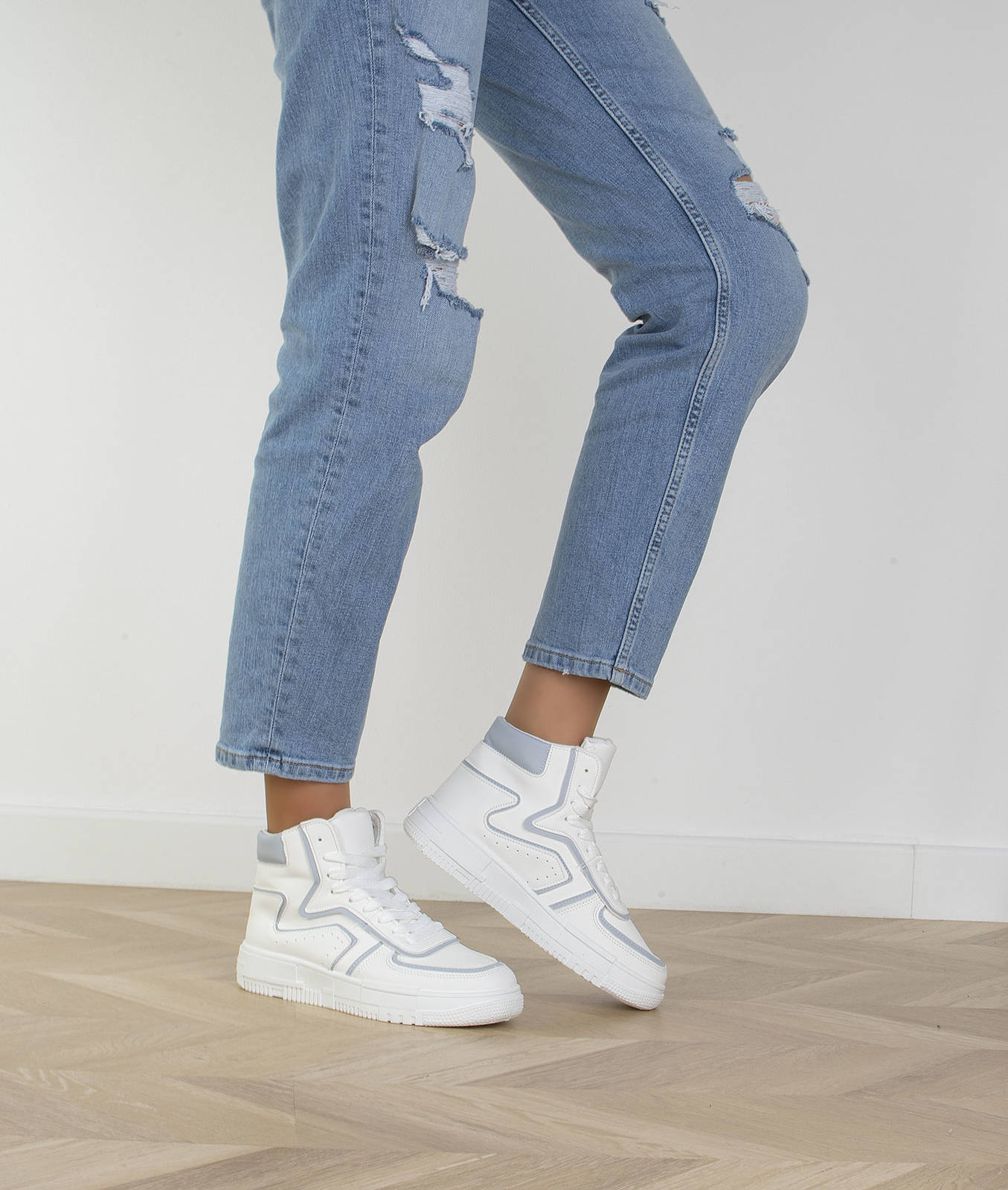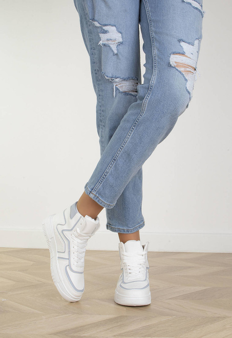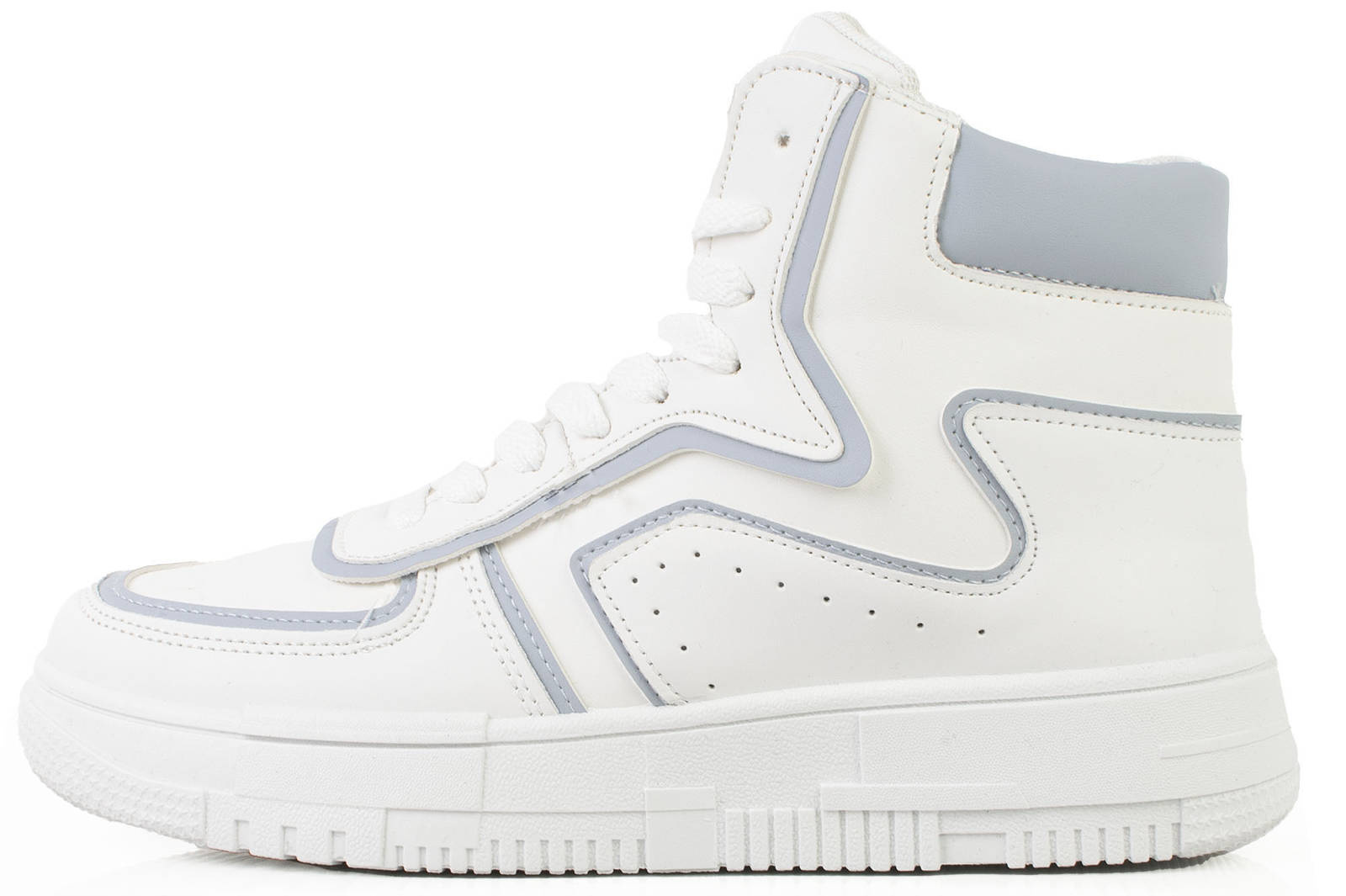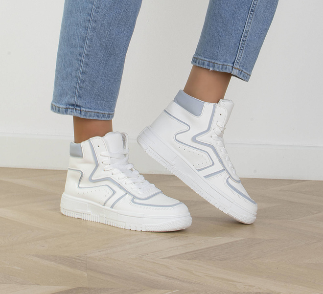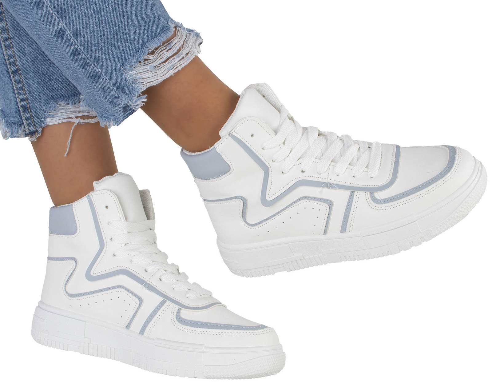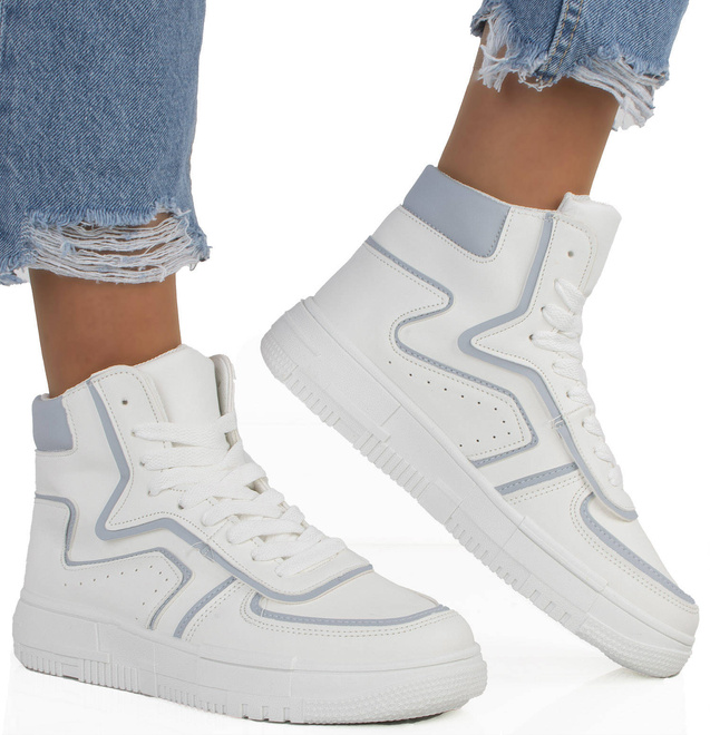 • Białe sneakersy botki sportowe to idealny wybór dla kobiet, które szukają zarówno wygodnego, jak i modnego obuwia. Sneakersy za kostkę są wyposażone w sznurowanie, dzięki czemu możesz je idealnie dopasować do swojej stopy.