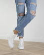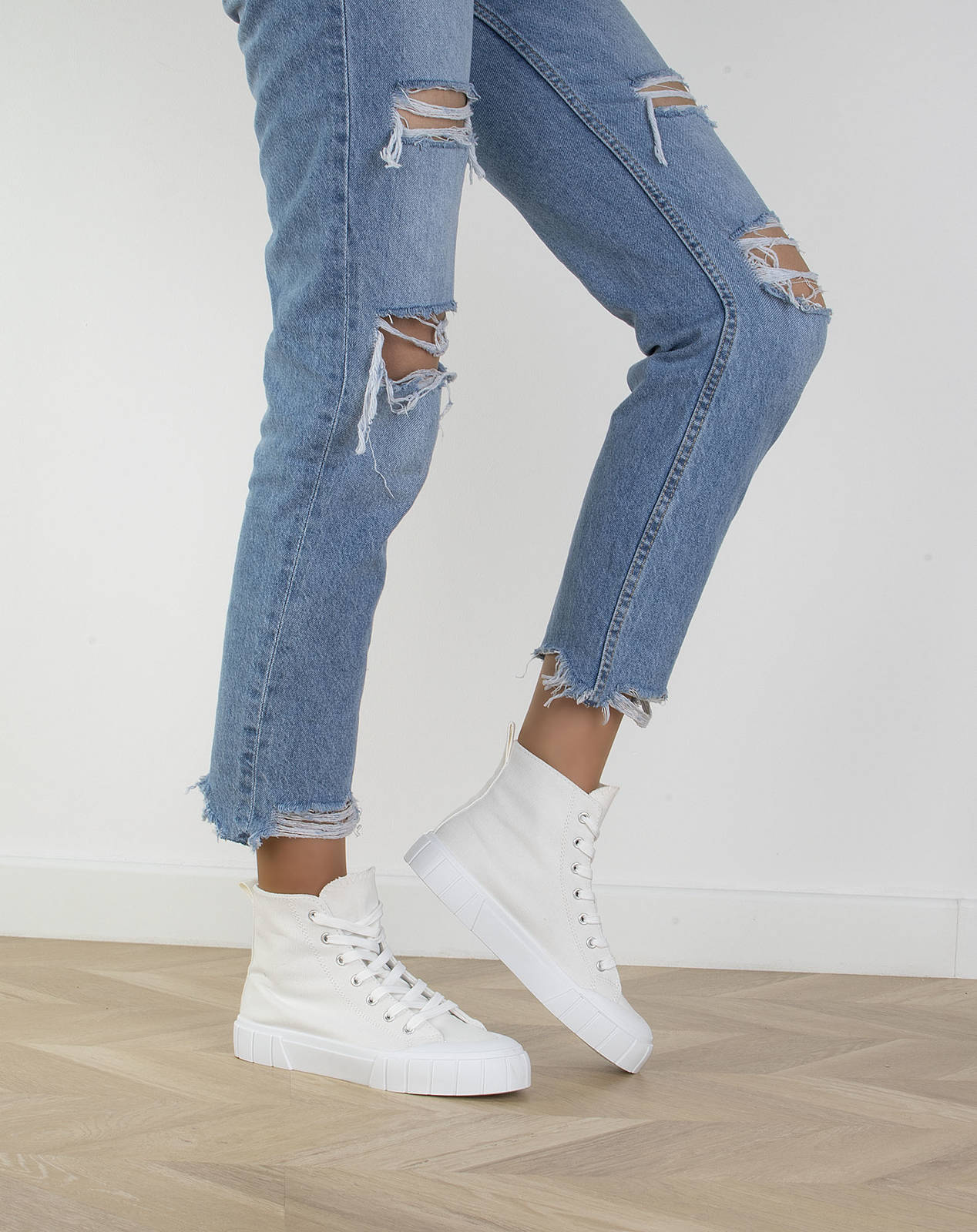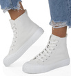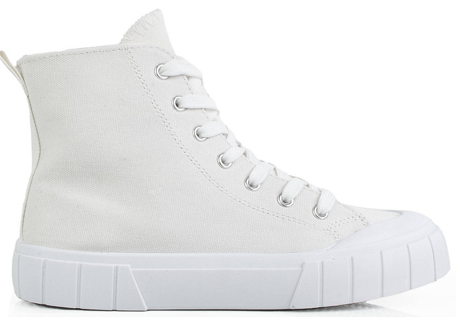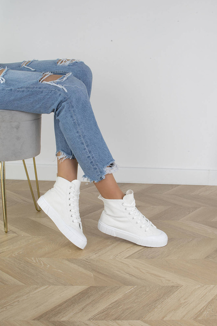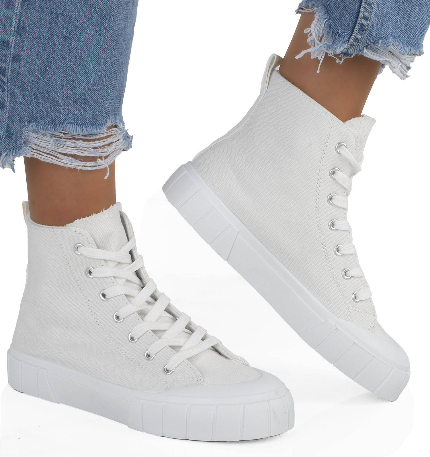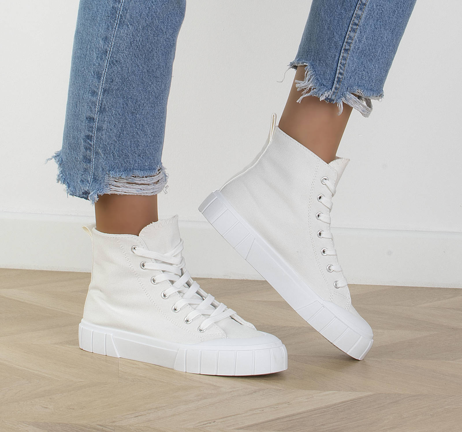 Ciesz się wiosną i baw się modą z naszymi klasycznymi białymi trampkami na grubszej podeszwie. Cholewka sięga za kostkę i jest sznurowana, dzięki czemu idealnie dopasowuje się do Twojej stopy. Wkładka i cholewka są wykonane z miękkiej tkaniny, aby zapewnić Ci maksymalny komfort. Te trampki są idealne na wiosnę, gdy chcesz zachować swój styl i wyglądać modnie. Połącz je z ulubionymi jeansami lub spódnicą, aby stworzyć niesamowity look.