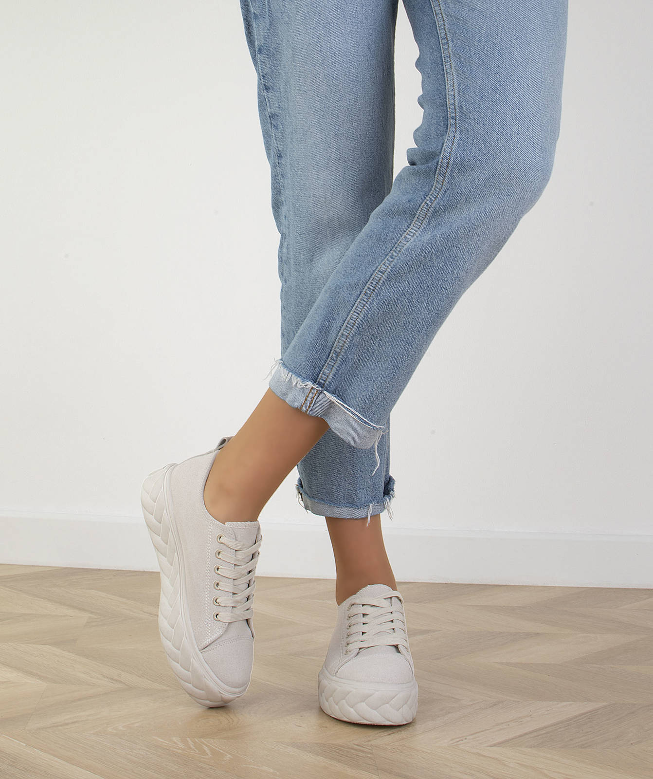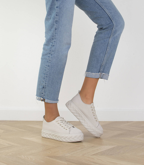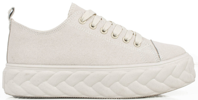 Bądź zawsze trendy w modzie z naszym nowym modelem trampki na platformie! Nasze modele są wygodne i doskonale sprawdzą się w miejskim stylu. Ich cholewka i wkładka tkaninowa to odpowiedź na najnowsze trendy mody. Wygląd trampki dodaje jej szyku i charakteru dzięki imitacji warkoczowego splotu na podeszwie. Dodatkowo trampki są sznurowane, dzięki czemu zapewniają Ci jeszcze większy komfort. Wypróbuj ten model i poczuj się modnie i kobieco każdego dnia!