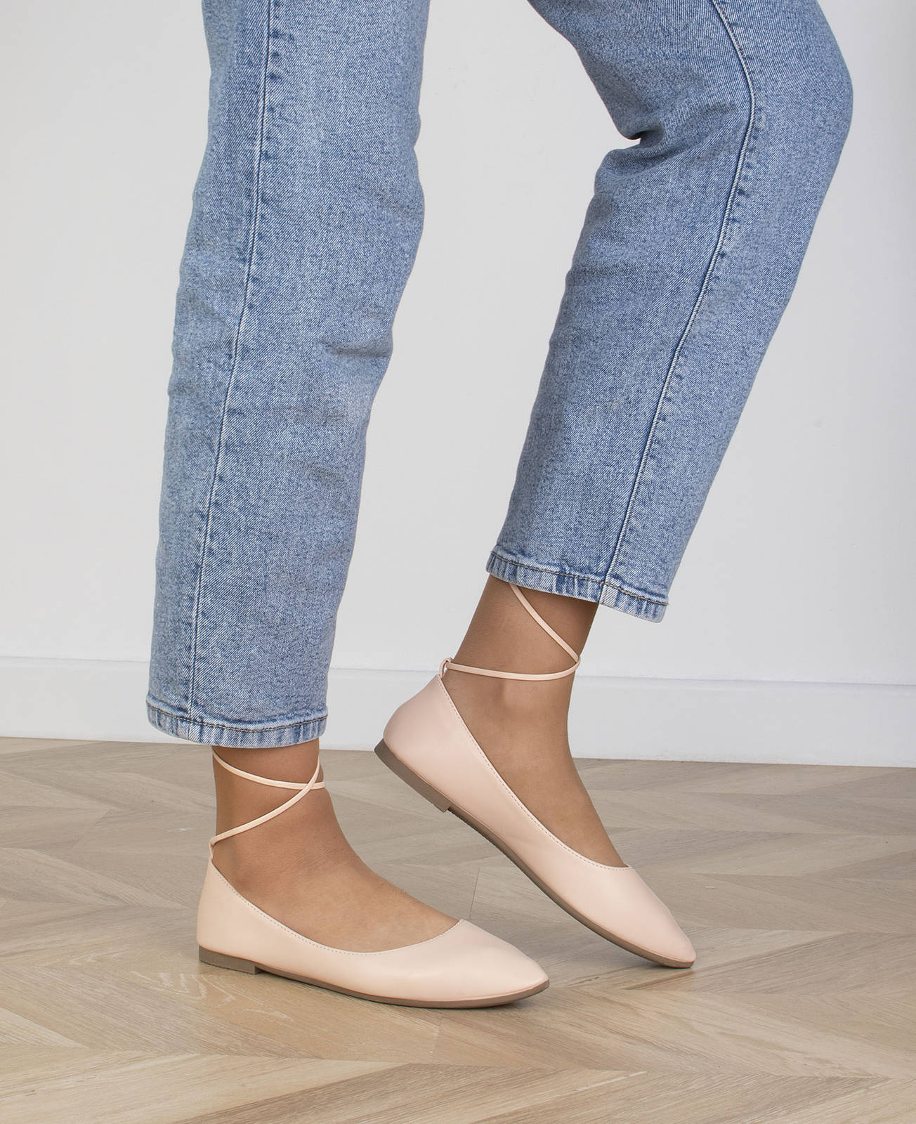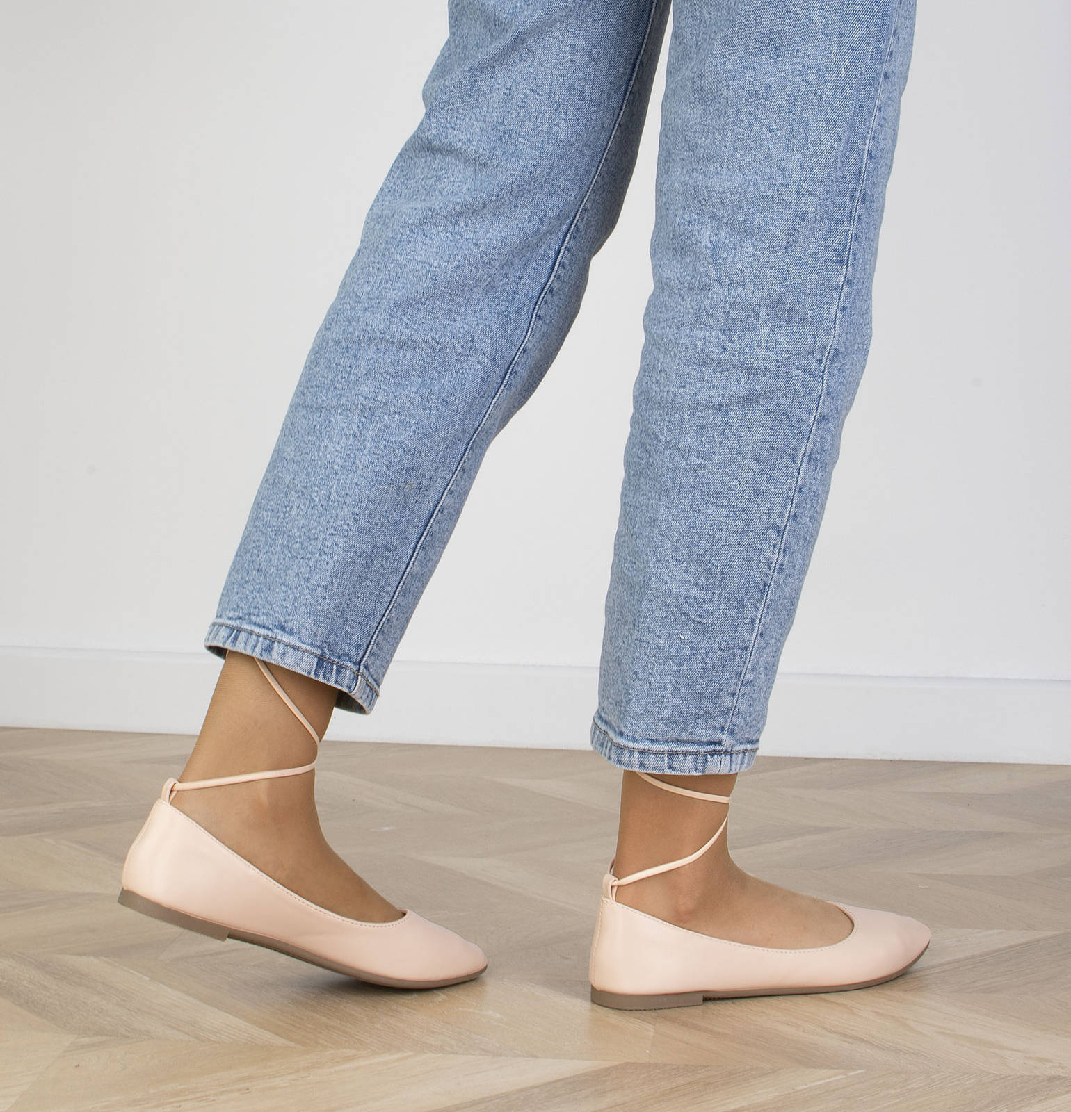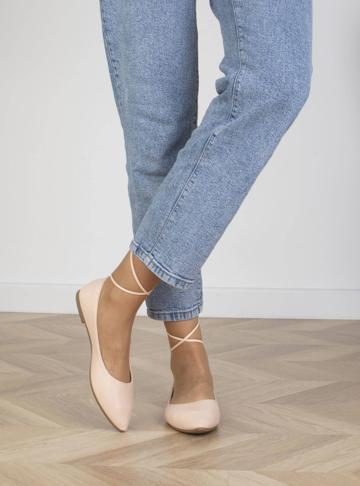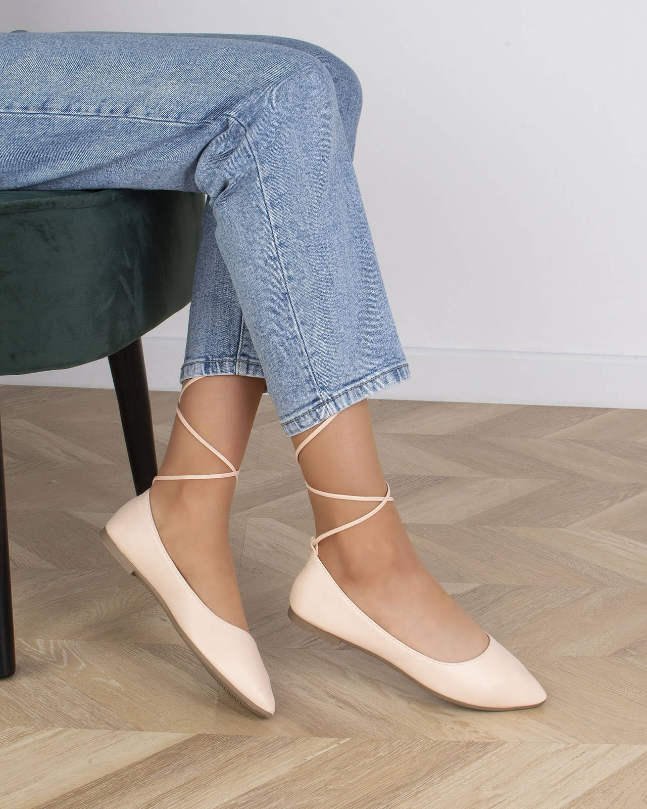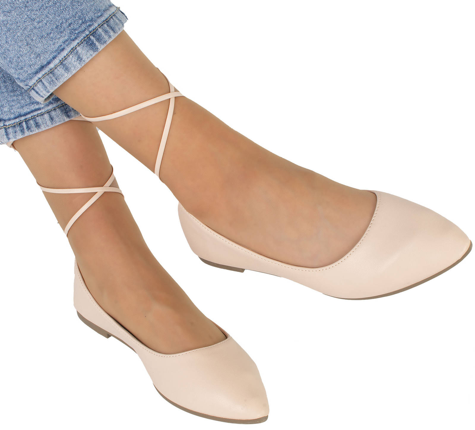 BEŻOWE KLASYCZNE BALERINKI Z WIĄZANIEM CANRA