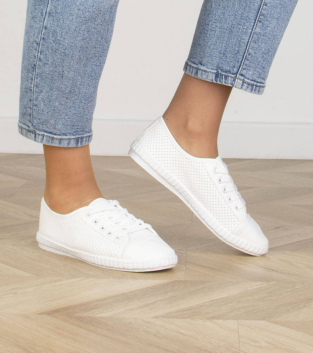 Jeśli szukasz trampków, które są wygodne i lekkie, ale bez rezygnacji z modnego wyglądu, to nasze białe skórzane trampki są idealnym rozwiązaniem. Wykonane z ekoskóry, z gumową podeszwą i wygodną wkładką tkaninową, są zarówno wygodne, jak i niezwykle lekkie. Dodatkowo są one sznurowane, więc idealnie dopasują się do Twojej stopy. To uniwersalny model, który będzie pasował do wielu stylizacji, a dzięki klasycznemu białemu kolorowi, będzie wyglądał świetnie na co dzień. Przetestuj je już dziś i ciesz się pełną wygodą!