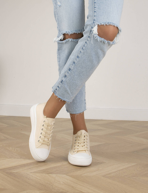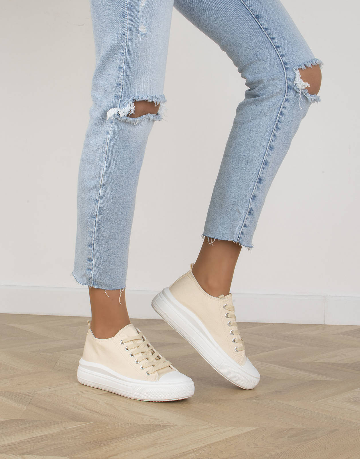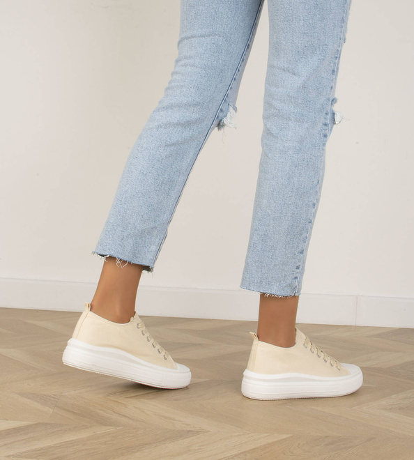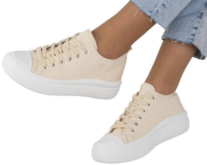 BEŻOWE TRAMPKI NA GRUBEJ PODESZWIE FRESIA