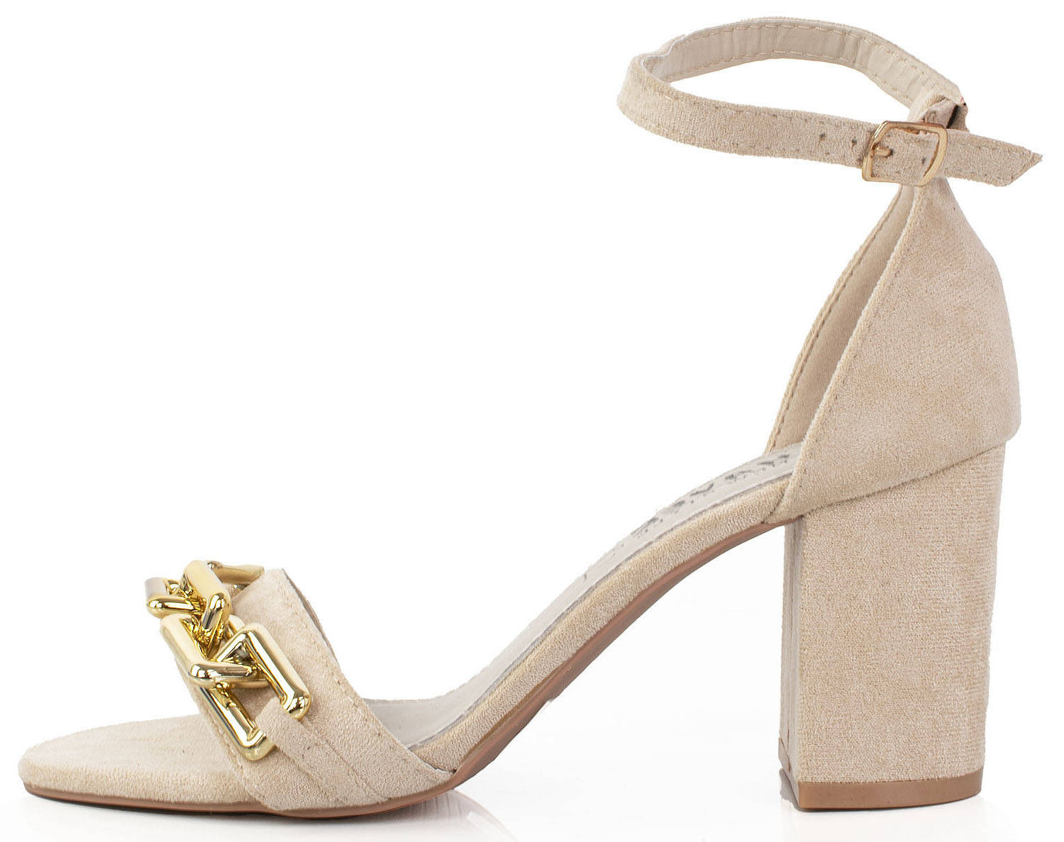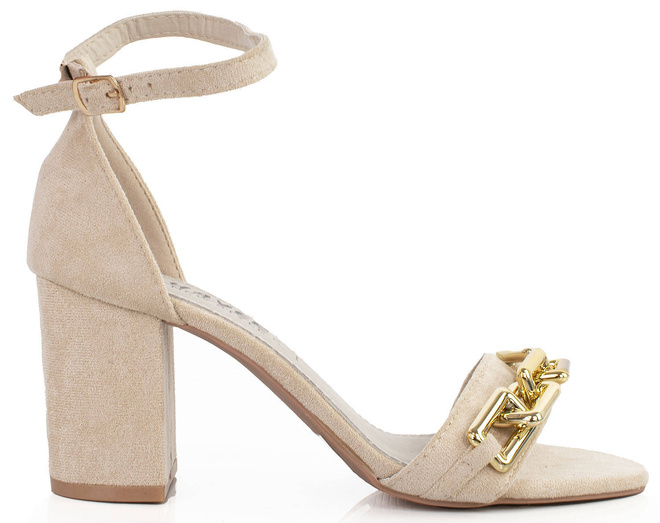 BEŻOWE SANDAŁY NA SŁUPKU ZAMSZOWE ŁAŃCUCH ROCHAN