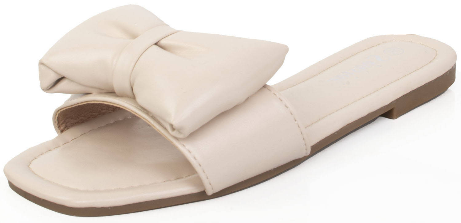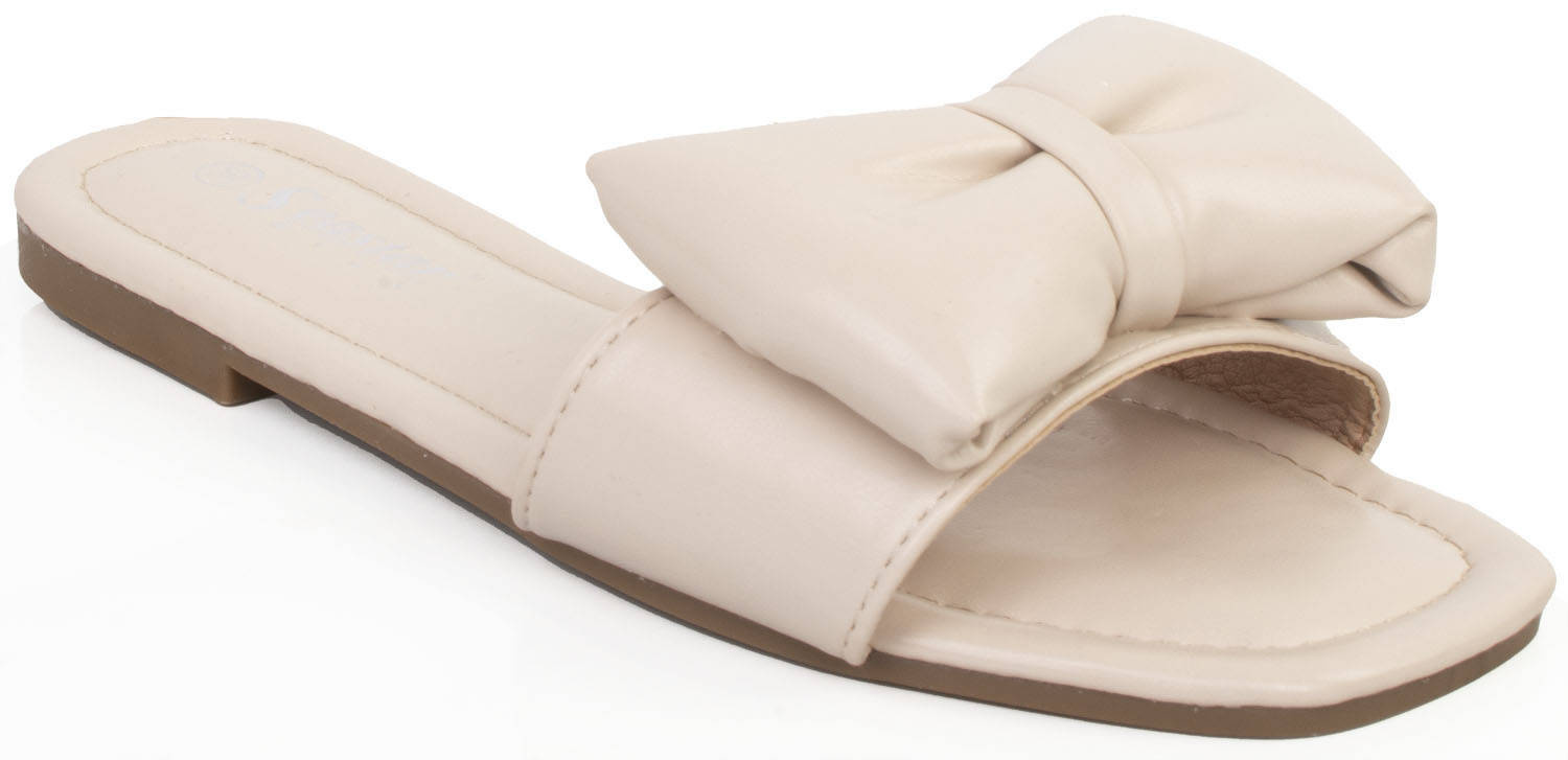 BEŻOWE KLAPKI Z KOKARDĄ SKÓRZANE HEITI