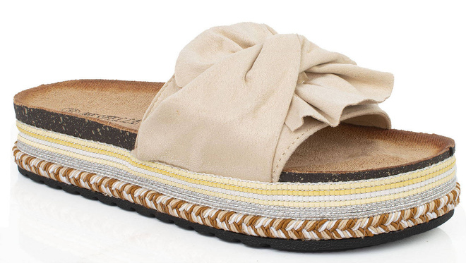 BEŻOWE KLAPKI ZAMSZOWE NA PLATFORMIE MAEY
