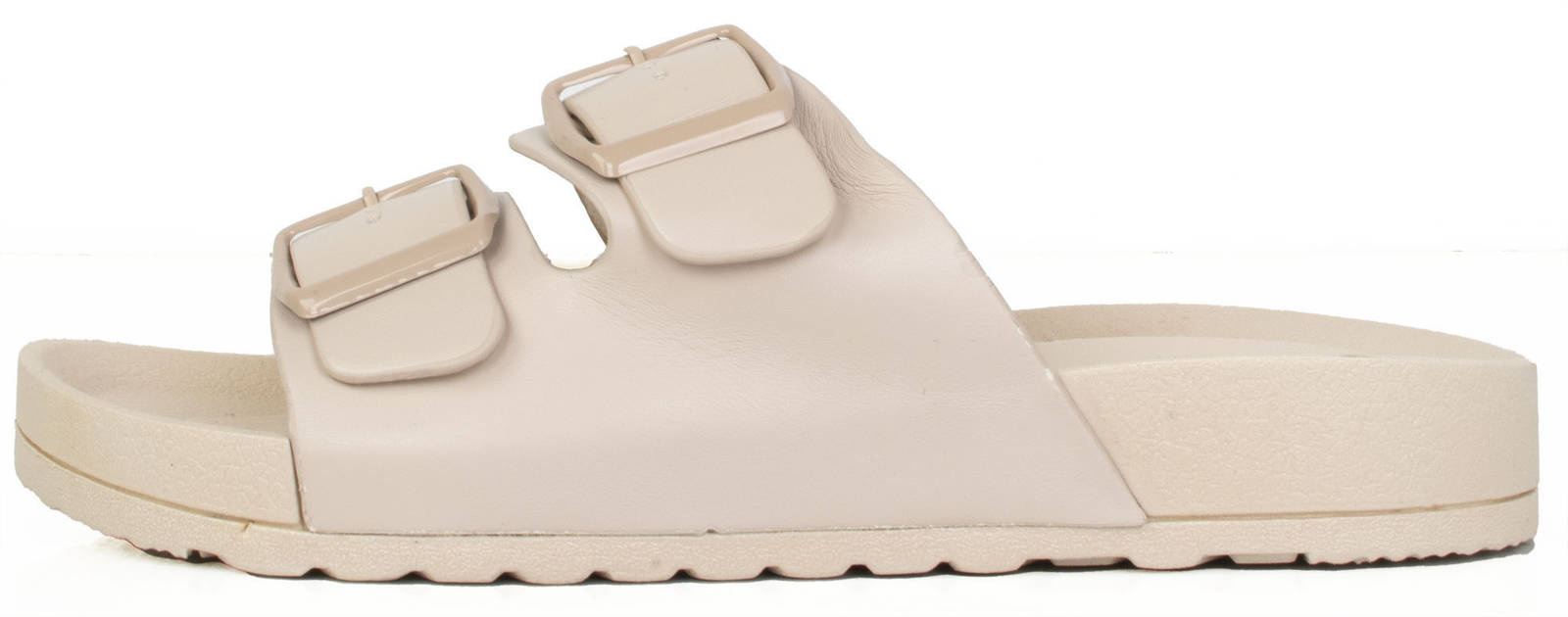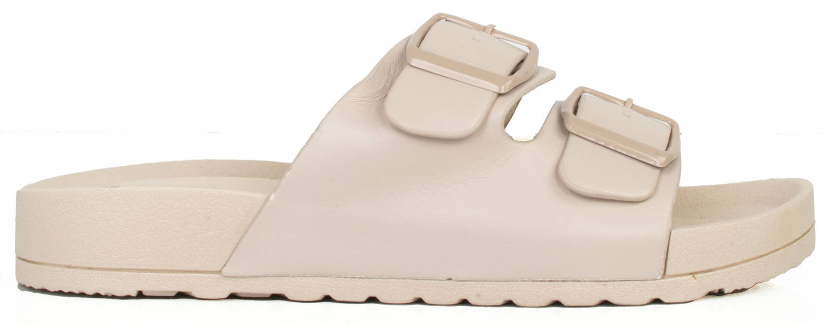 BEŻOWE KLAPKI Z KLAMRAMI PASKI SKÓRZANE AZURE