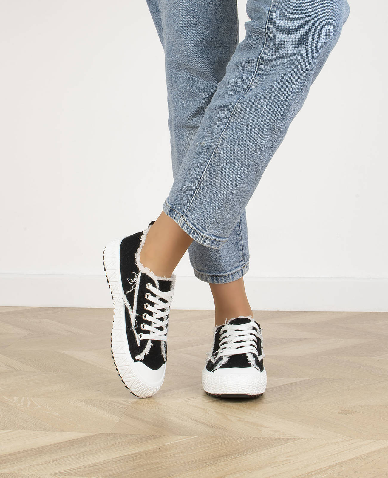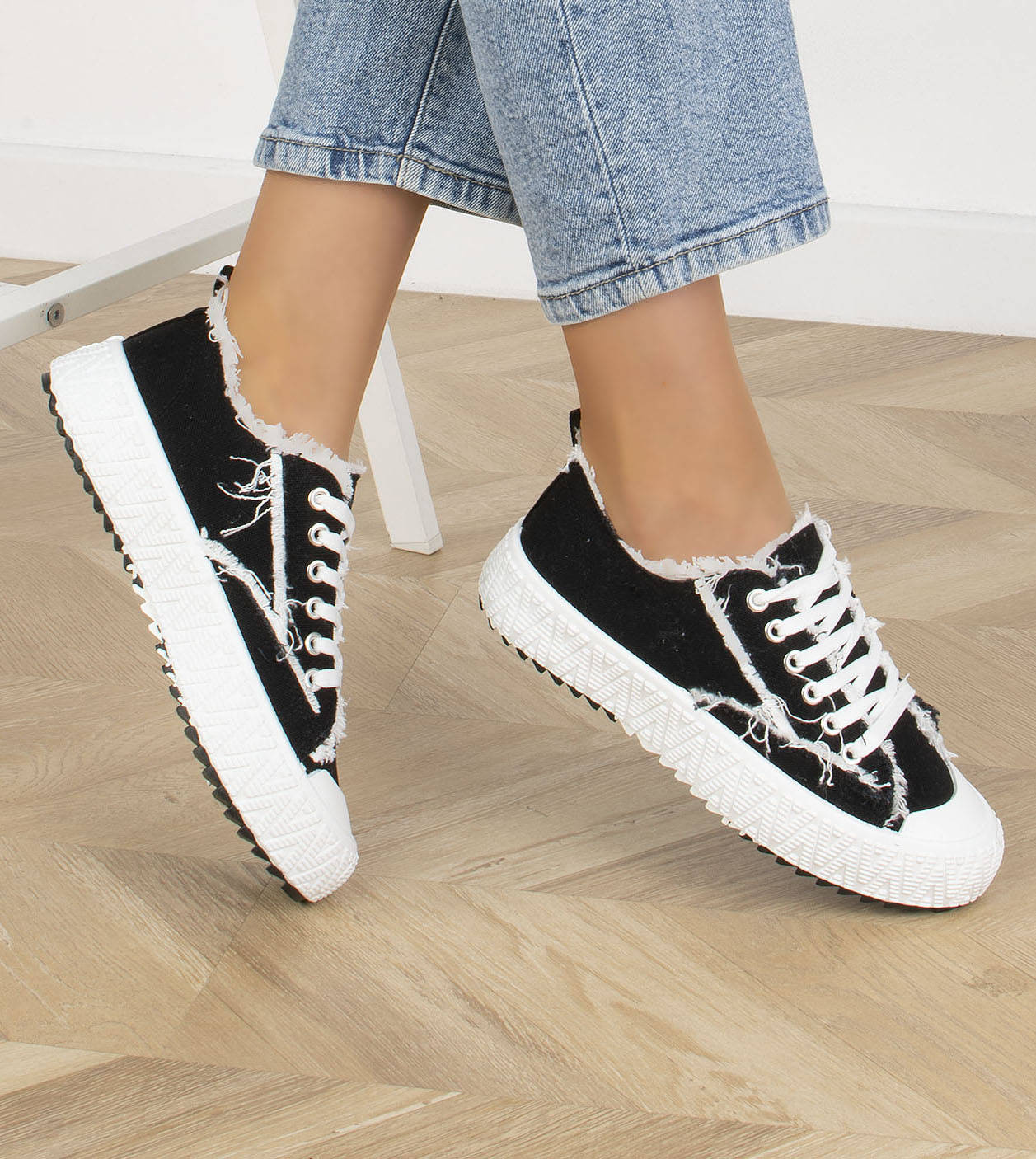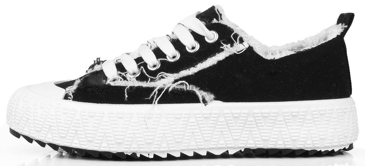 Jeśli szukasz trampków, które będą wygodne, wytrzymałe i wyglądające dobrze, to mamy dla Ciebie idealny produkt! Nasze trampki na grubej podeszwie są wykonane z wytrzymałej tkaniny w klasycznym modelu i są sznurowane. Dzięki grubej gumowej podeszwie typu platforma Twoje stopy będą miały wsparcie i ochronę, a Ty będziesz czuć się komfortowo w każdej sytuacji. Uniwersalny model tych trampków sprawia, że będą one pasować do wszystkiego - od jeansów po sukienkę. Z naszymi trampkami na grubej podeszwie będziesz wyglądać modnie i czuć się komfortowo!