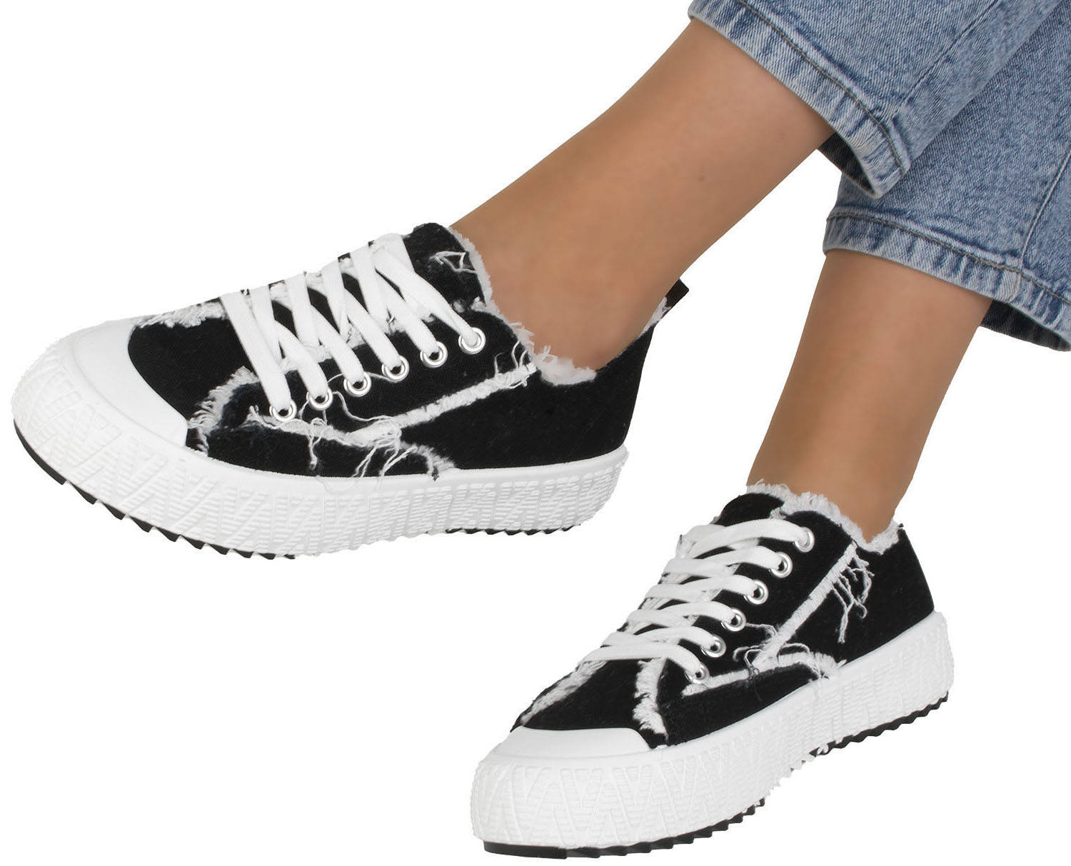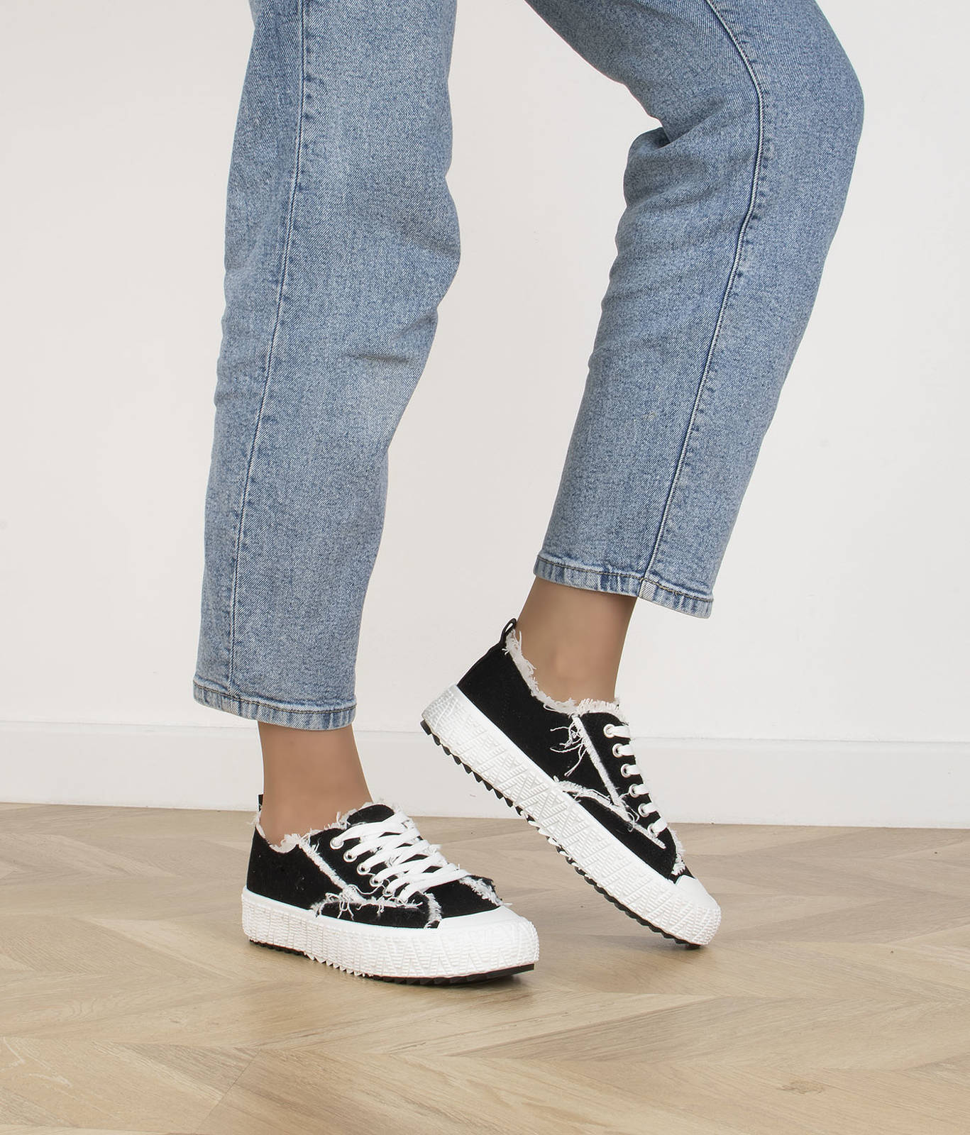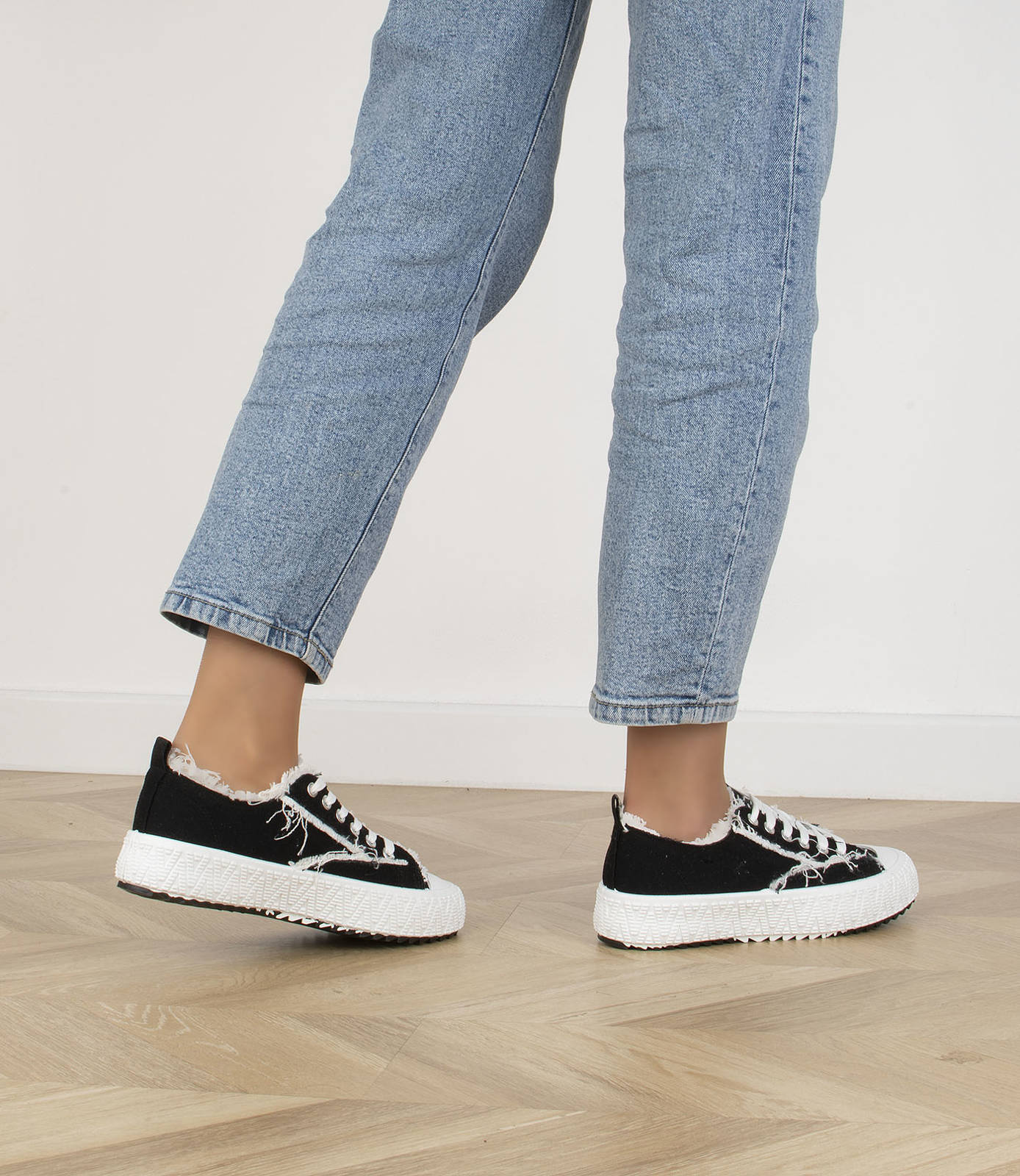 Jeśli szukasz trampków, które będą wygodne, wytrzymałe i wyglądające dobrze, to mamy dla Ciebie idealny produkt! Nasze trampki na grubej podeszwie są wykonane z wytrzymałej tkaniny w klasycznym modelu i są sznurowane. Dzięki grubej gumowej podeszwie typu platforma Twoje stopy będą miały wsparcie i ochronę, a Ty będziesz czuć się komfortowo w każdej sytuacji. Uniwersalny model tych trampków sprawia, że będą one pasować do wszystkiego - od jeansów po sukienkę. Z naszymi trampkami na grubej podeszwie będziesz wyglądać modnie i czuć się komfortowo!