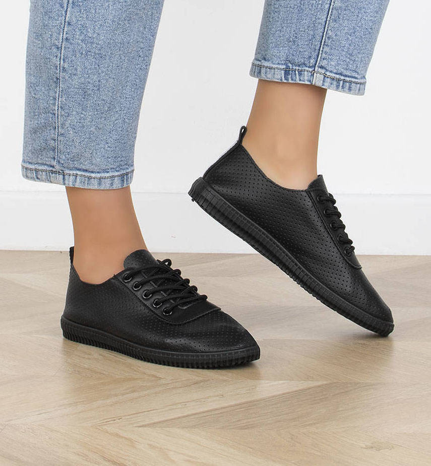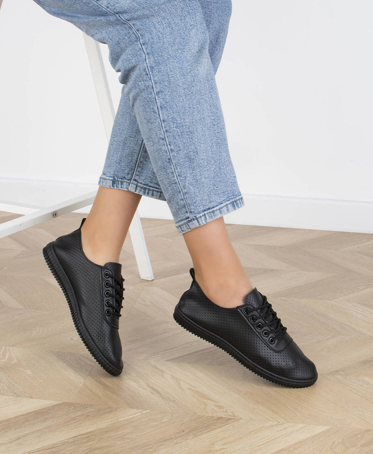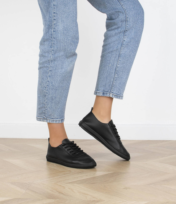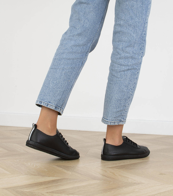 CZARNE TRAMPKI TENISÓWKI SKÓRZANE
