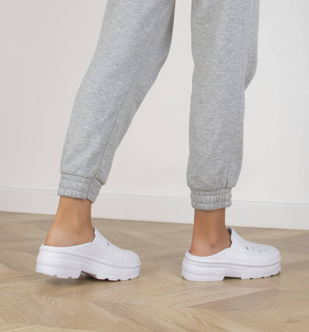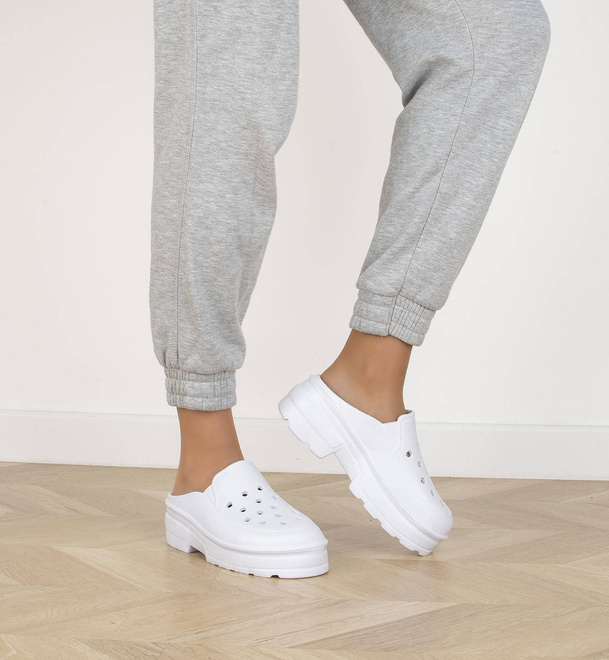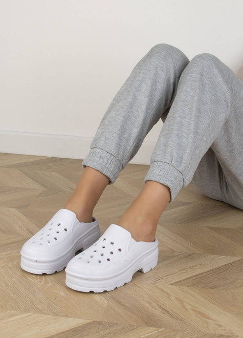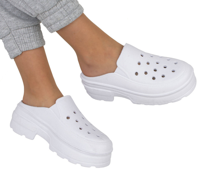 BIAŁE KLAPKI CHODAKI KROKSY NA PLATFORMIE