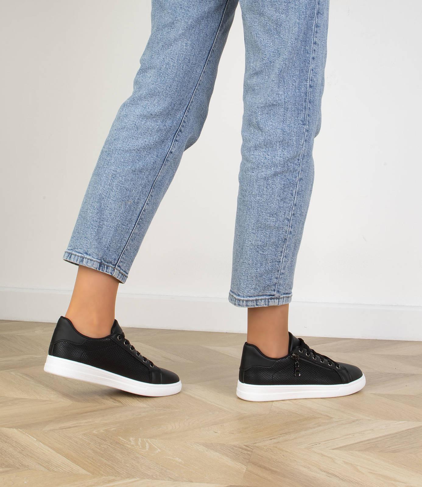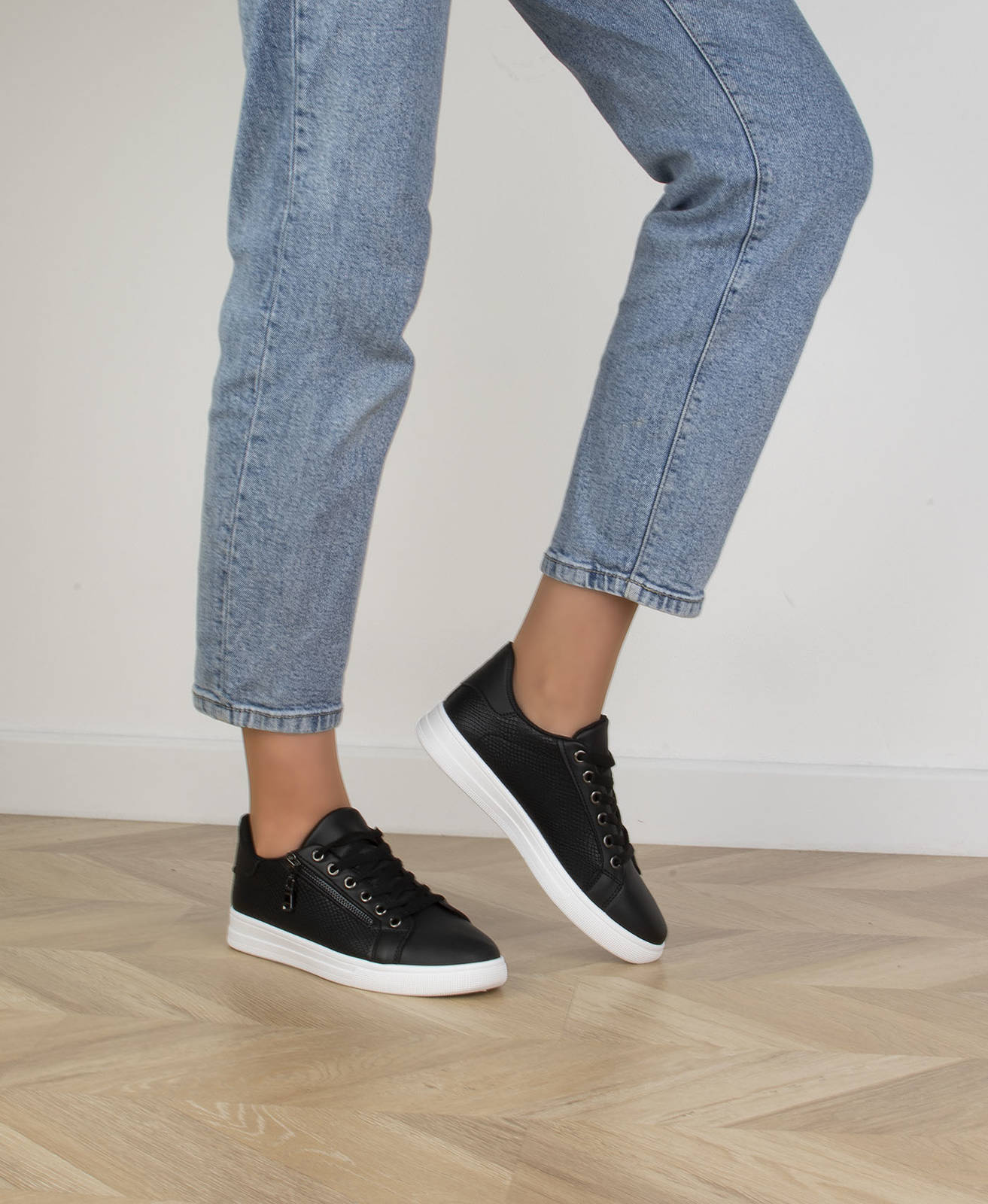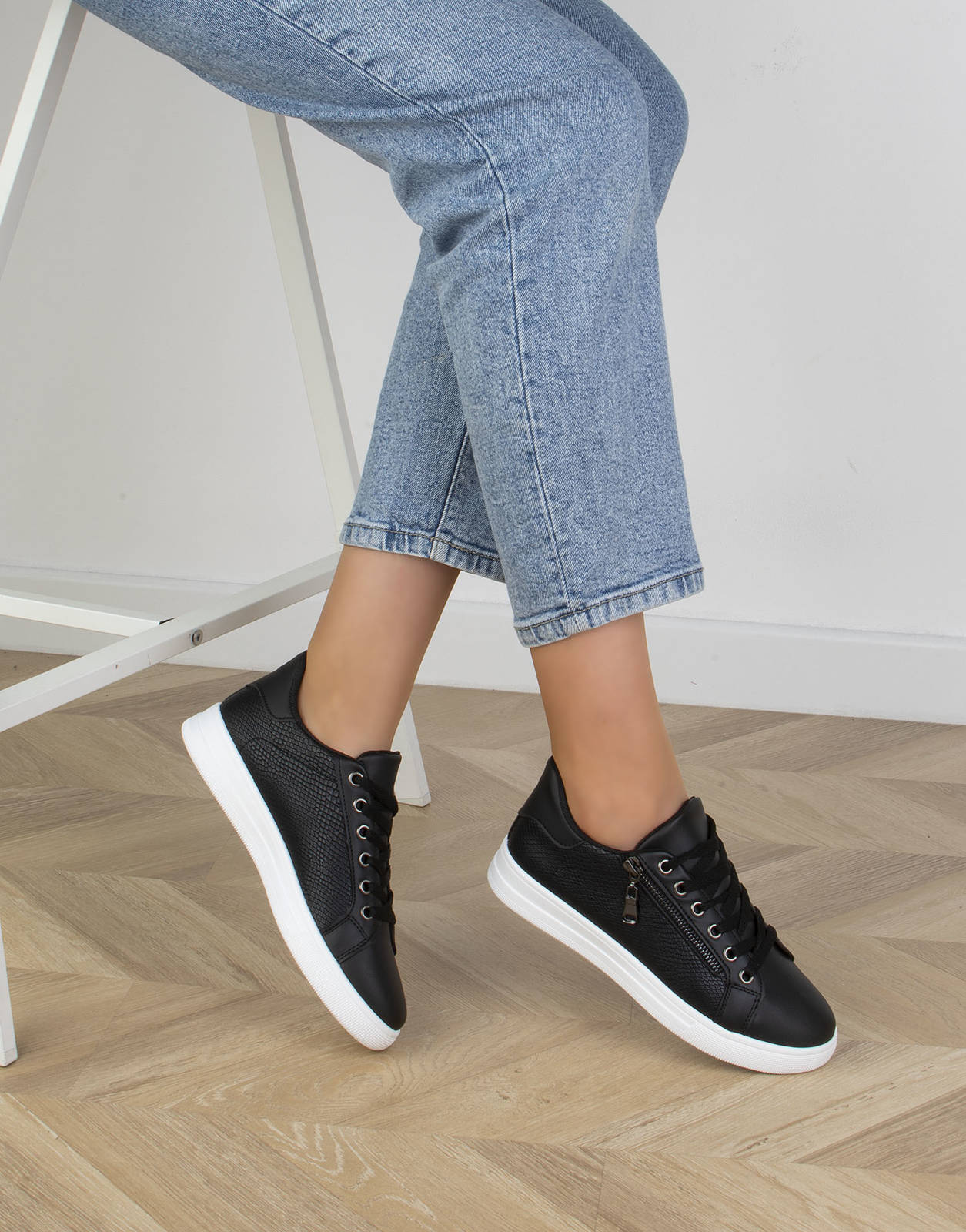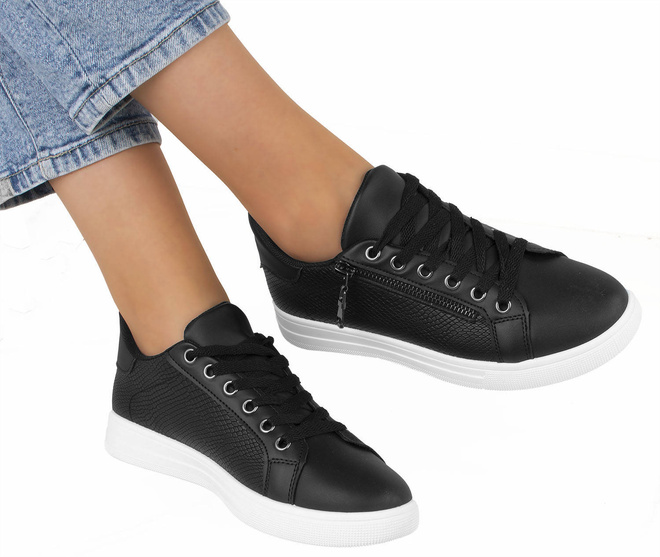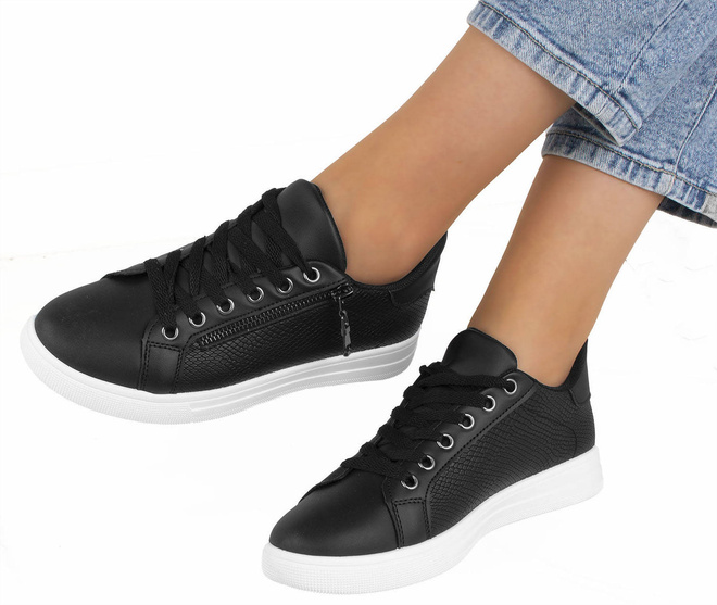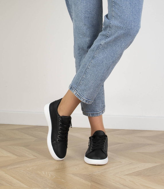 CZARNE TRAMPKI SKÓRZANE SNEAKERSY RINET