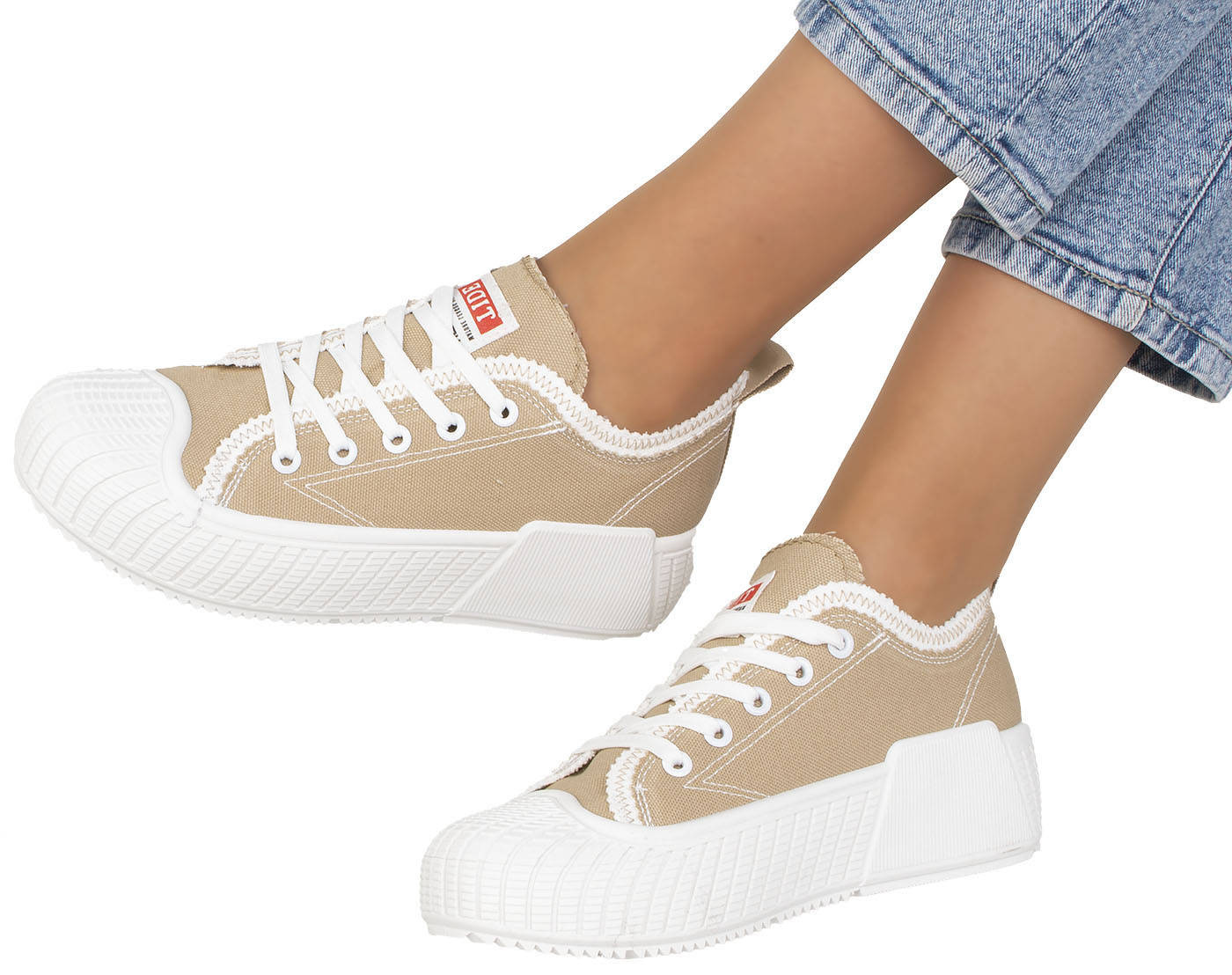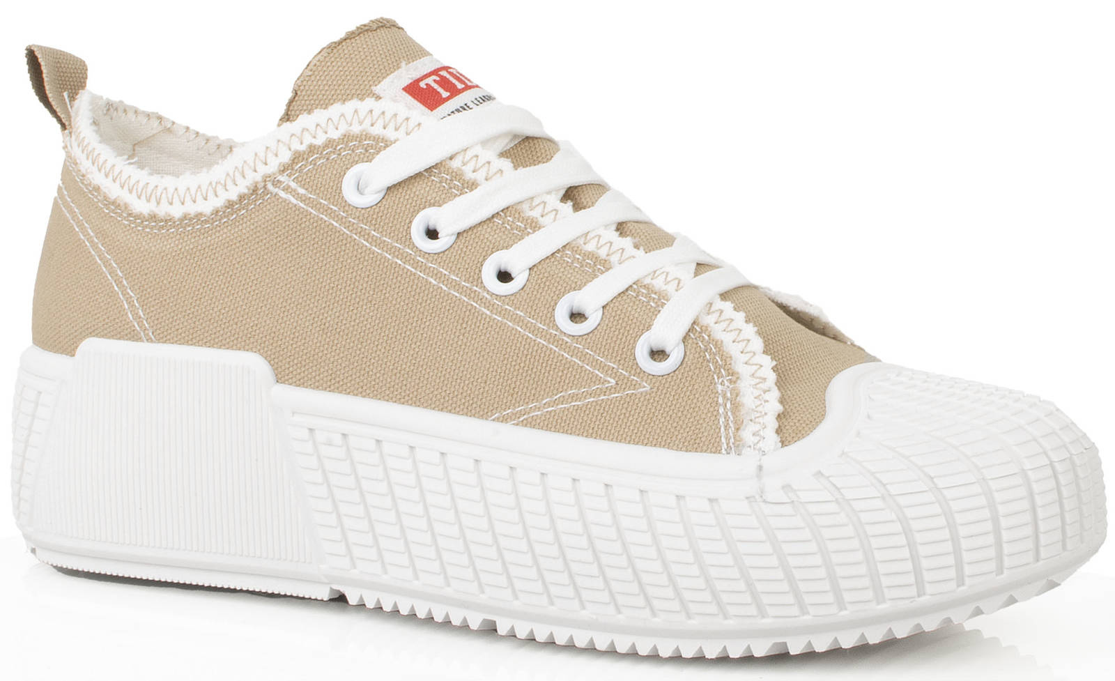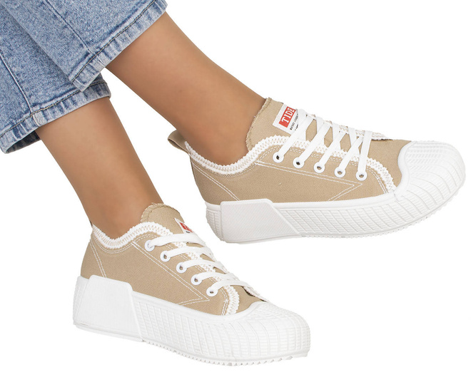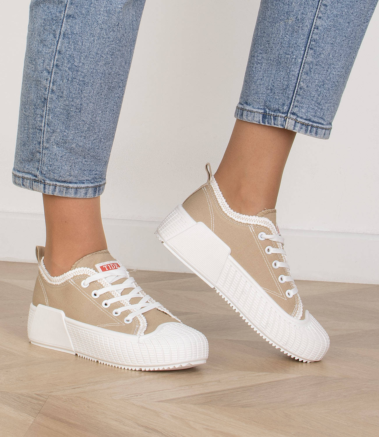Jeśli szukasz trampków, które będą wygodne, wytrzymałe i wyglądające dobrze, to mamy dla Ciebie idealny produkt! Nasze trampki na grubej podeszwie są wykonane z wytrzymałej tkaniny w klasycznym modelu i są sznurowane. Dzięki grubej gumowej podeszwie typu platforma Twoje stopy będą miały wsparcie i ochronę, a Ty będziesz czuć się komfortowo w każdej sytuacji. Uniwersalny model tych trampków sprawia, że będą one pasować do wszystkiego - od jeansów po sukienkę. Z naszymi trampkami na grubej podeszwie będziesz wyglądać modnie i czuć się komfortowo!