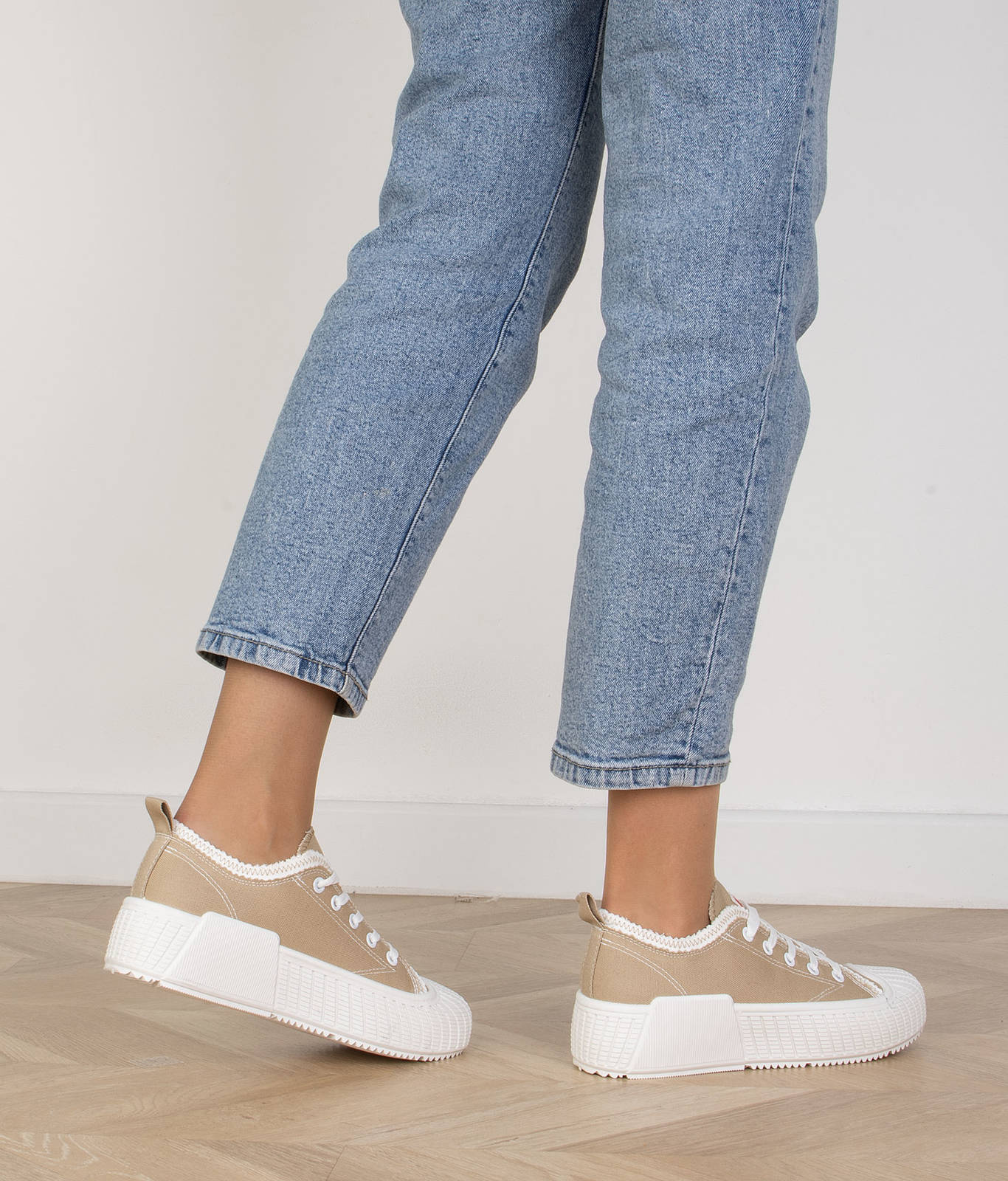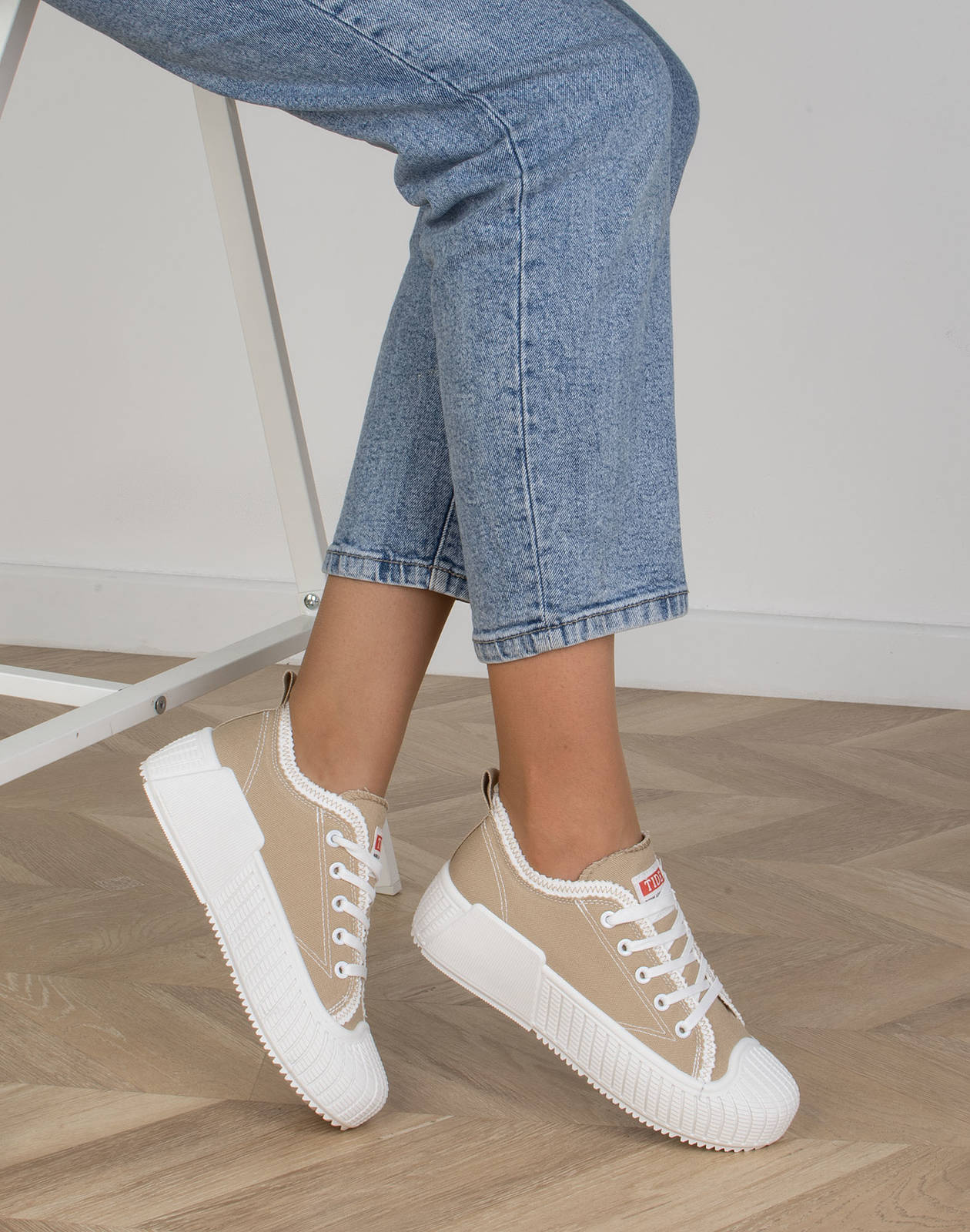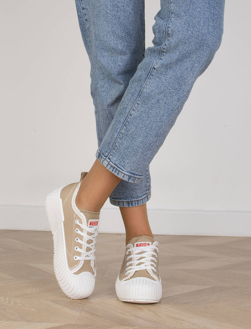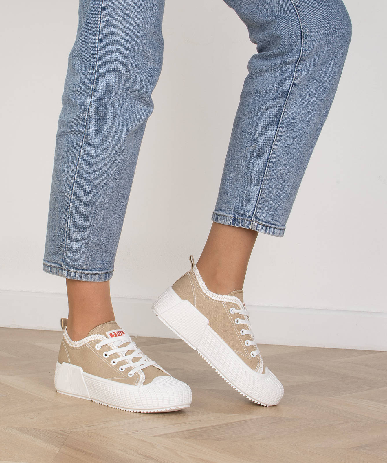 Jeśli szukasz trampków, które będą wygodne, wytrzymałe i wyglądające dobrze, to mamy dla Ciebie idealny produkt! Nasze trampki na grubej podeszwie są wykonane z wytrzymałej tkaniny w klasycznym modelu i są sznurowane. Dzięki grubej gumowej podeszwie typu platforma Twoje stopy będą miały wsparcie i ochronę, a Ty będziesz czuć się komfortowo w każdej sytuacji. Uniwersalny model tych trampków sprawia, że będą one pasować do wszystkiego - od jeansów po sukienkę. Z naszymi trampkami na grubej podeszwie będziesz wyglądać modnie i czuć się komfortowo!