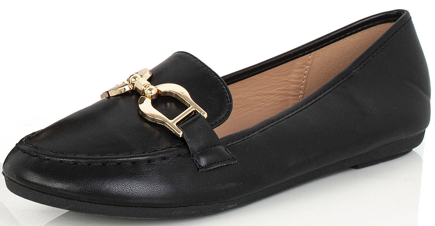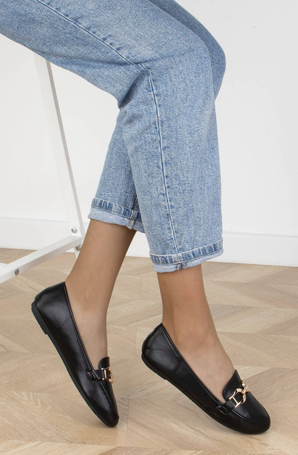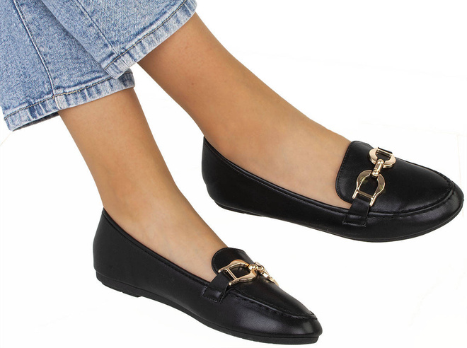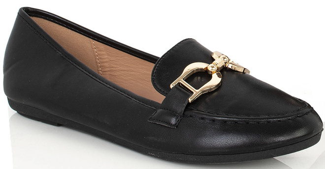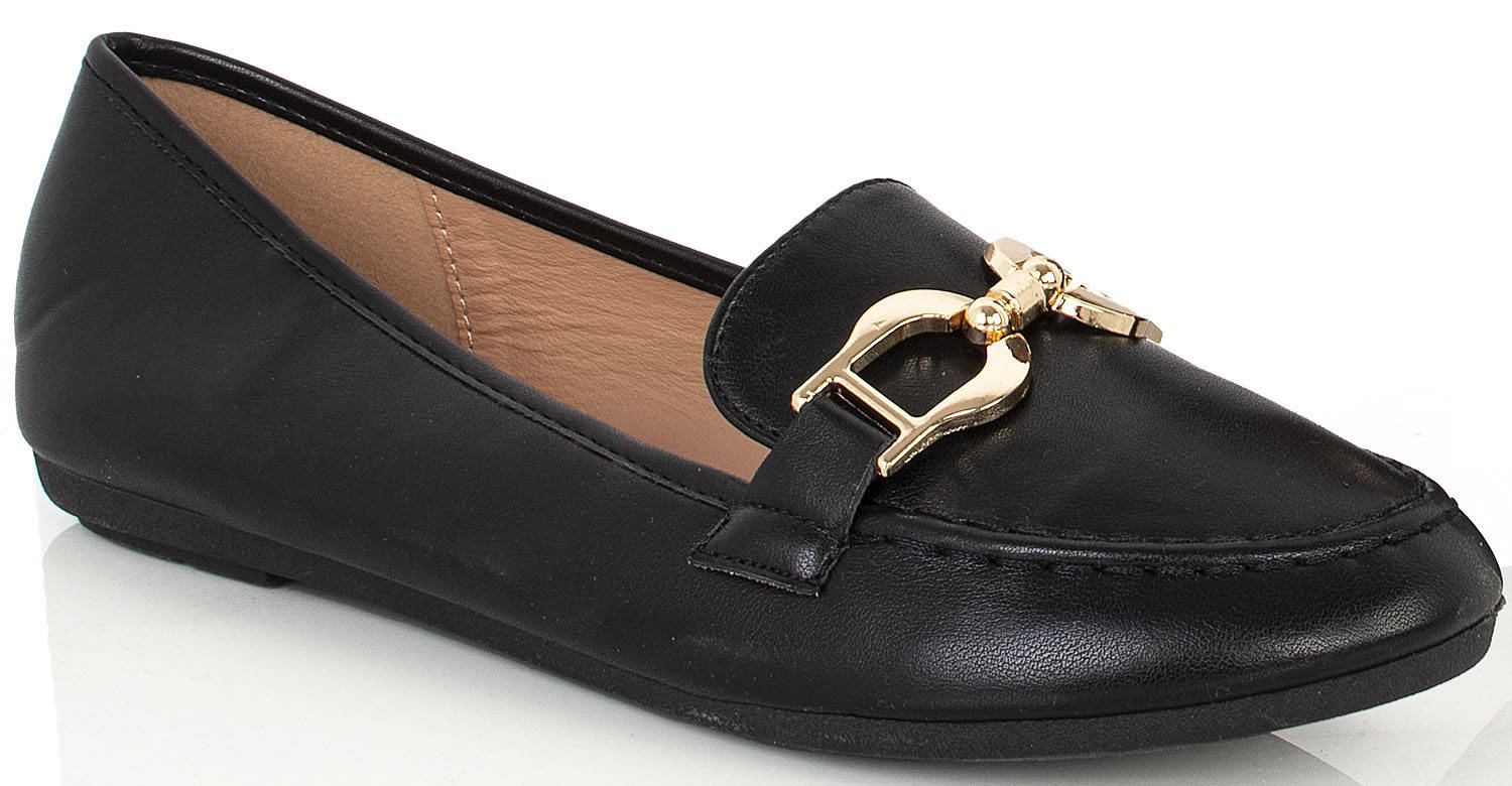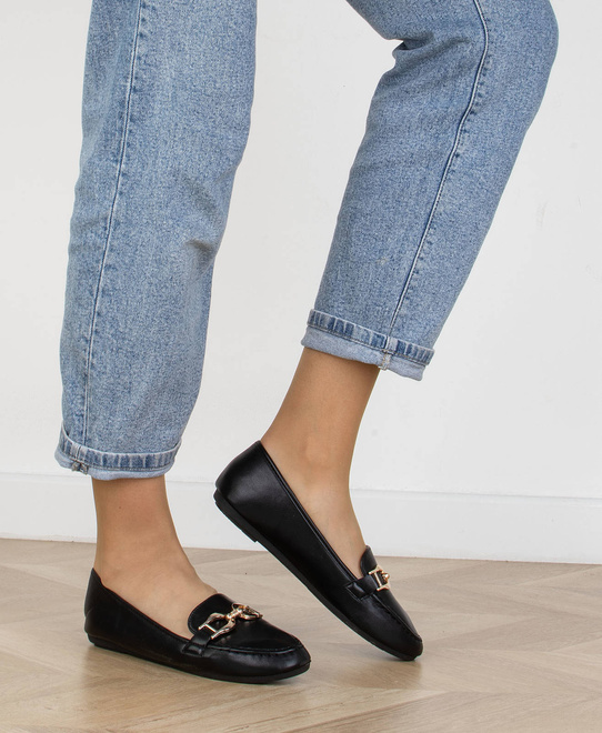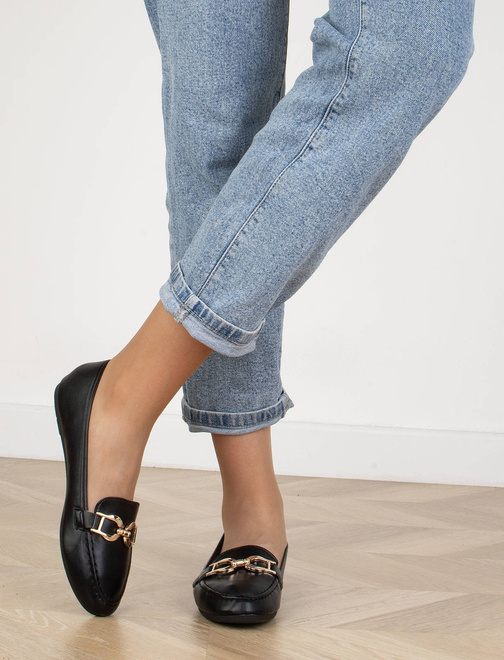 CZARNE SKÓRZANE MOKASYNY Z ŁAŃCUSZKIEM CASSY
