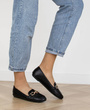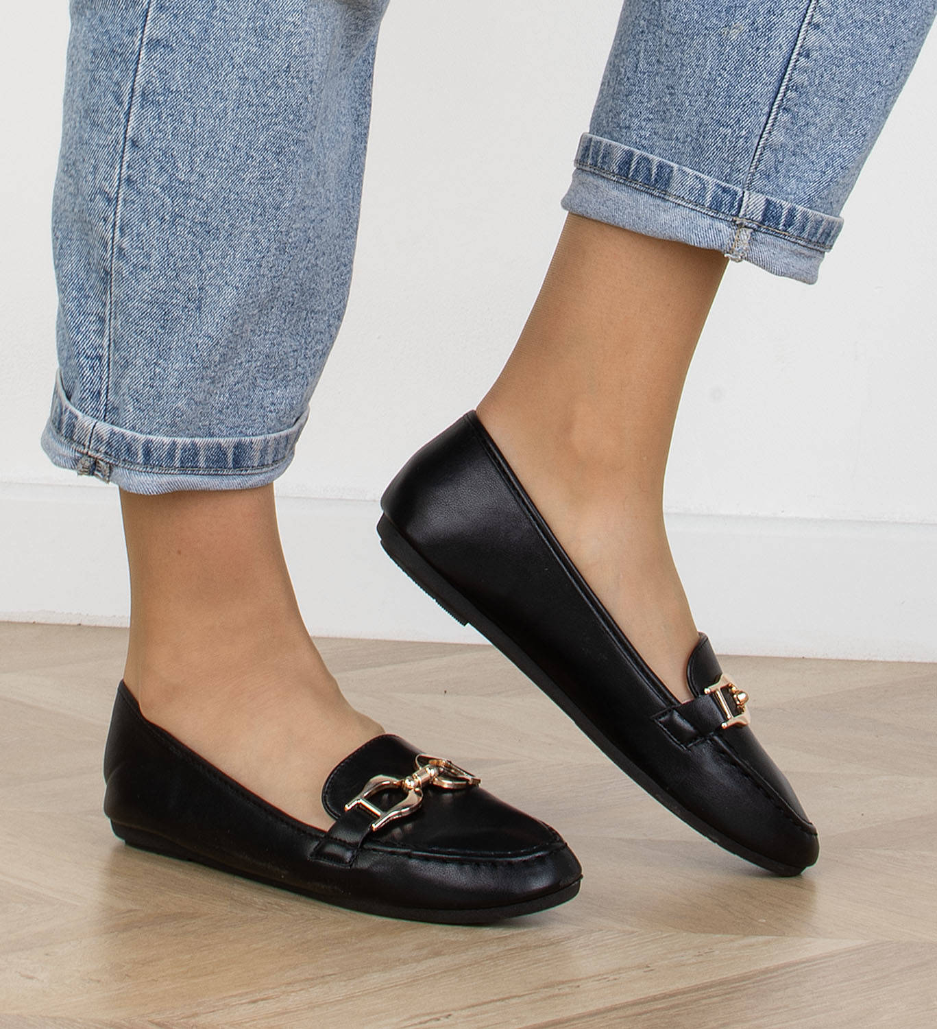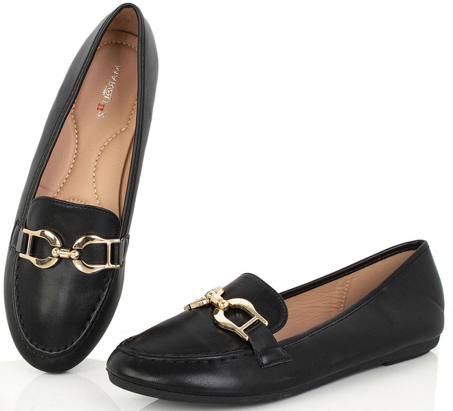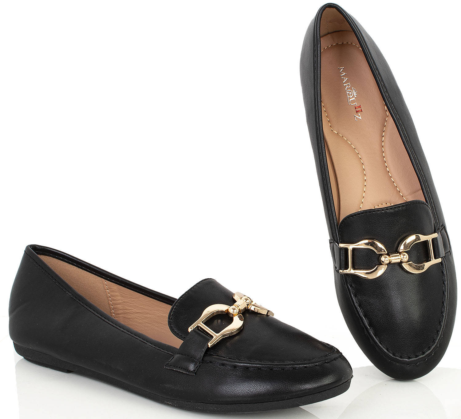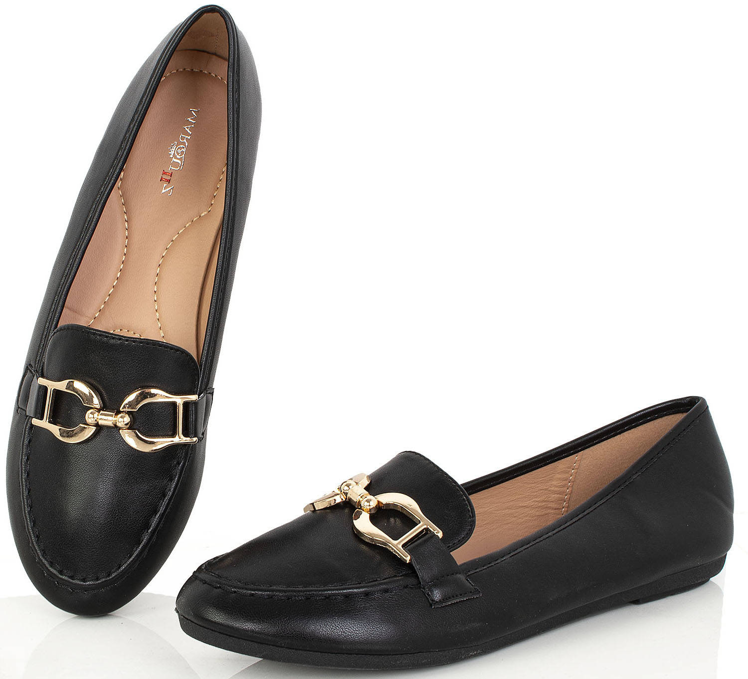 CZARNE SKÓRZANE MOKASYNY Z ŁAŃCUSZKIEM CASSY