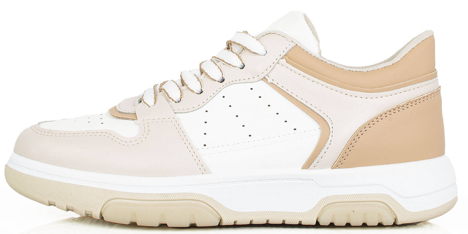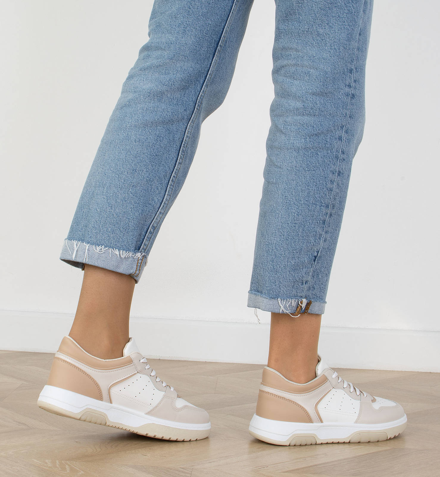 Jeśli szukasz idealnych butów na wiosenne dni, to beżowe sneakersy sportowe trampki są idealnym wyborem. Wykonane są z wysokiej jakości ekoskóry w połączeniu z wstawkami z zamszu, dzięki czemu są nie tylko trwałe, ale również bardzo stylowe. Choć są to buty sportowe, możesz je nosić na co dzień, gdyż są bardzo wygodne. Wkładka tkaninowa zapewnia Ci komfortowe użytkowanie, a sznurowane zamknięcie sprawia, że cholewka sięga do kostki. Piękny układ kolorystyczny sprawia, że buty idealnie pasują do wiosennych stylizacji. Beżowe sneakersy sportowe trampki to idealny wybór dla wszystkich kobiet, które lubią wyglądać modnie i czuć się wygodnie.
