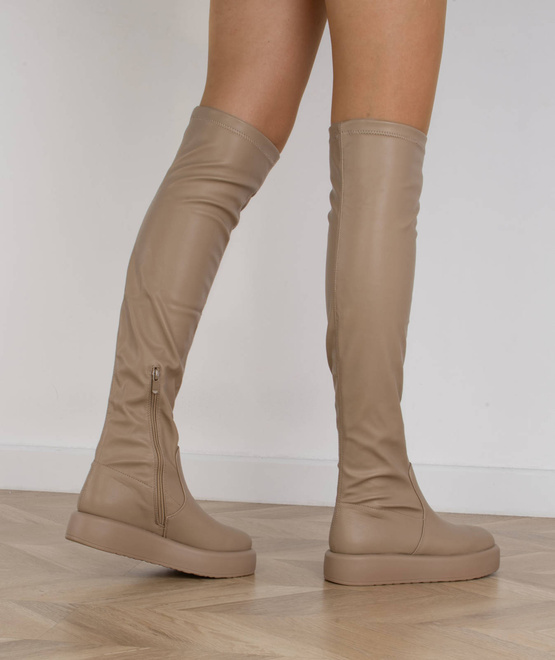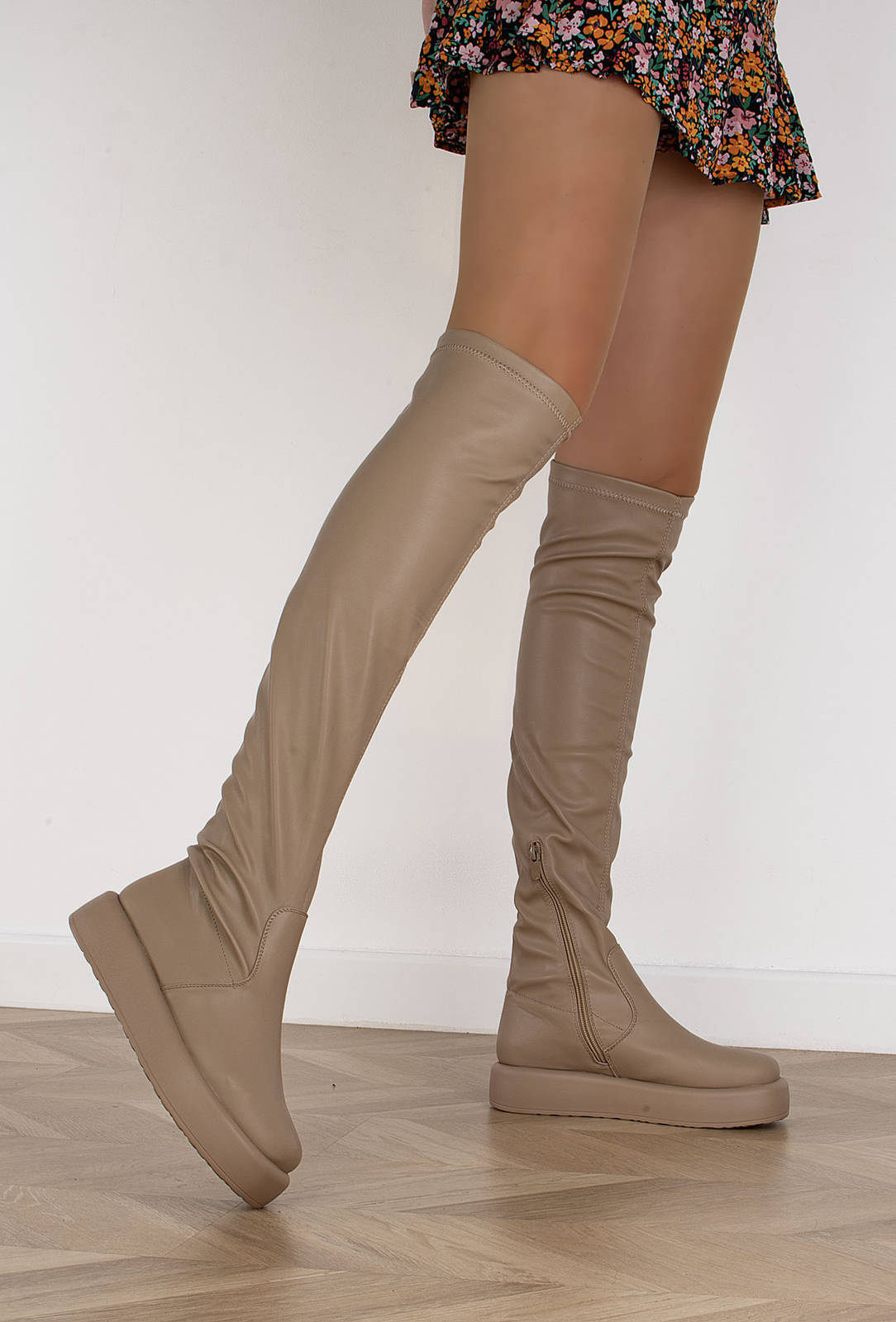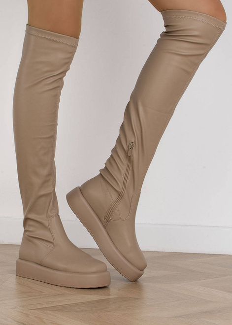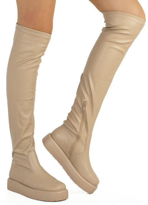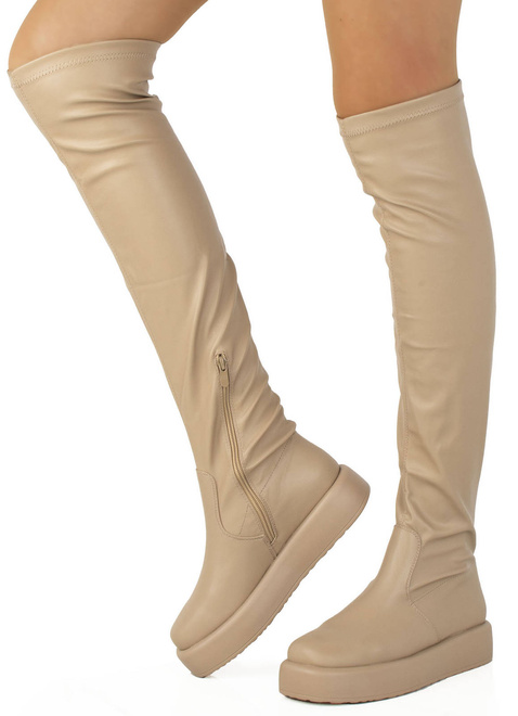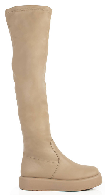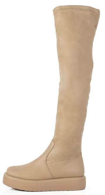 BEŻOWE SKÓRZANE KOZAKI NA PLATFORMIE SABRINA
