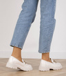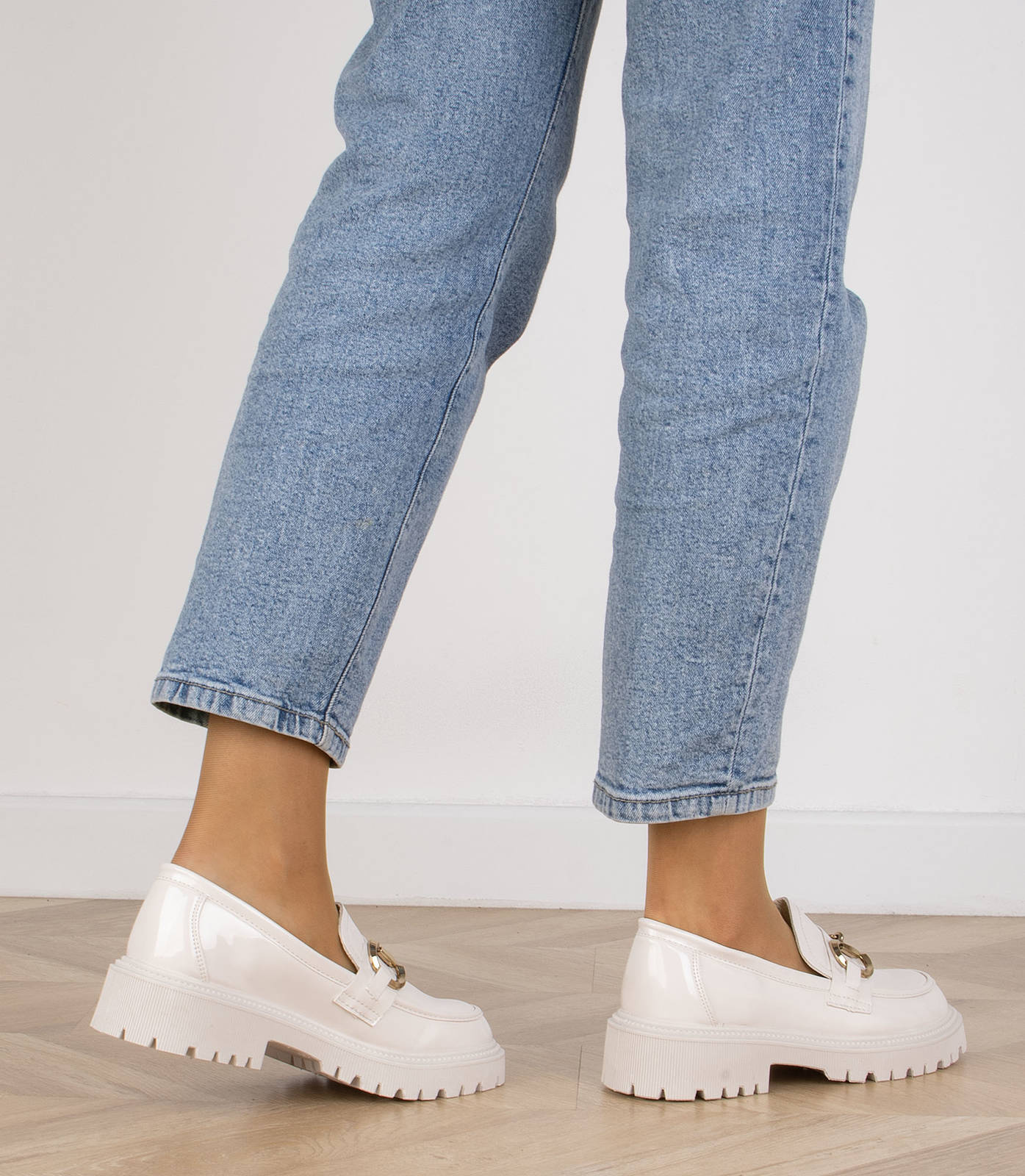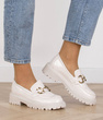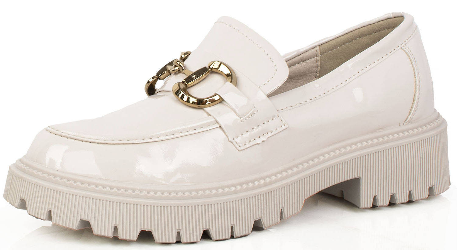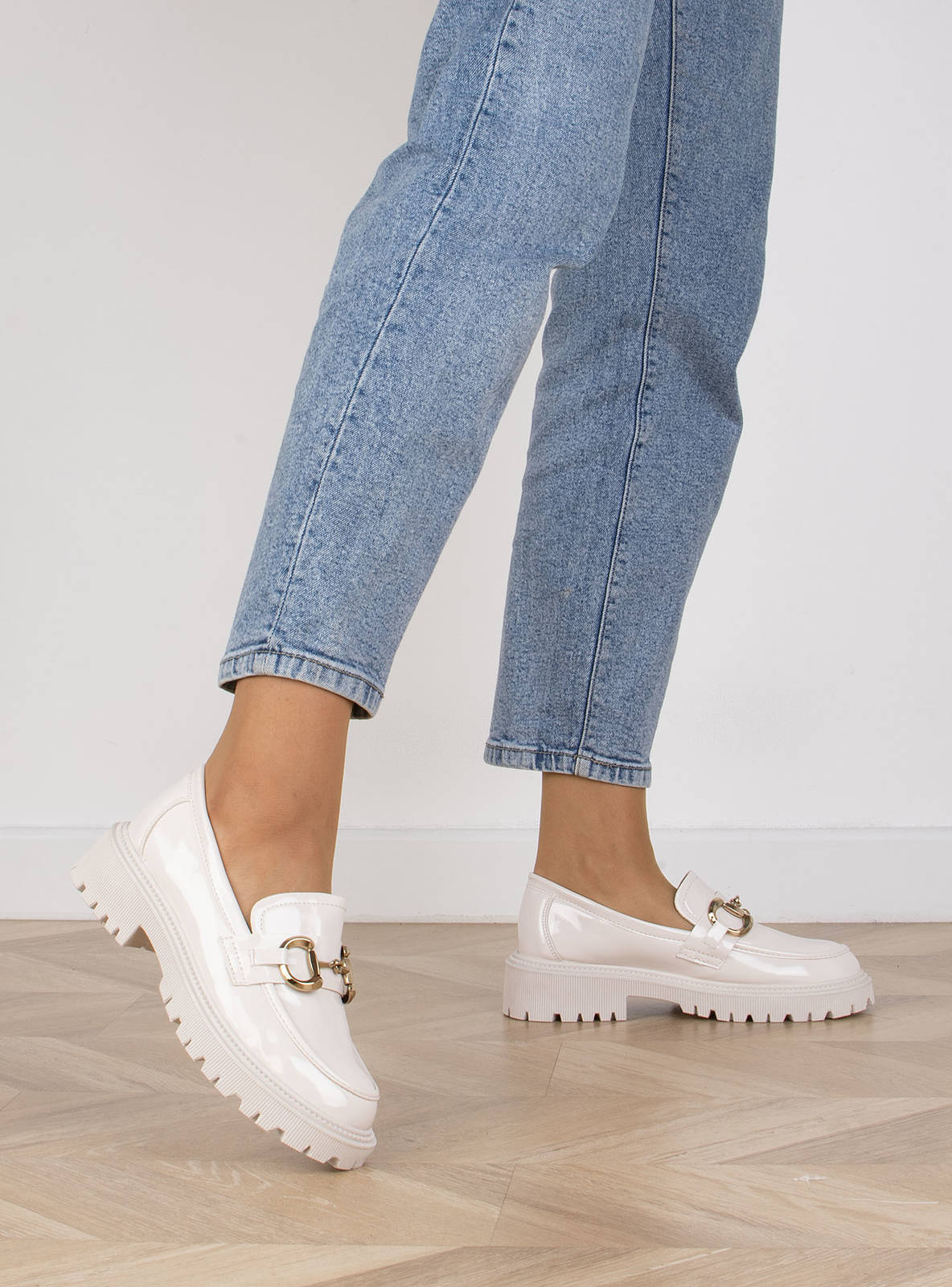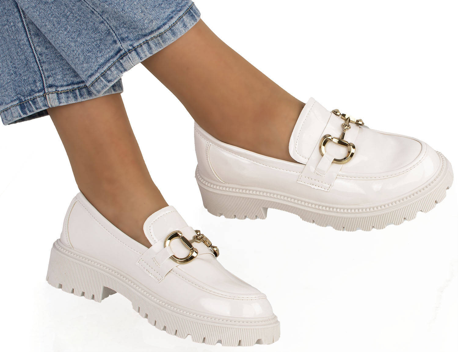 KREMOWE MOKASYNY LAKIEROWANE Z ŁAŃCUCHEM KARA
