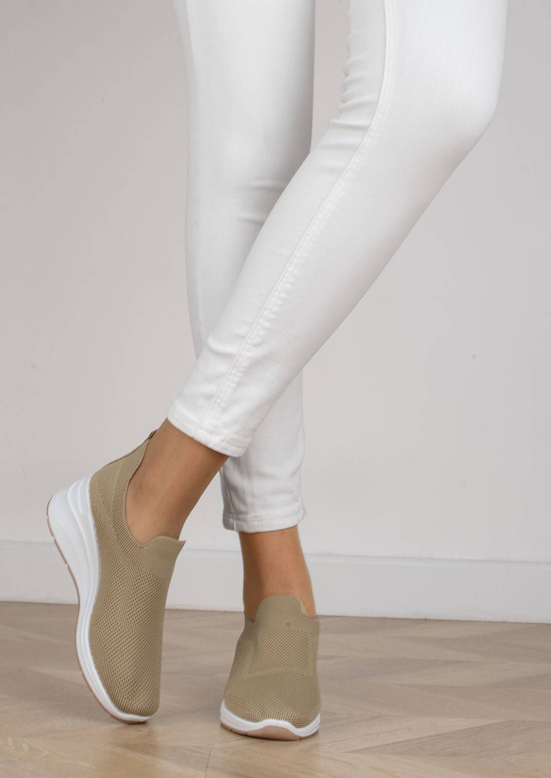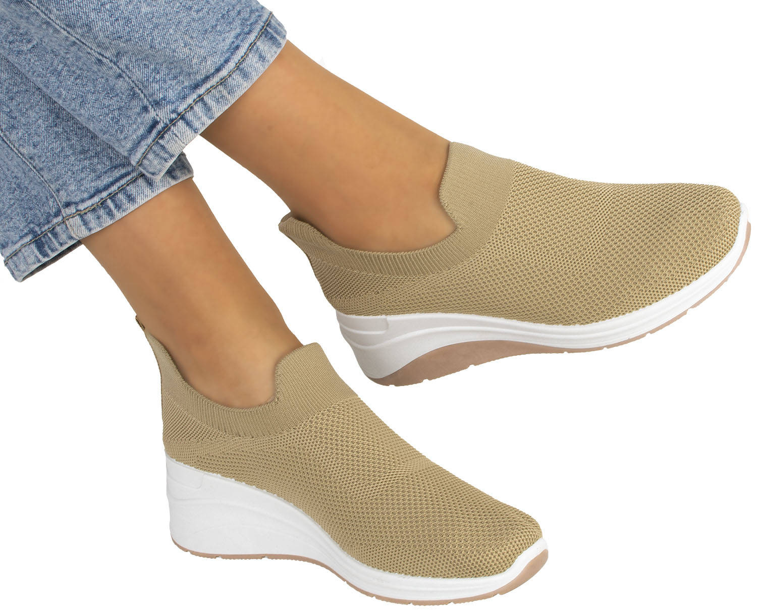 BEŻOWE BUTY SPORTOWE SNEAKERSY WSUWANE AMARA
