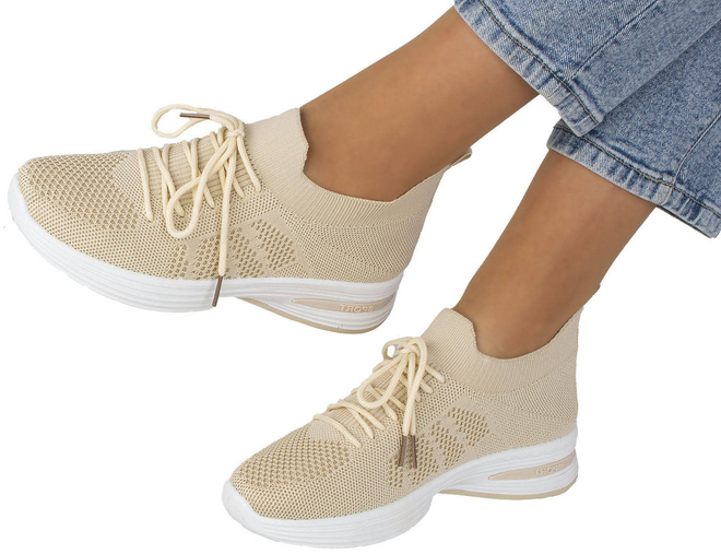 BEŻOWE BUTY SPORTOWE SNEAKERSY KATRINA