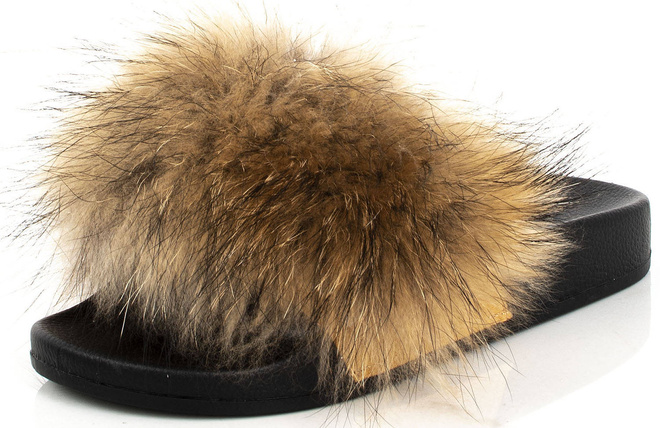 KLAPKI Z NATURALNYM FUTERKIEM CAMEL GUMOWE ELIZA