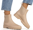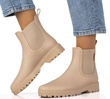 Wszywane kalosze to praktyczne rozwiązanie, które ułatwia szybkie zakładanie i zdejmowanie butów. Boczne wstawki z elastycznego materiału po bokach cholewki umożliwiają lepsze dopasowanie butów do stopy oraz dodatkową elastyczność podczas chodzenia.