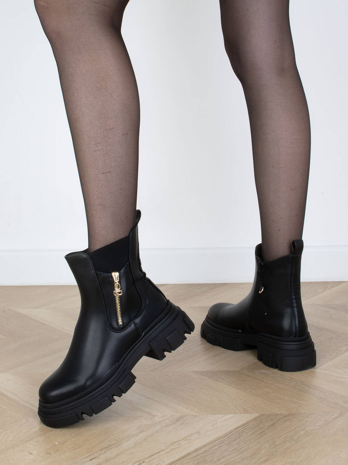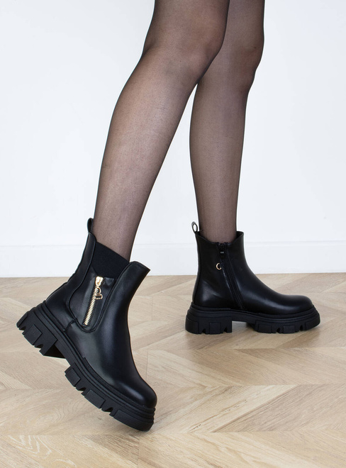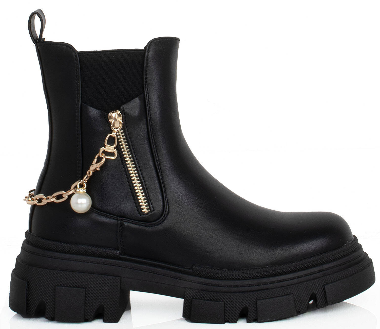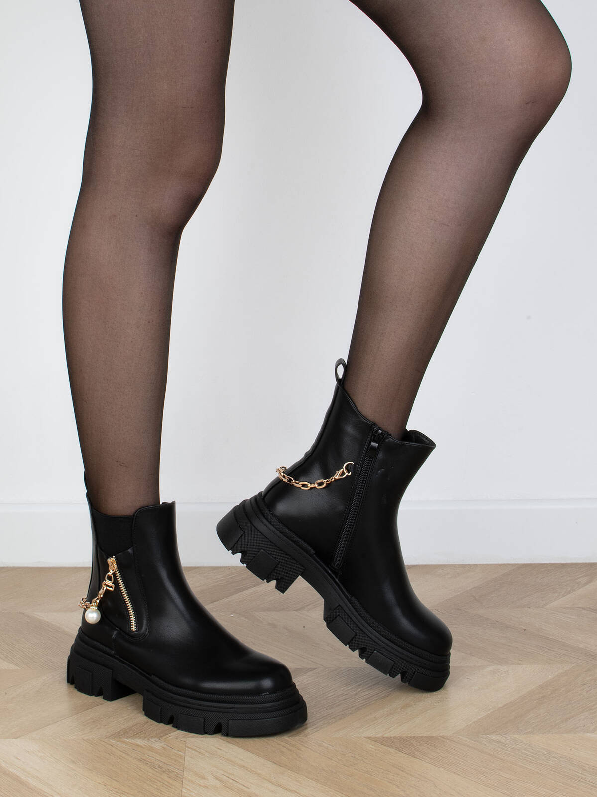 Stylowe botki na platformie, które łączą w sobie wygodę, modny design i subtelny akcent ozdobny w postaci łańcuszka wokół cholewki. Ten model botków to idealny wybór dla osób ceniących komfort i elegancję.