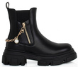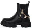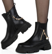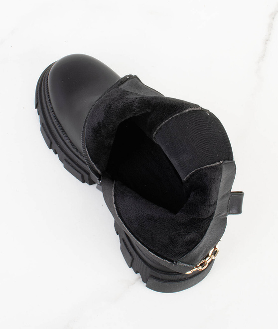 Cholewka botków została wykonana z wysokiej jakości materiału, co gwarantuje trwałość i estetyczny wygląd. Ozdobny łańcuszek, umieszczony wokół cholewki, dodaje butom unikatowego charakteru i stylu.