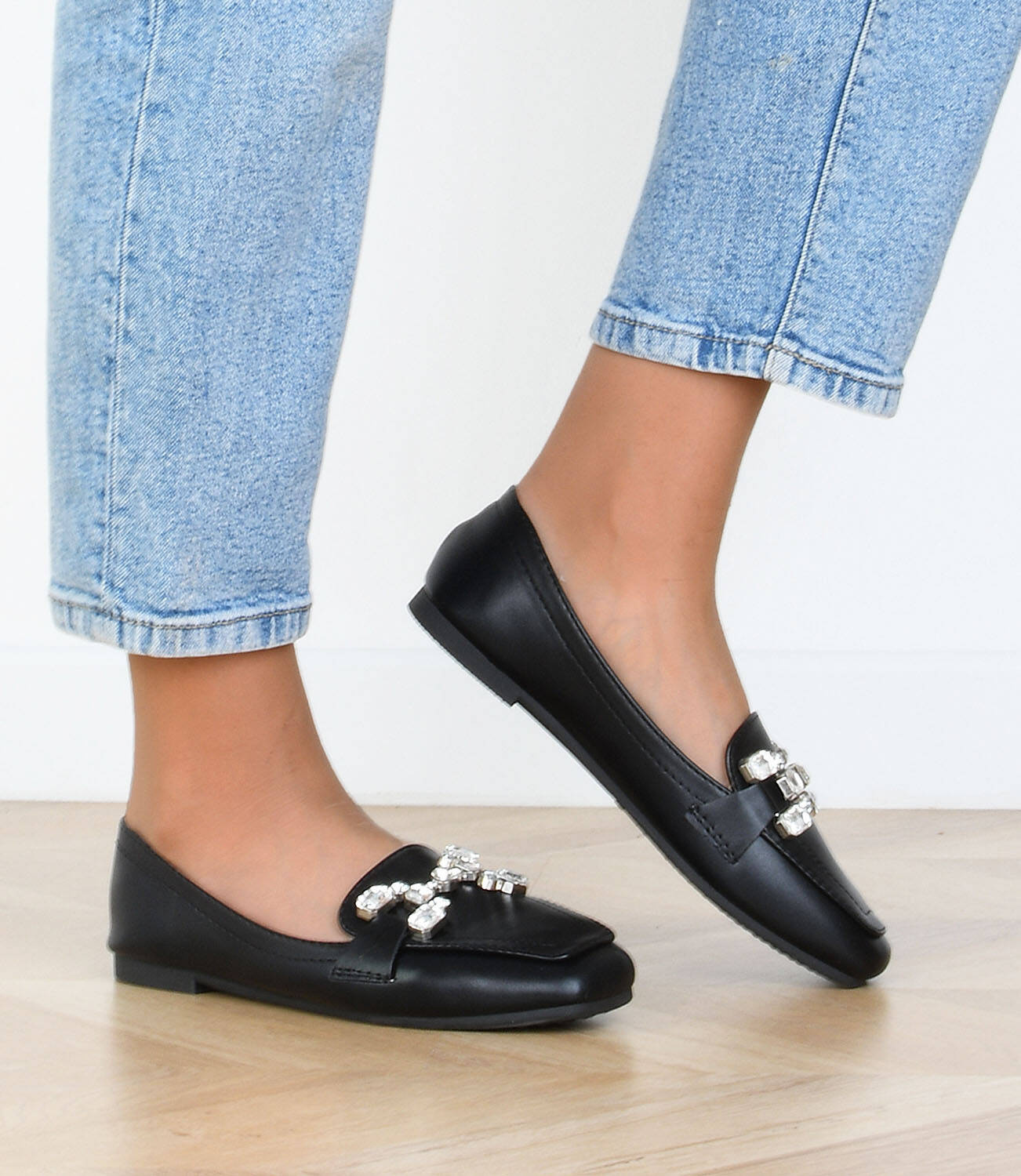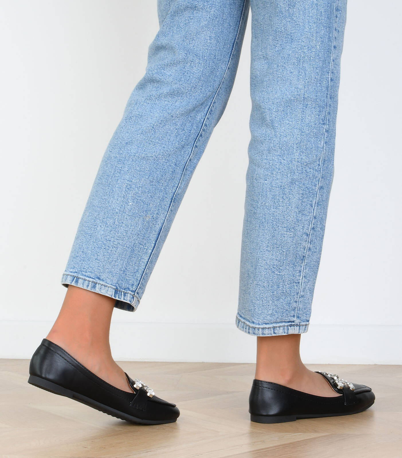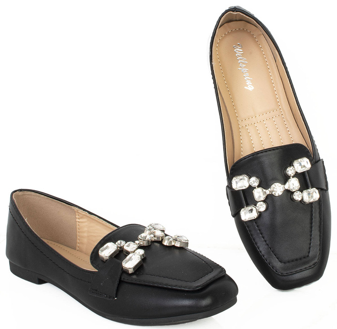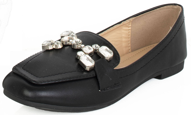 CZARNE MOKASYNY PÓŁBUTY ŁAŃCUCH EKOSKÓRA ABEL