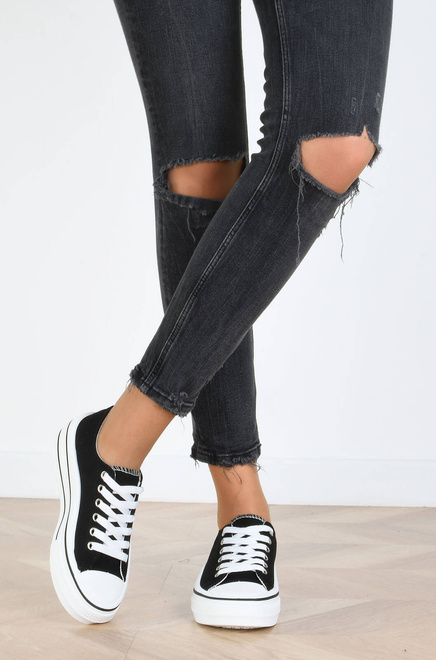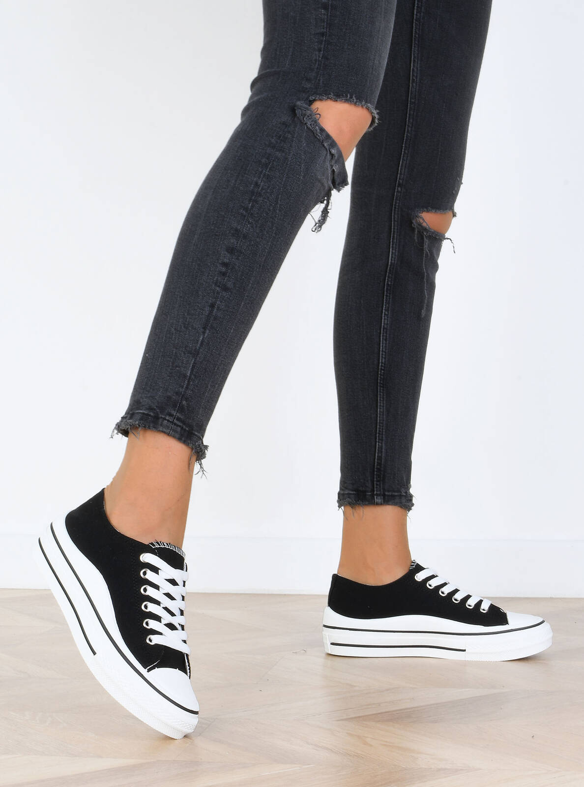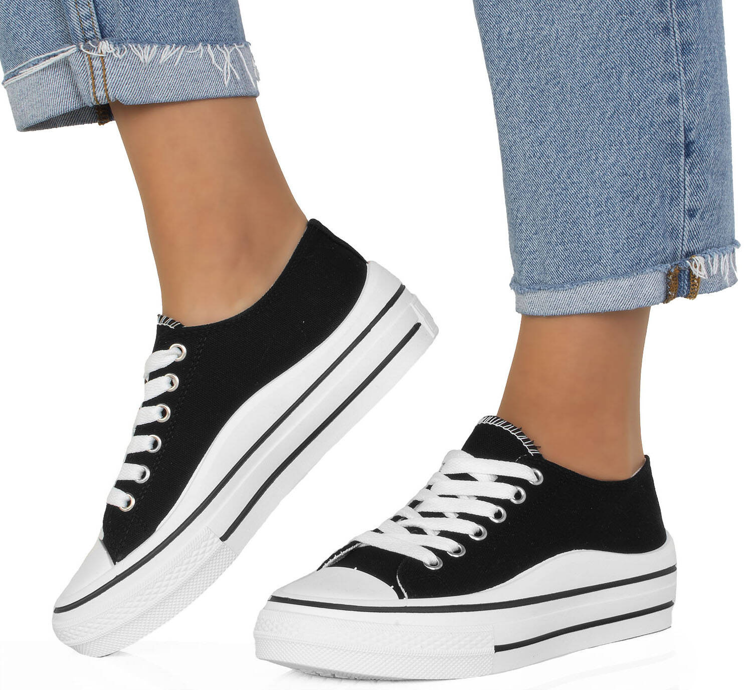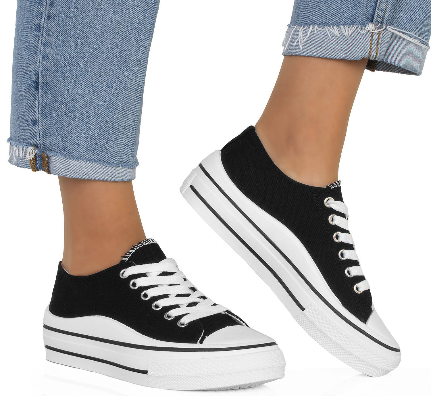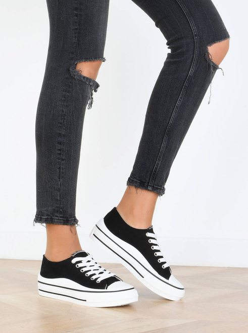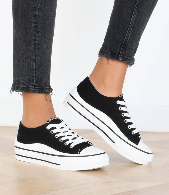 CZARNE NISKIE TRAMPKI NA PLATFORMIE FINLAY