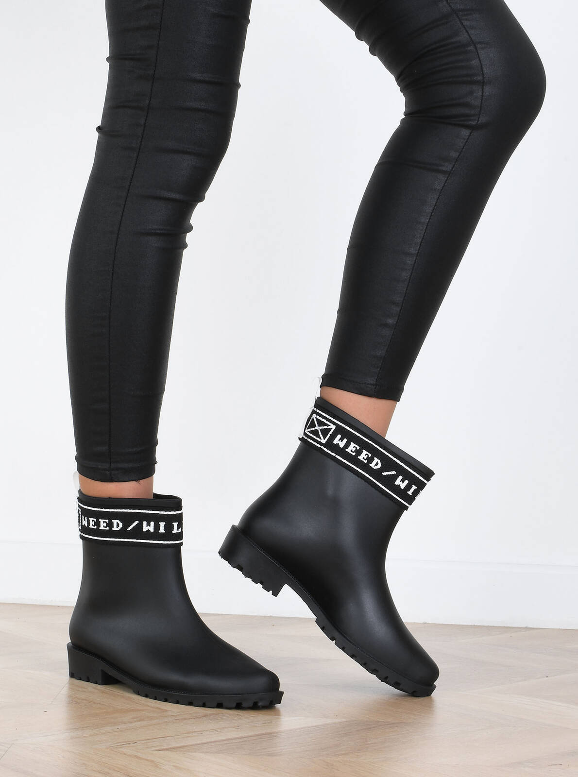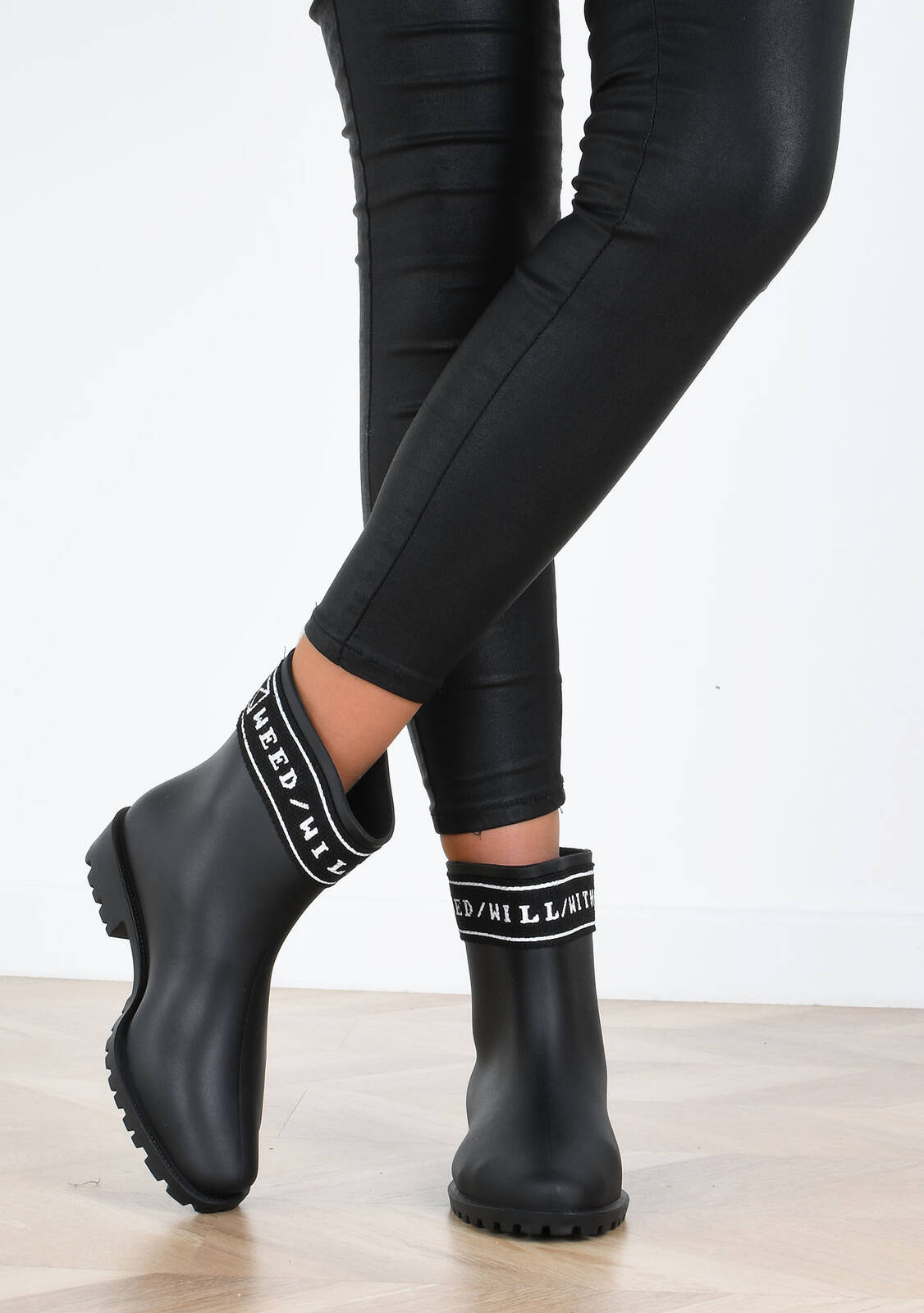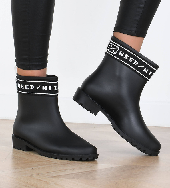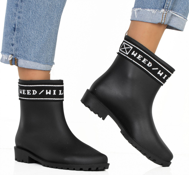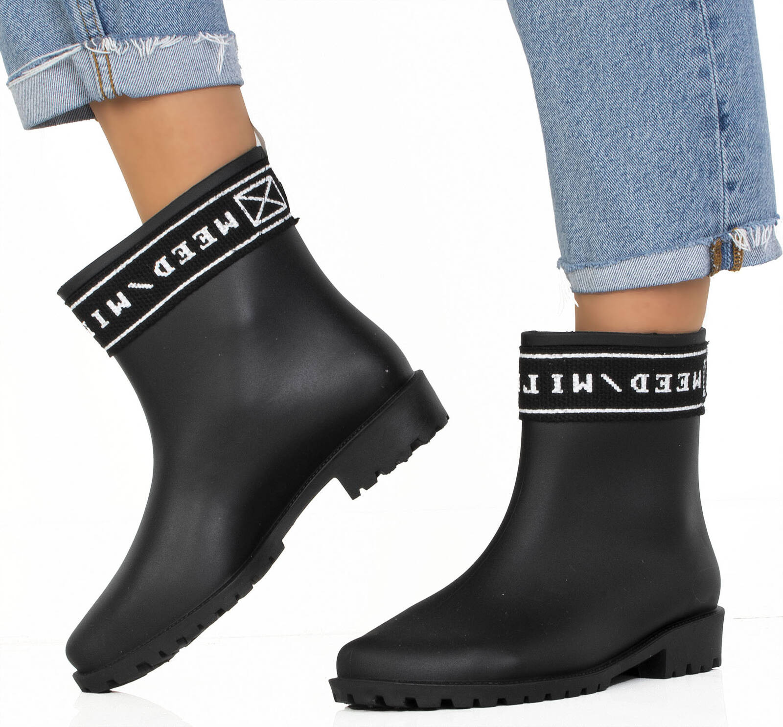 CZARNE MATOWE KALOSZE BOTKI Z NAPISEM FUR