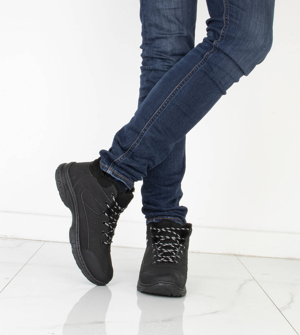 CZARNE MĘSKIE OCIEPLANE BUTY TREKKINGOWE