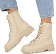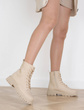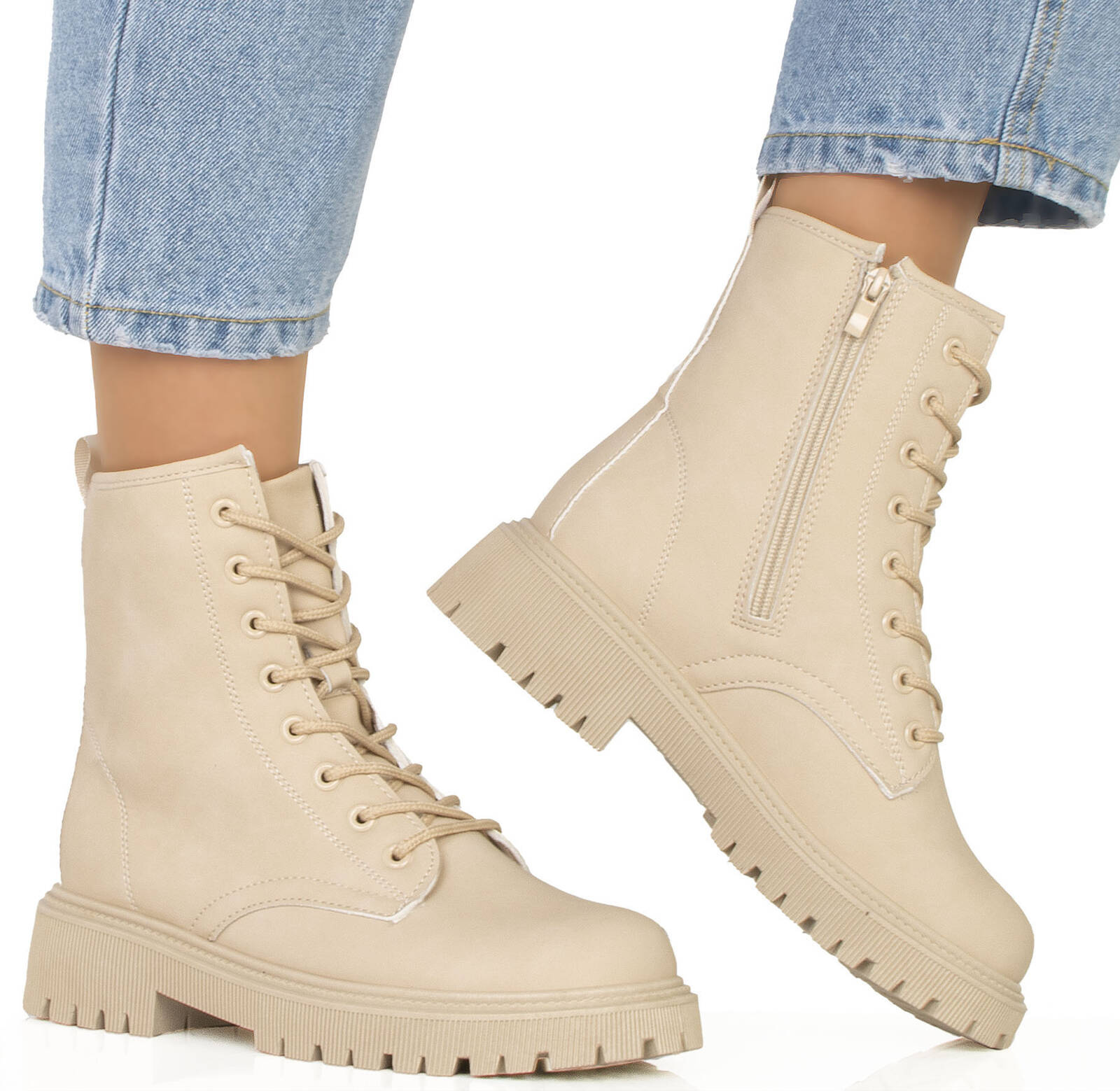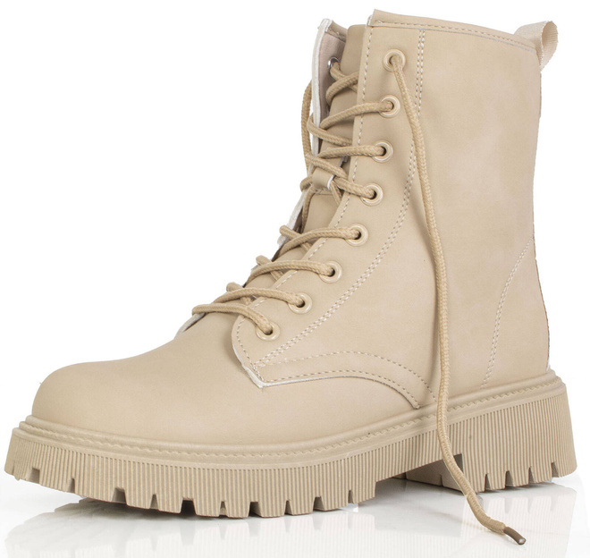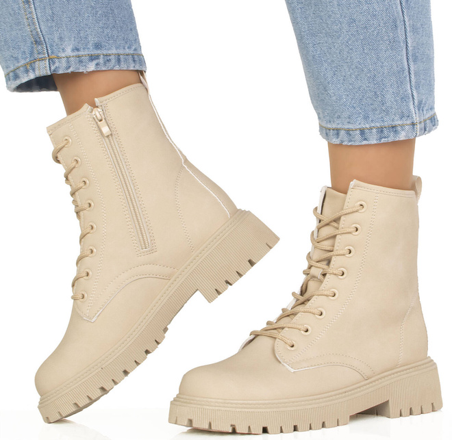 Cholewka botków została wykonana z miękkiej ekoskóry, co nadaje im przyjemny w dotyku i luksusowy wygląd. Sznurowanie oraz zapięcie na suwak z boku cholewki pozwalają na dokładne dopasowanie obuwia do kształtu stopy oraz ułatwiają zakładanie i zdejmowanie butów.