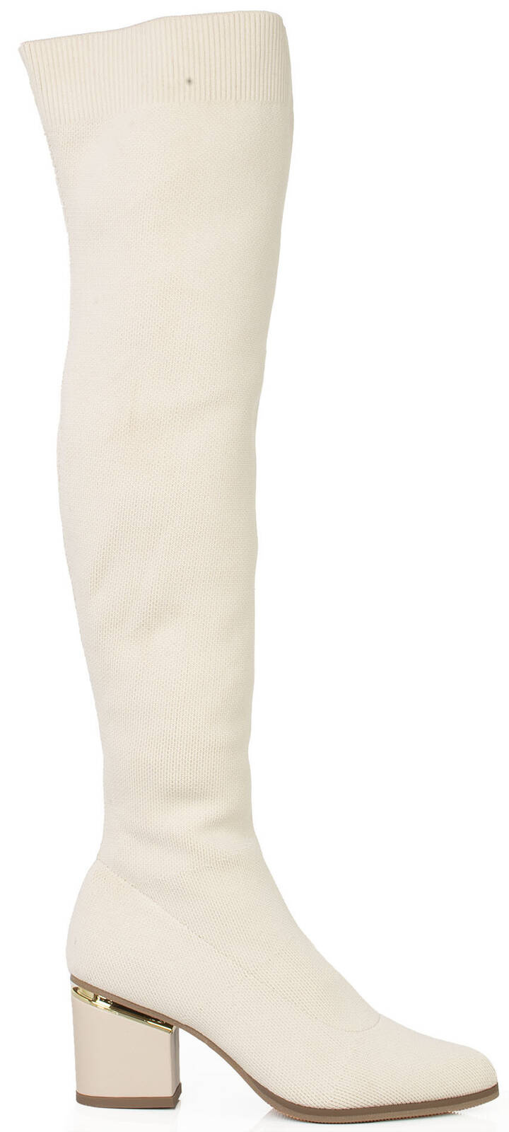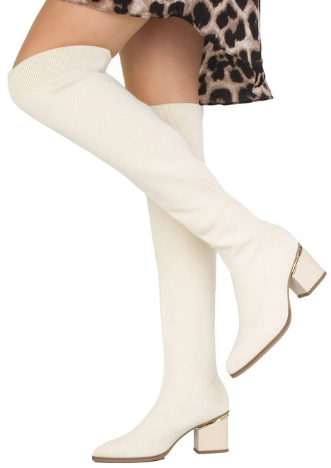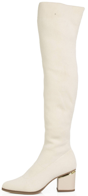 Eleganckie kozaki na niskim słupku, które są zarówno wygodne, jak i stylowe. Ten model kozaków charakteryzuje się cholewką wykonaną w całości z elastycznego prążkowanego materiału, który doskonale dopasowuje się do kształtu nóg.