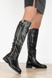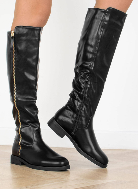 CZARNE KOZAKI SKÓRZANE ZŁOTY ZAMEK KELLY