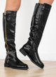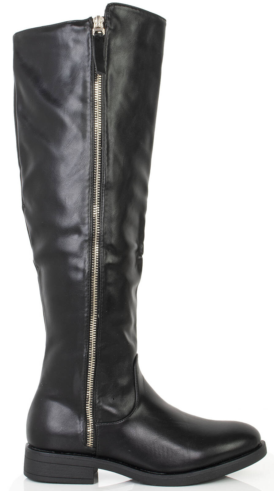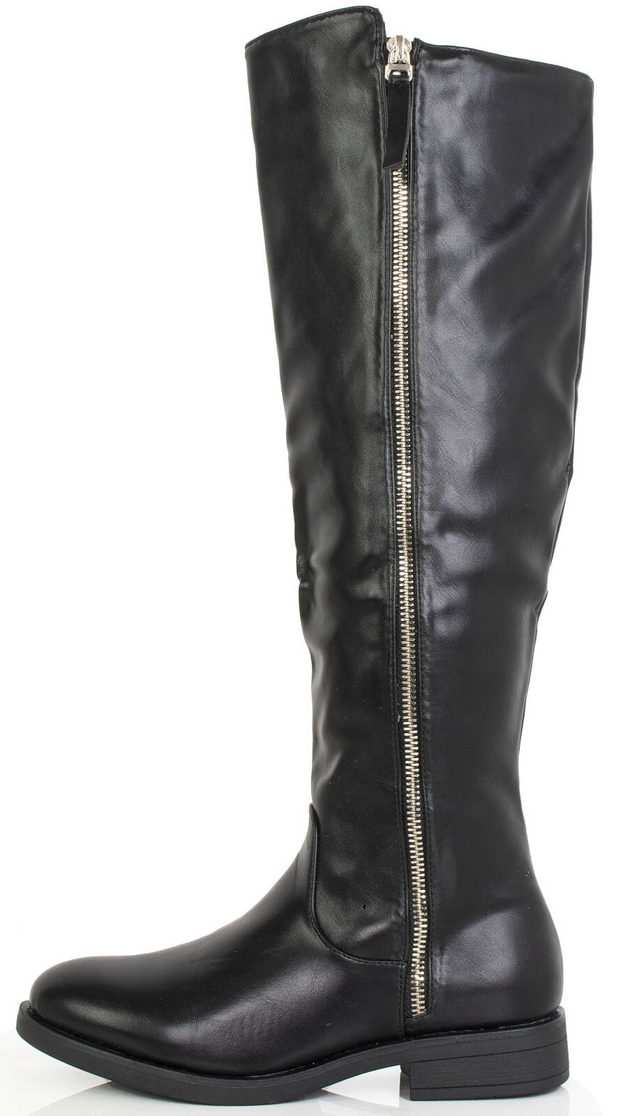 • Eleganckie kozaki z płaskim obcasem, które łączą w sobie klasykę z subtelnym akcentem ozdobnego zamka. Te kozaki są doskonałym wyborem na wiele różnych okazji, oferując zarówno modny wygląd, jak i wygodę noszenia.