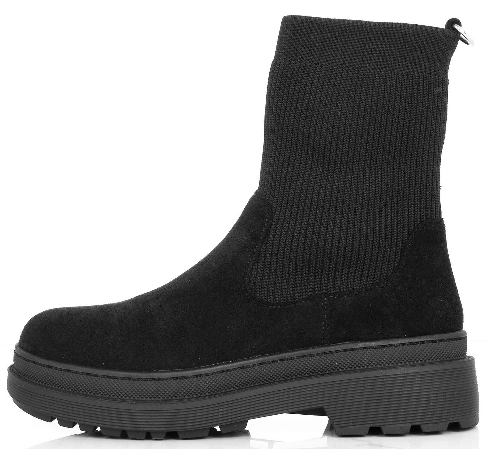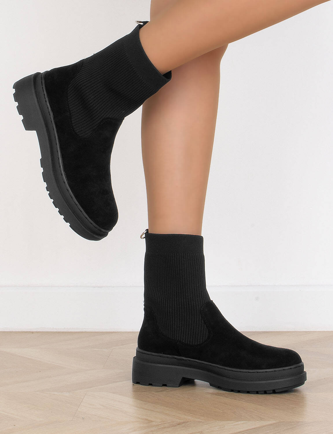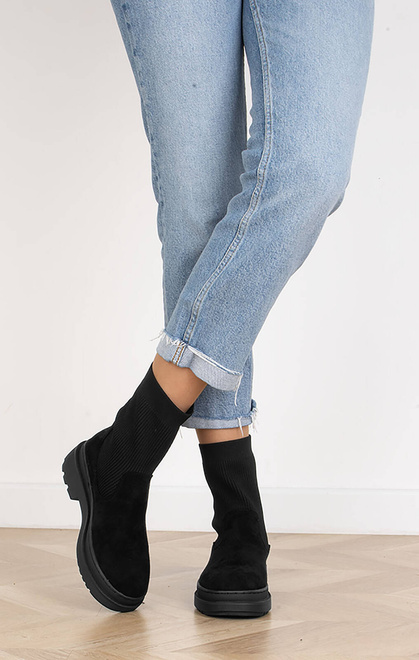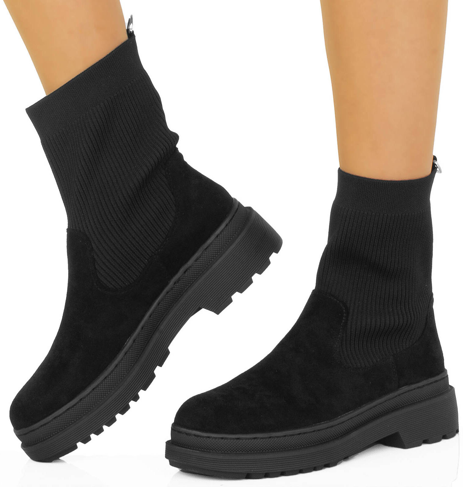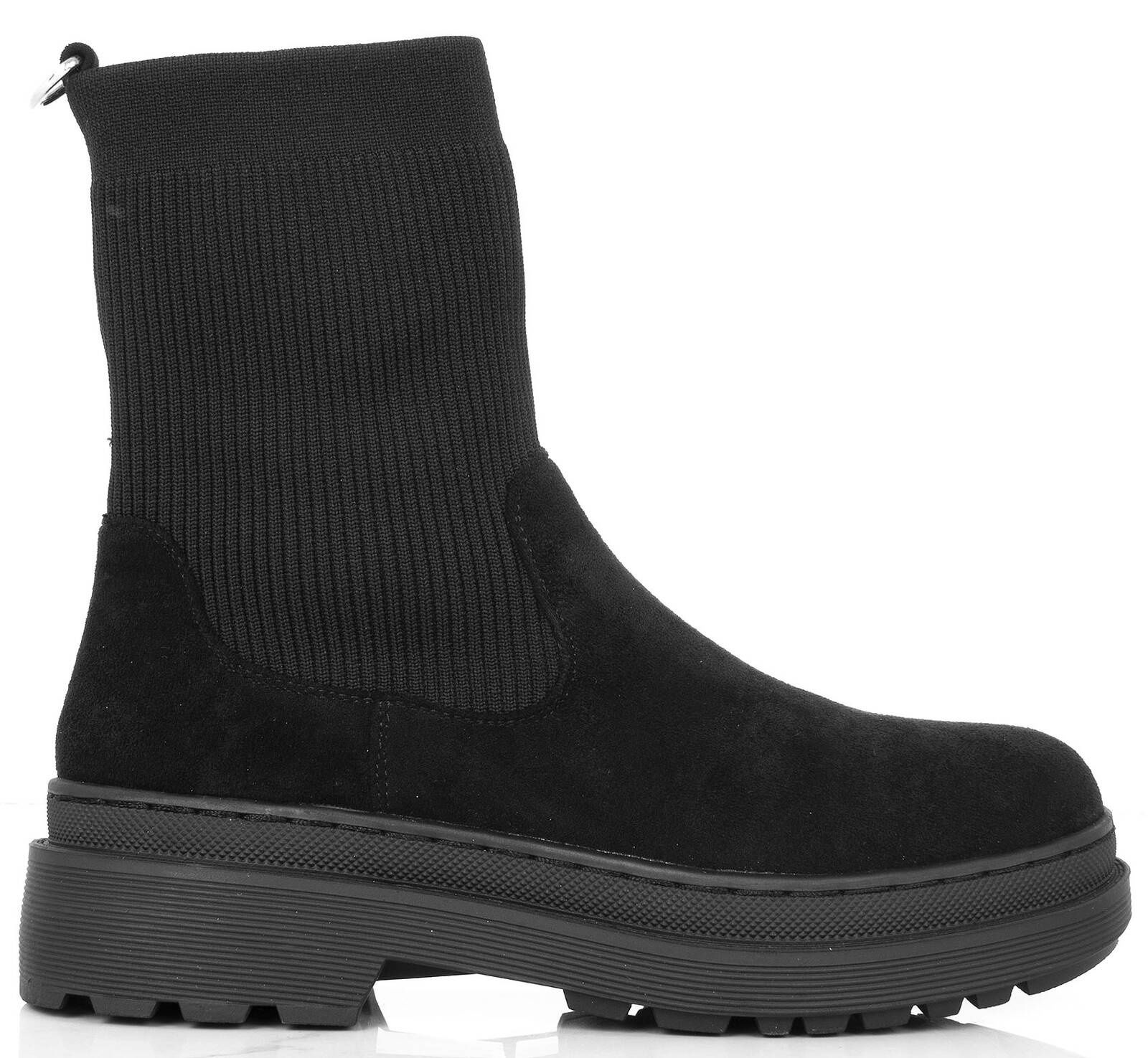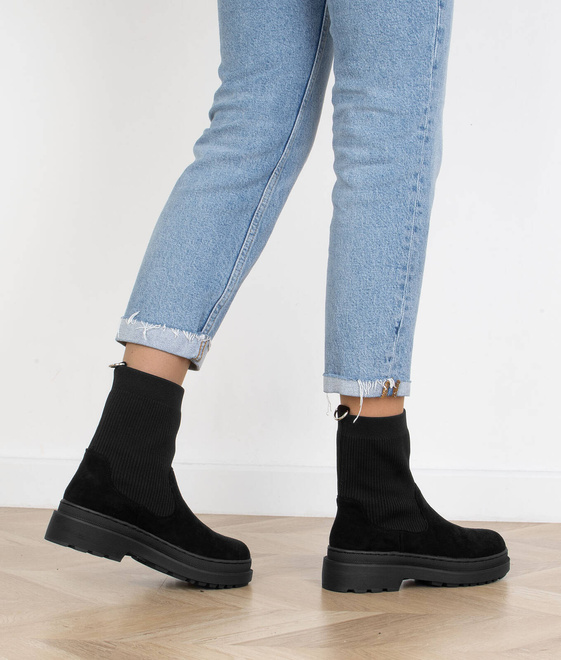 Wygodne i stylowe wsuwane botki z elastyczną cholewką i dodatkiem zamszu na dole cholewki. Te botki są idealnym wyborem na chłodniejsze dni, oferując zarówno modny wygląd, jak i komfort noszenia.