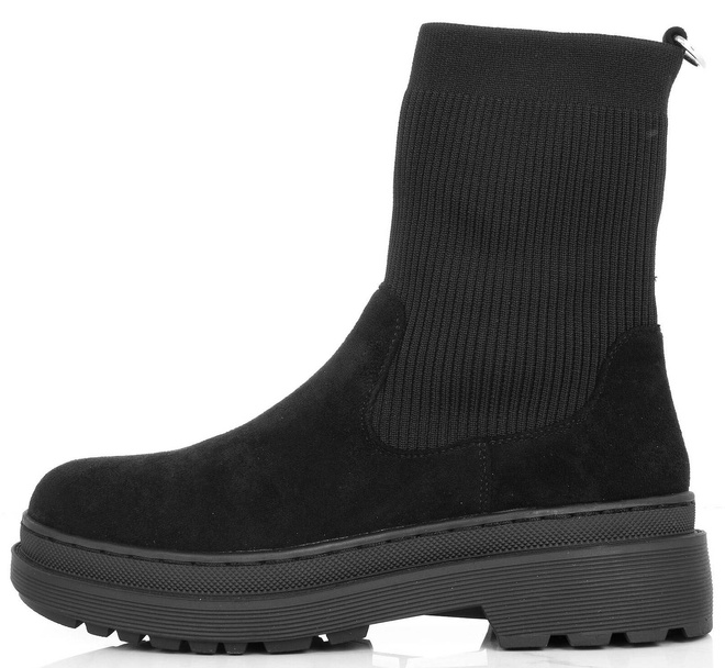 Elastyczna cholewka wykonana z prążkowanego materiału doskonale dopasowuje się do kształtu nogi, co zapewnia swobodę ruchów i wygodę noszenia. Dodatek zamszu na dole cholewki nadaje butom eleganckiego wyglądu i podkreśla ich styl.
