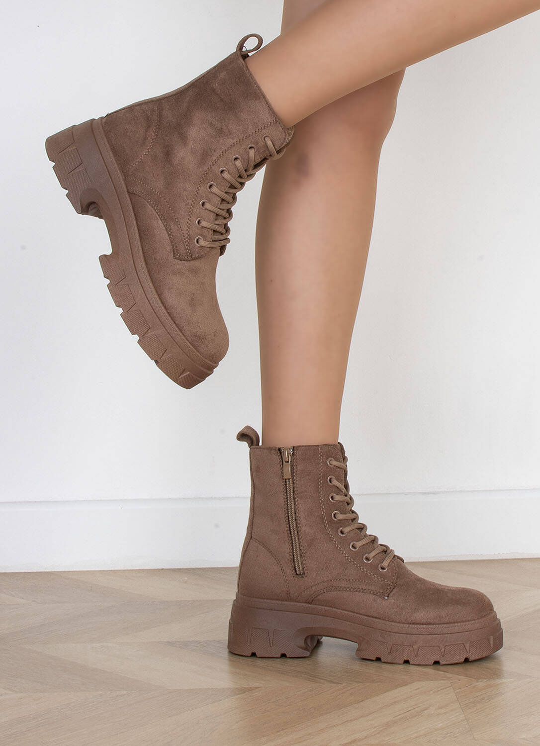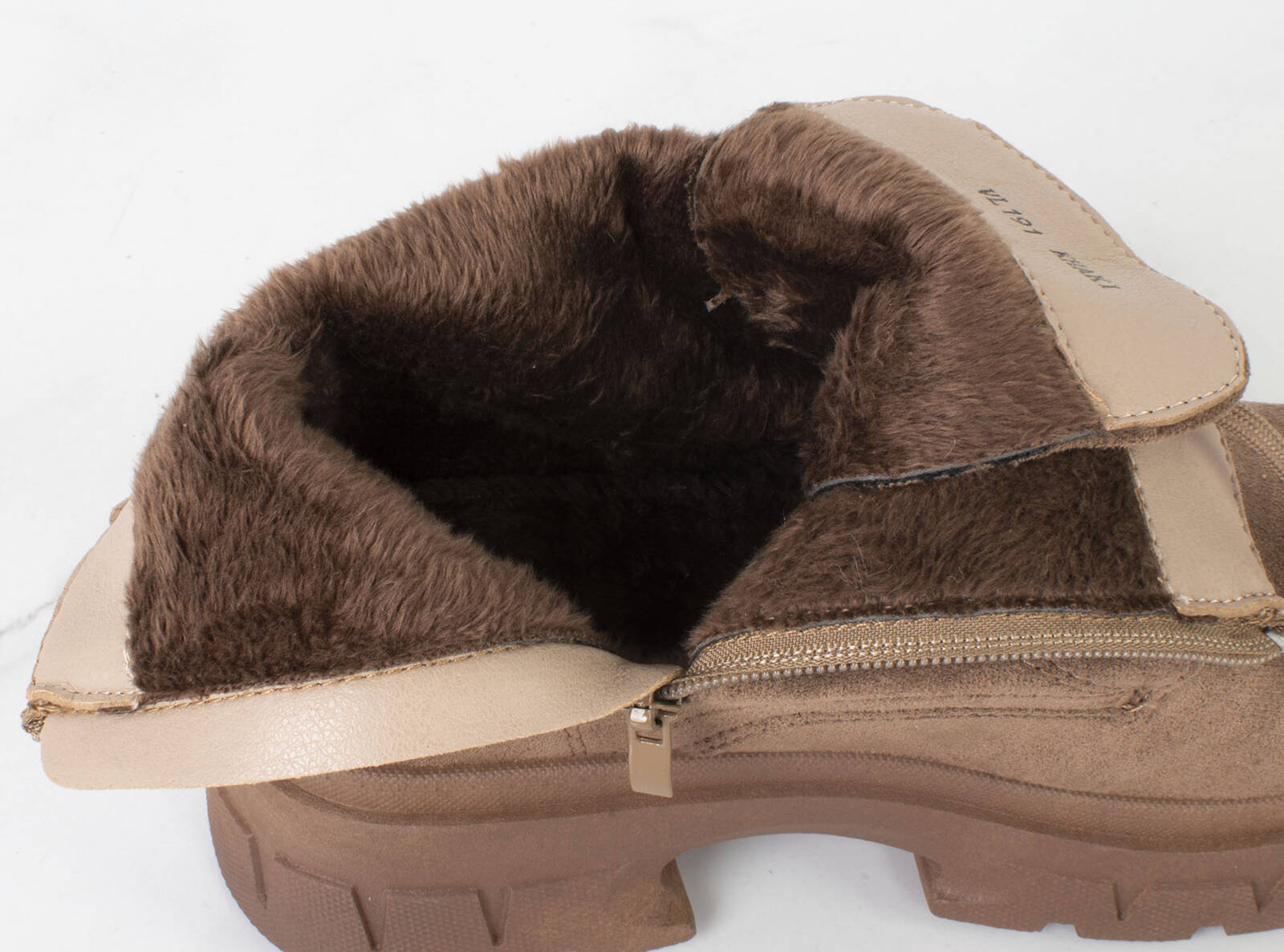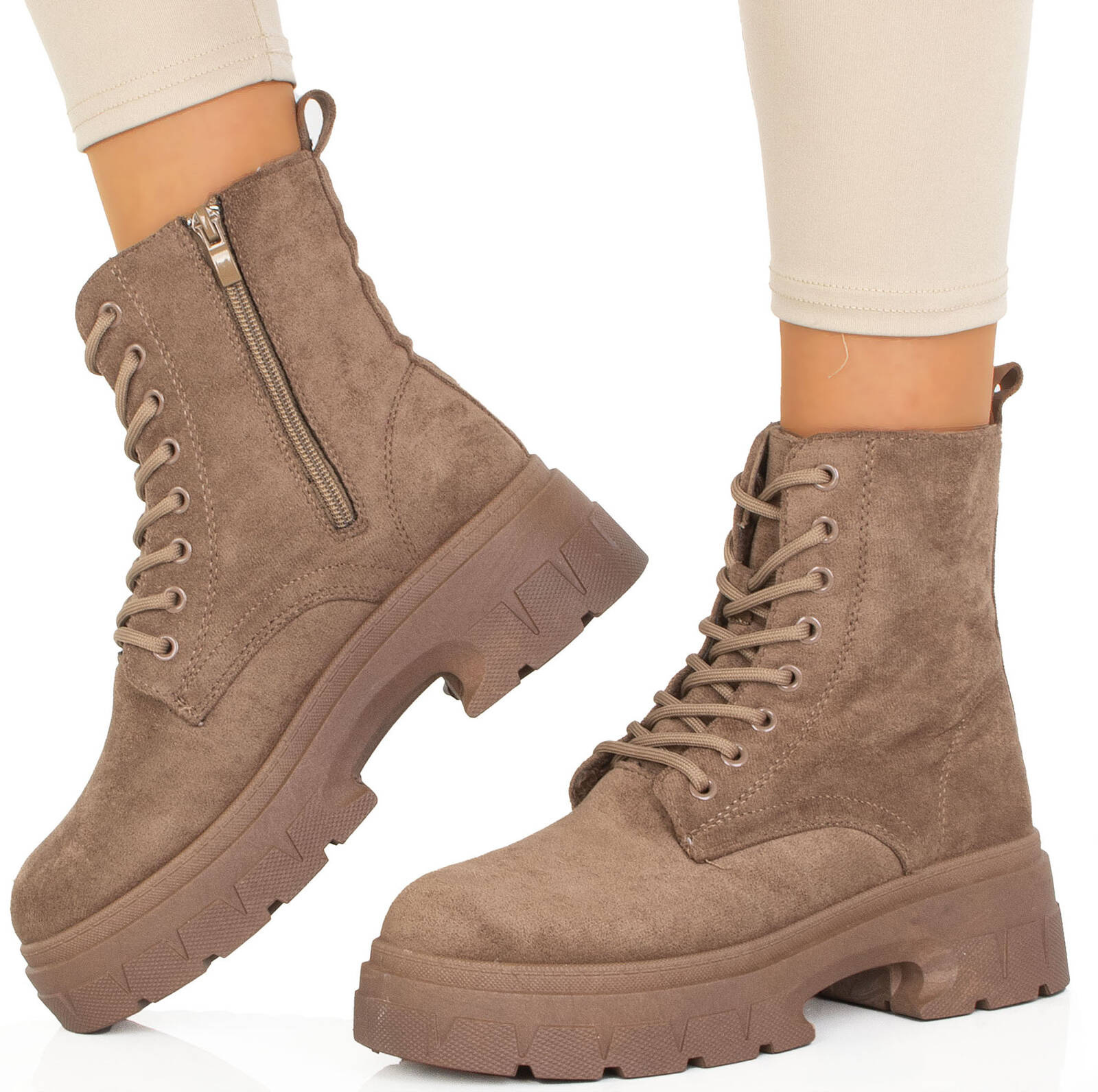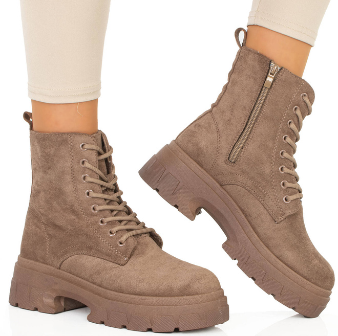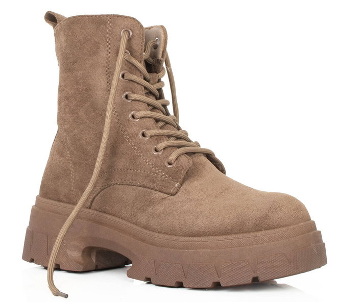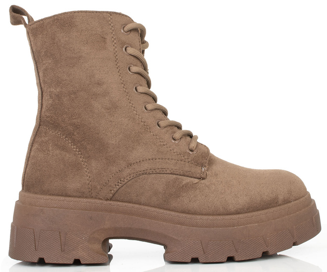 Cholewka botków wykonana jest z miękkiego zamszu, który nadaje im ekskluzywnego wyglądu oraz przyjemnego w dotyku materiału. Sznurowanie pozwala na precyzyjne dopasowanie butów do kształtu stopy, zapewniając odpowiednie podparcie.
