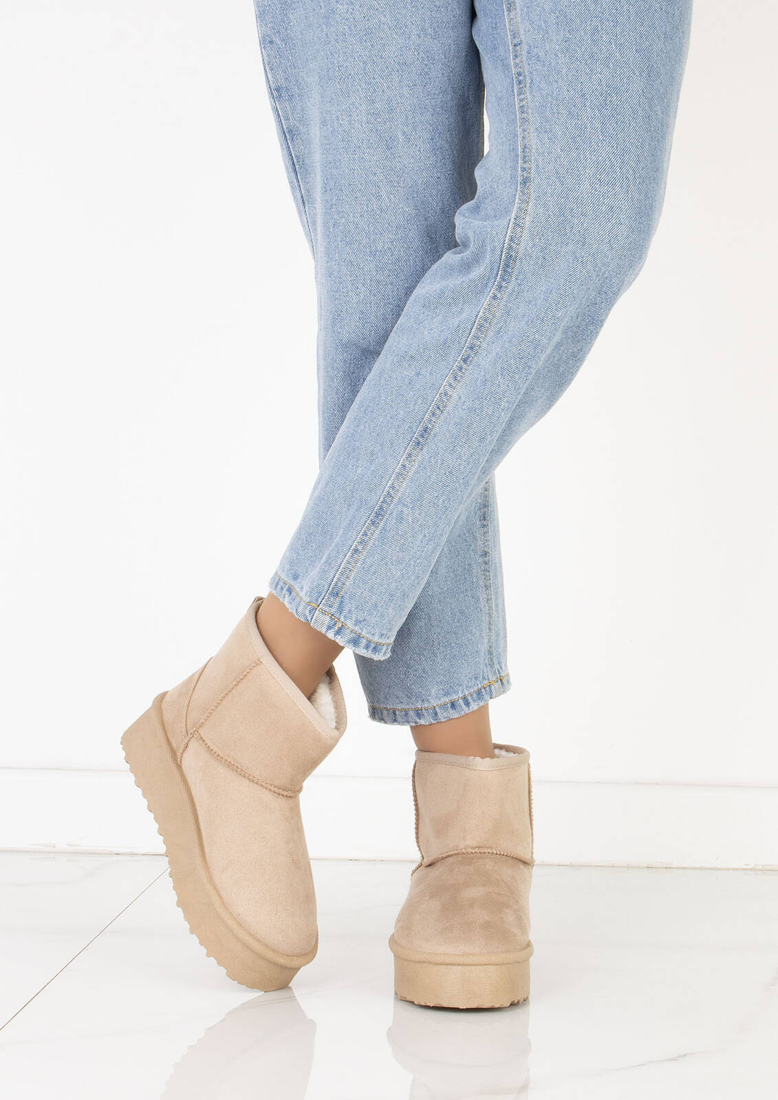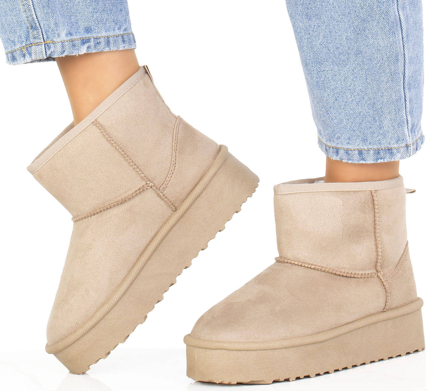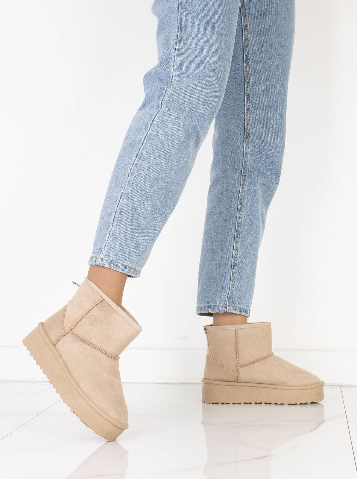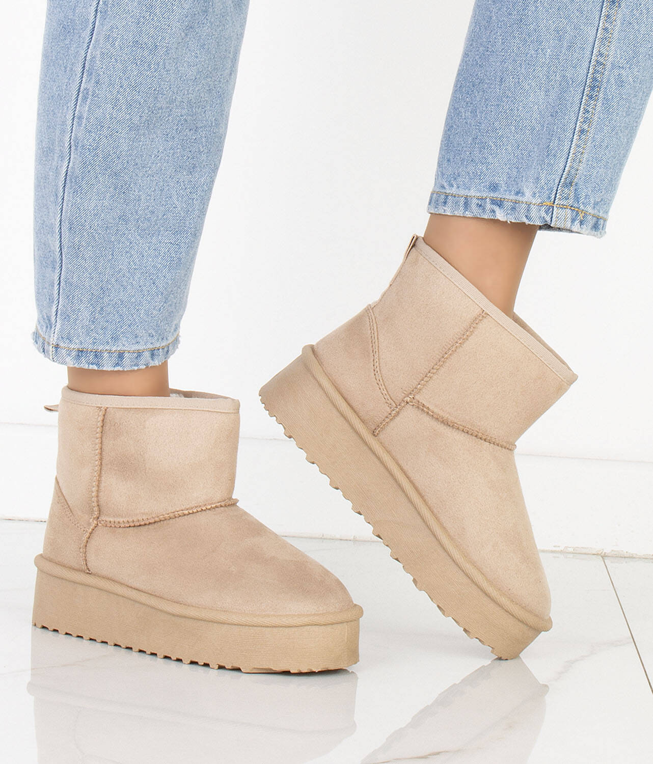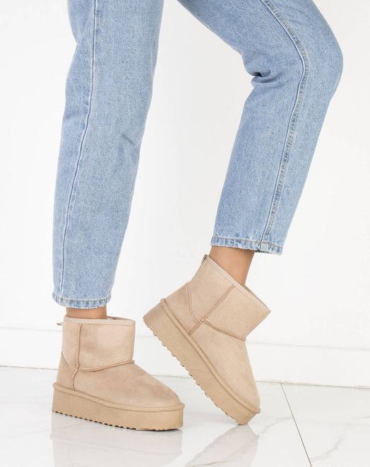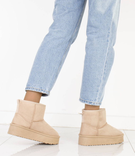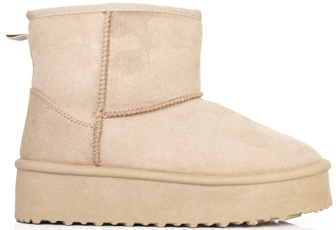 Cholewka śniegowców została wykonana z miękkiego zamszu, co nadaje im elegancki wygląd i jednocześnie zapewnia trwałość i odporność na wilgoć. Wewnętrzna część buta jest ocieplona mięciutkim i ciepłym futerkiem, które chroni stopy przed zimnem i zapewnia przyjemne uczucie ciepła.