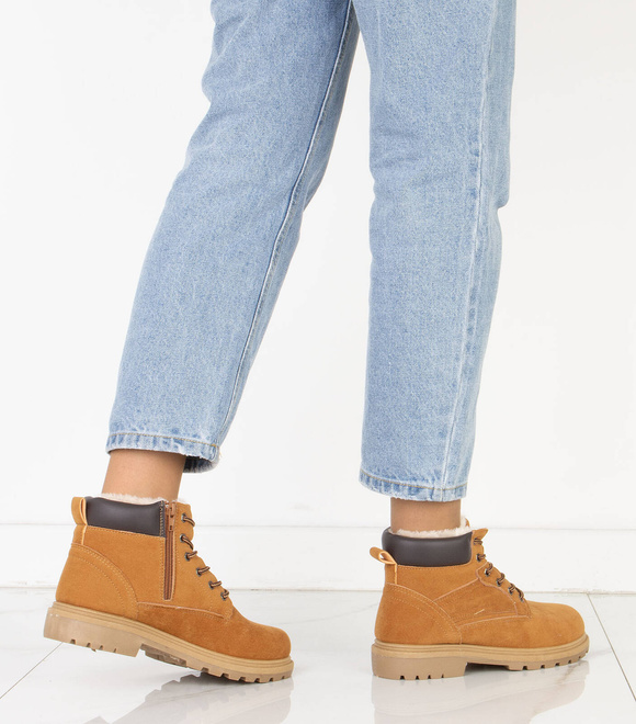 Ocieplane damskie botki typu trapery z zamkiem, idealne na chłodniejsze dni.